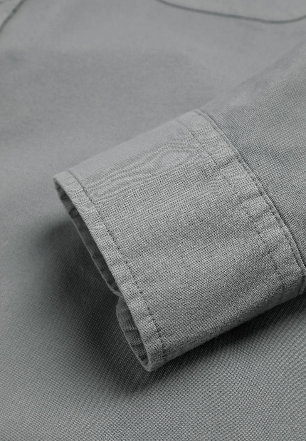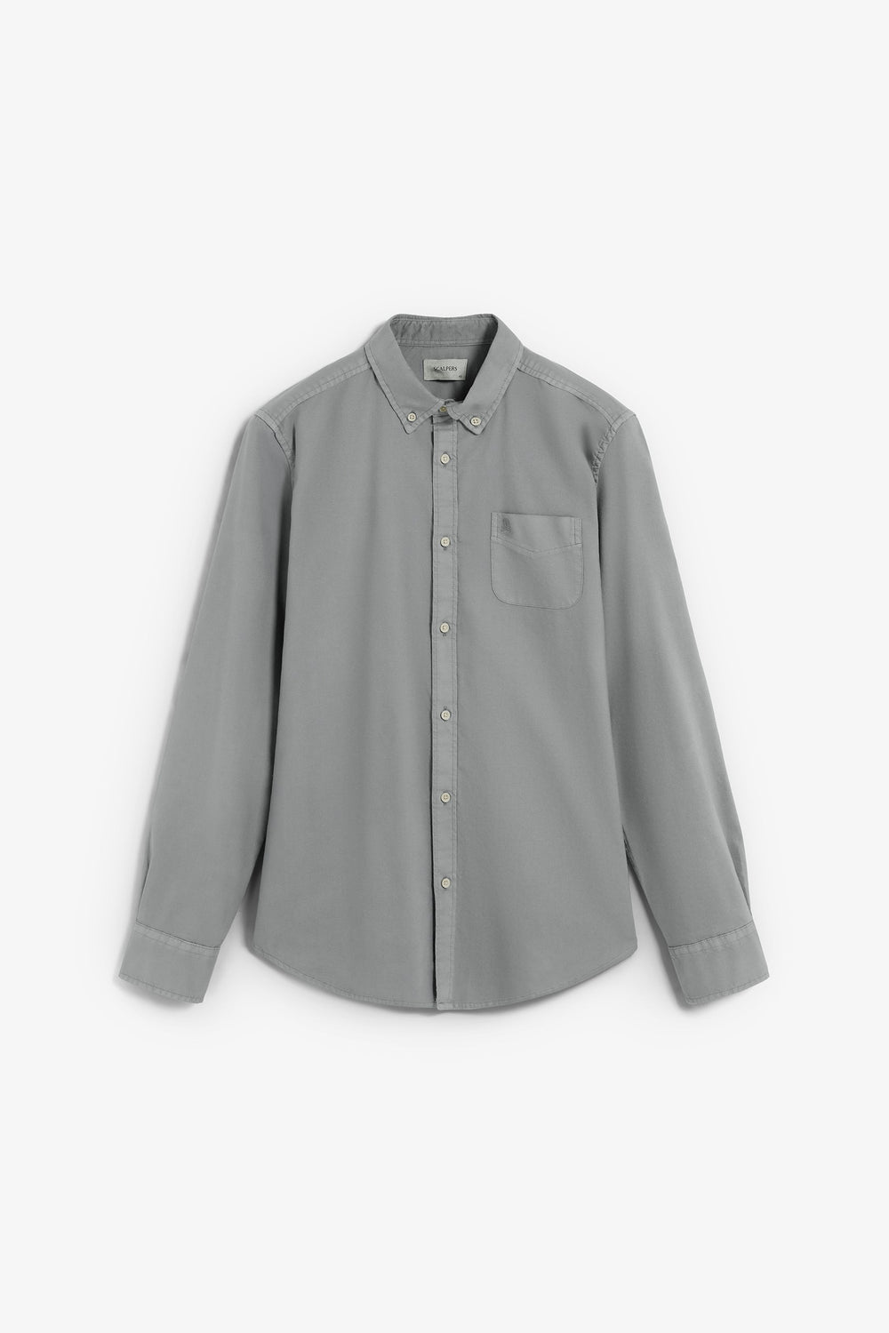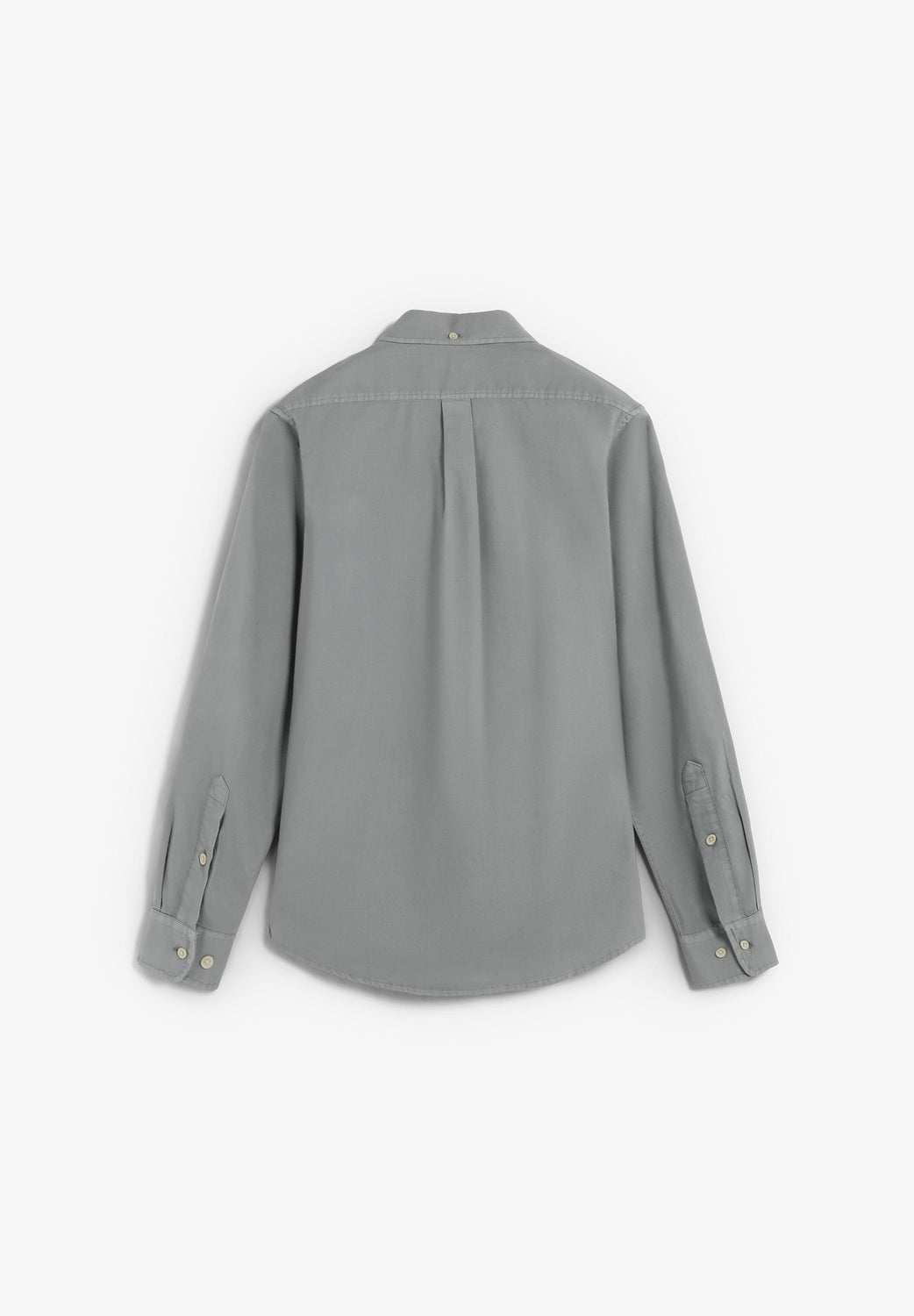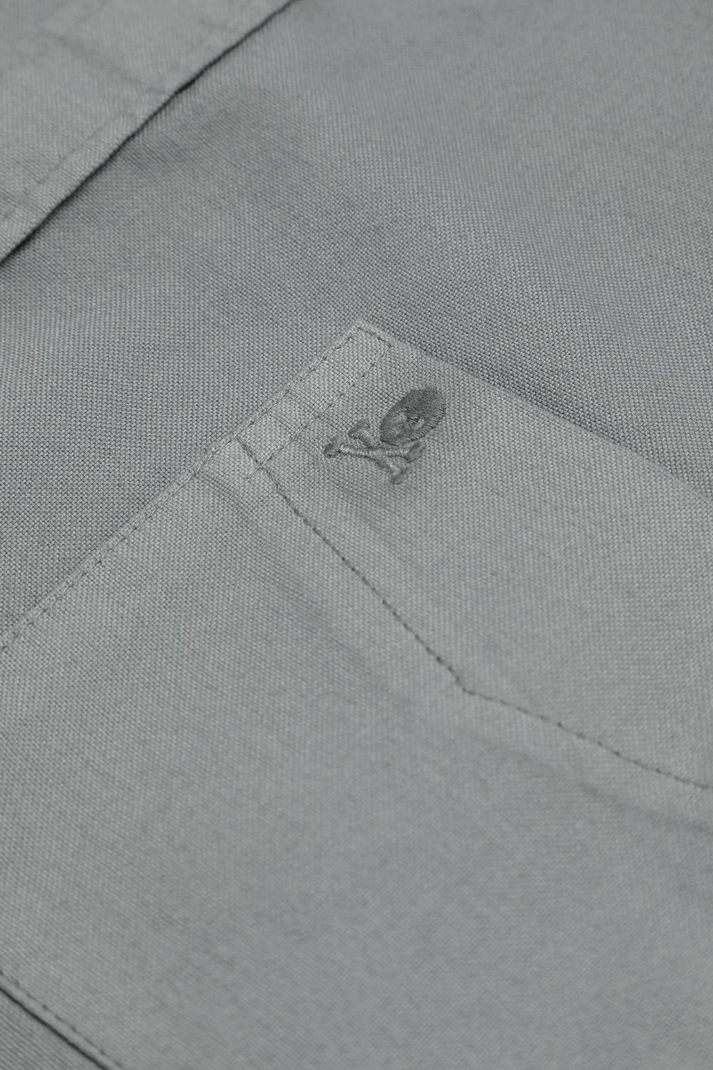 Camisa confeccionada en 100% Algodón BCI. Corte Regular fit. Detalle calavera bordada a tono en pecho. Cuello con botones. Manga larga terminada en puño con botones. Bolsillo tipo parche en pecho. Cierre frontal con botones.