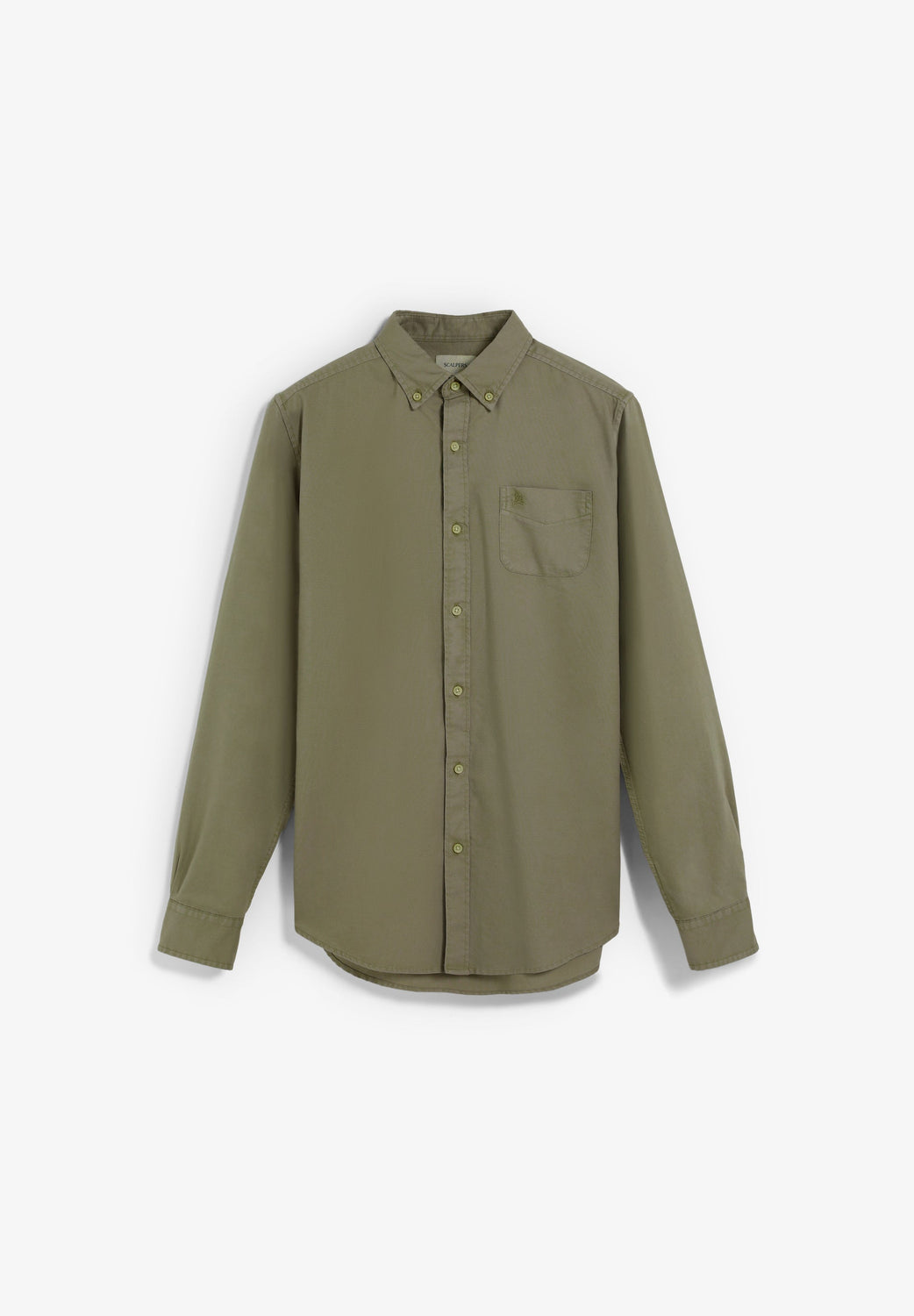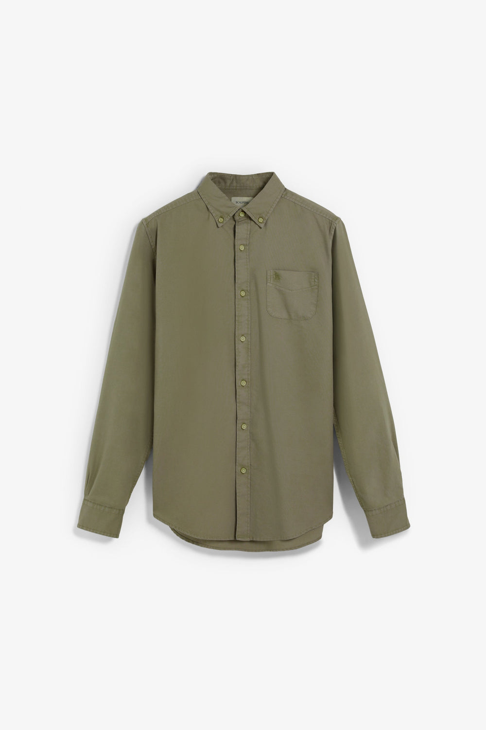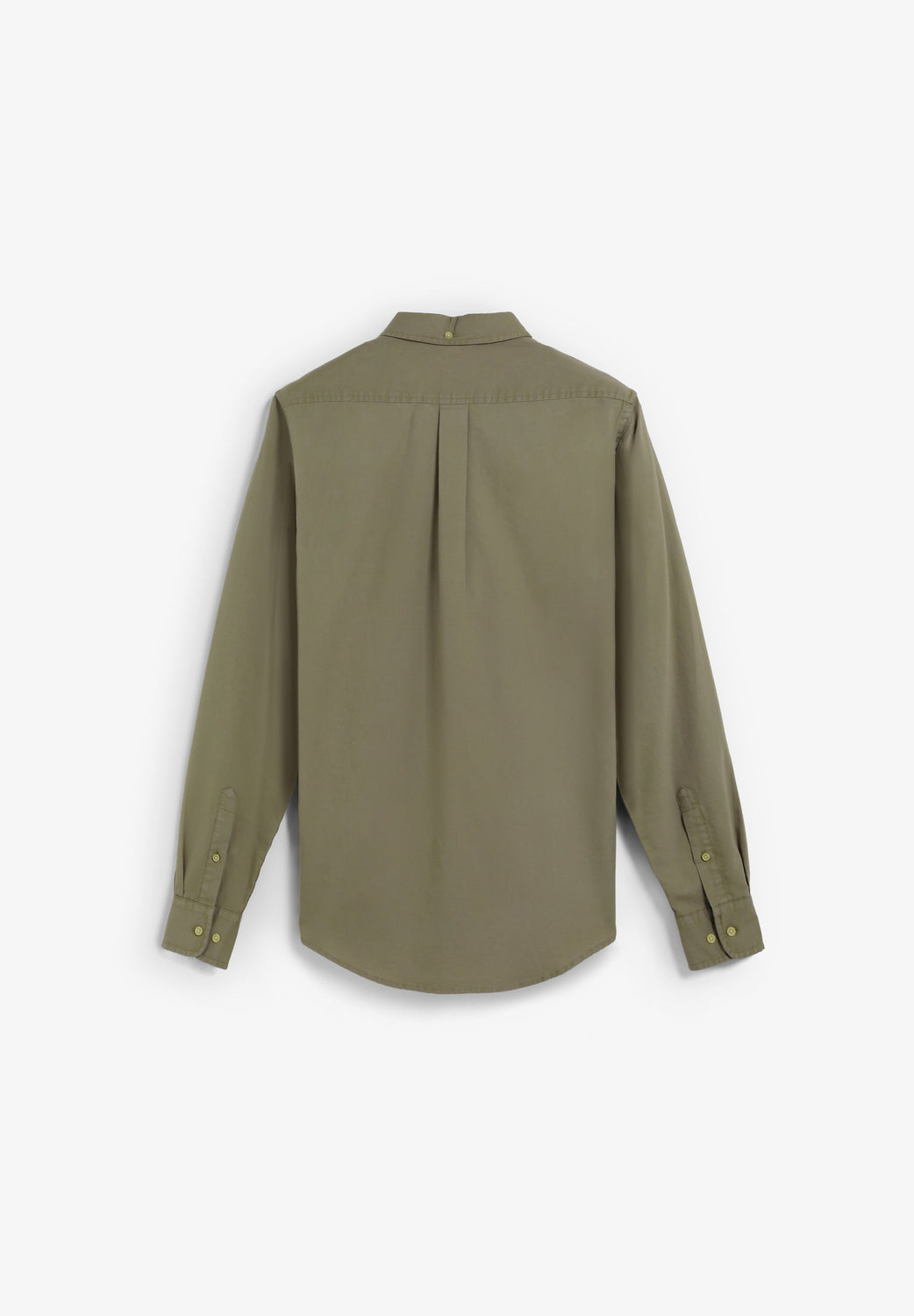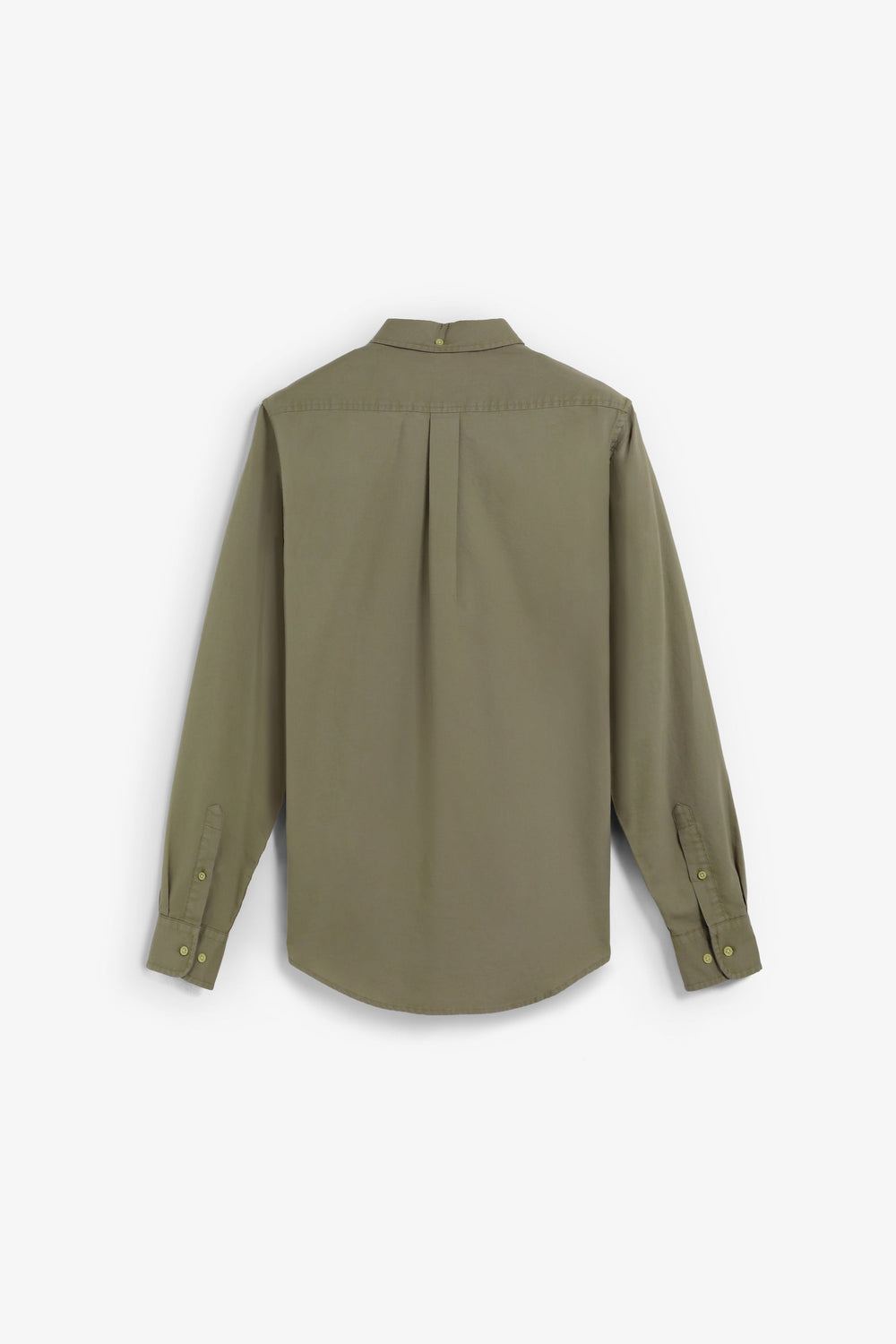Camisa confeccionada en 100% Algodón BCI. Corte Regular fit. Detalle calavera bordada a tono en pecho. Cuello con botones. Manga larga terminada en puño con botones. Bolsillo tipo parche en pecho. Cierre frontal con botones.