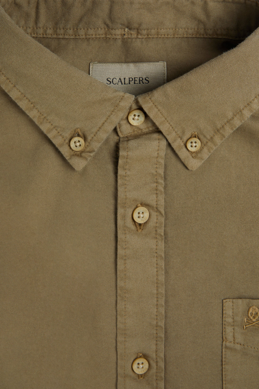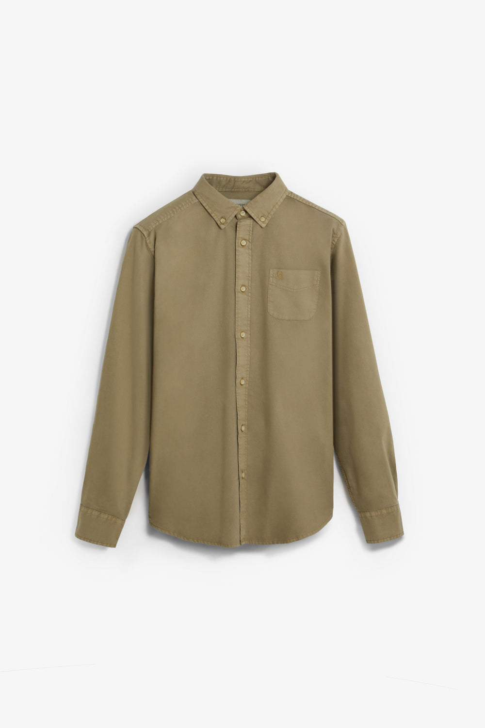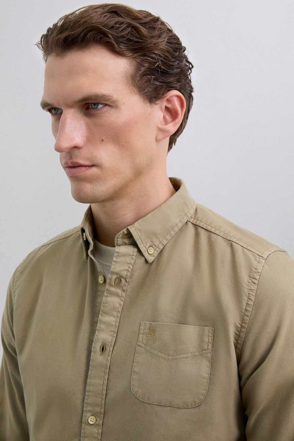 Camisa confeccionada en 100% Algodón BCI. Corte Regular fit. Detalle calavera bordada a tono en pecho. Cuello con botones. Manga larga terminada en puño con botones. Bolsillo tipo parche en pecho. Cierre frontal con botones.
