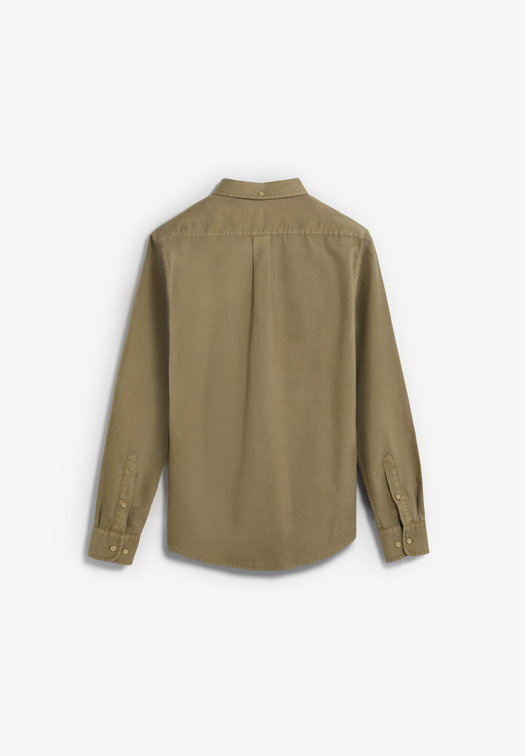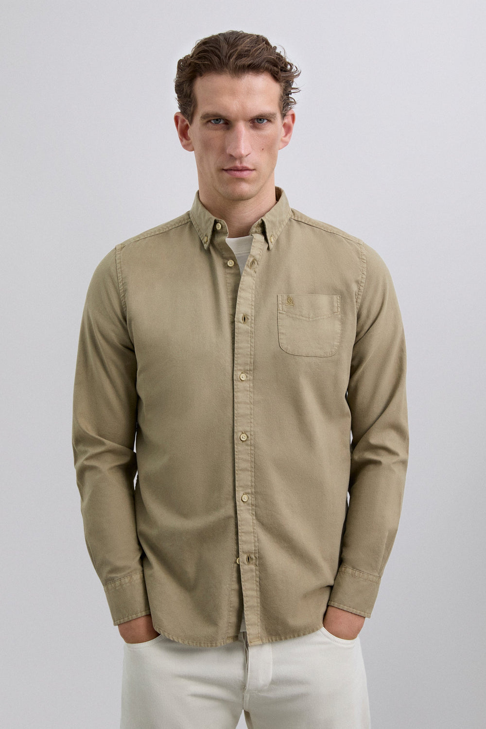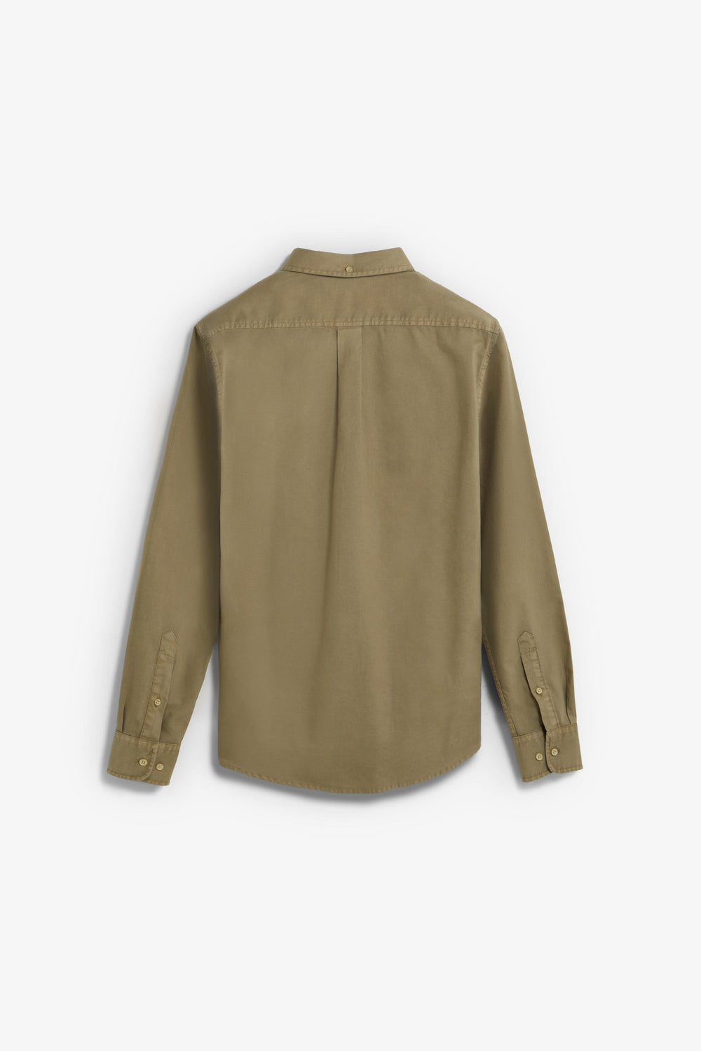 Camisa confeccionada en 100% Algodón BCI. Corte Regular fit. Detalle calavera bordada a tono en pecho. Cuello con botones. Manga larga terminada en puño con botones. Bolsillo tipo parche en pecho. Cierre frontal con botones.