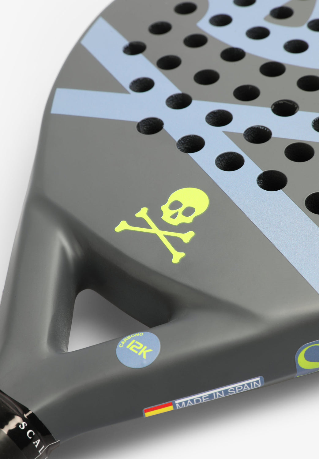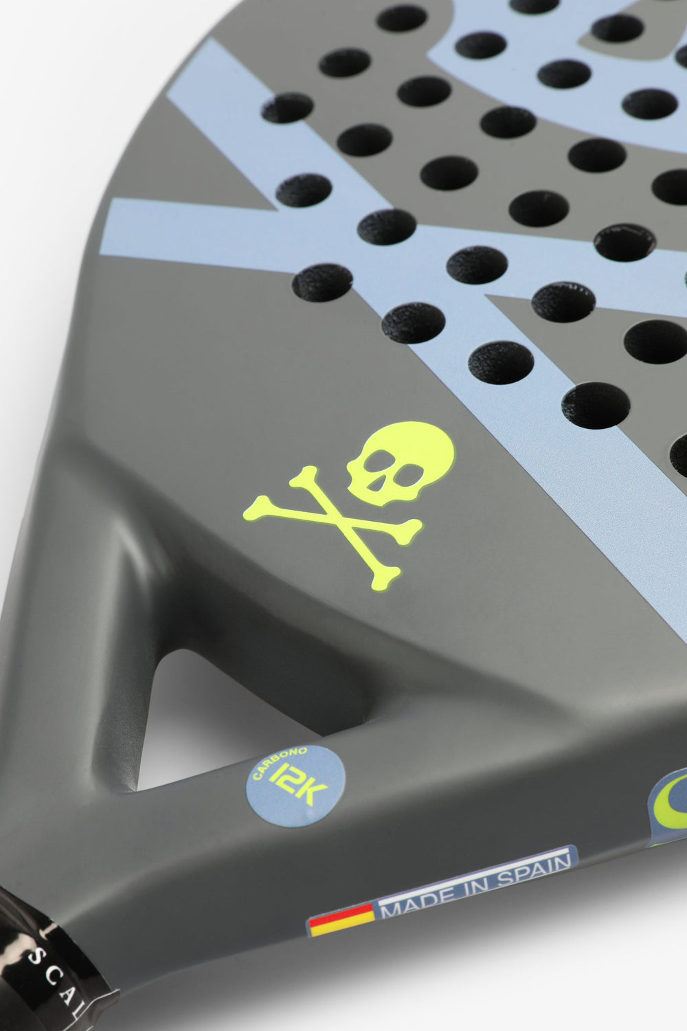 Pala de pádel confeccionada en carbono 12K con peso de 360 gramos. Grosor de 38 mm. Forma de diamante con acabado de la superficie liso y mate.