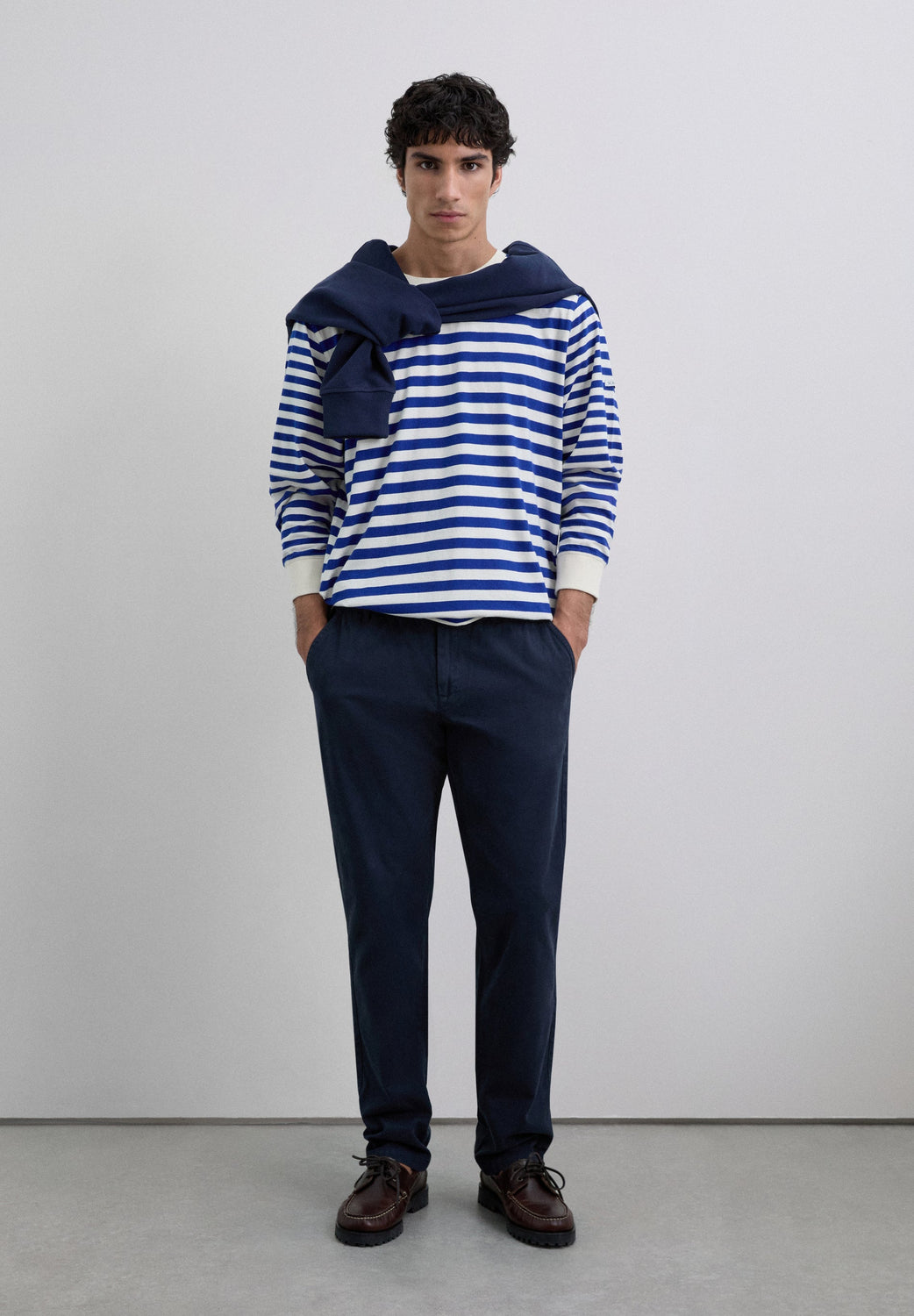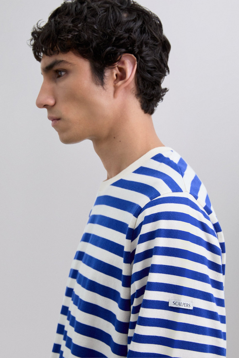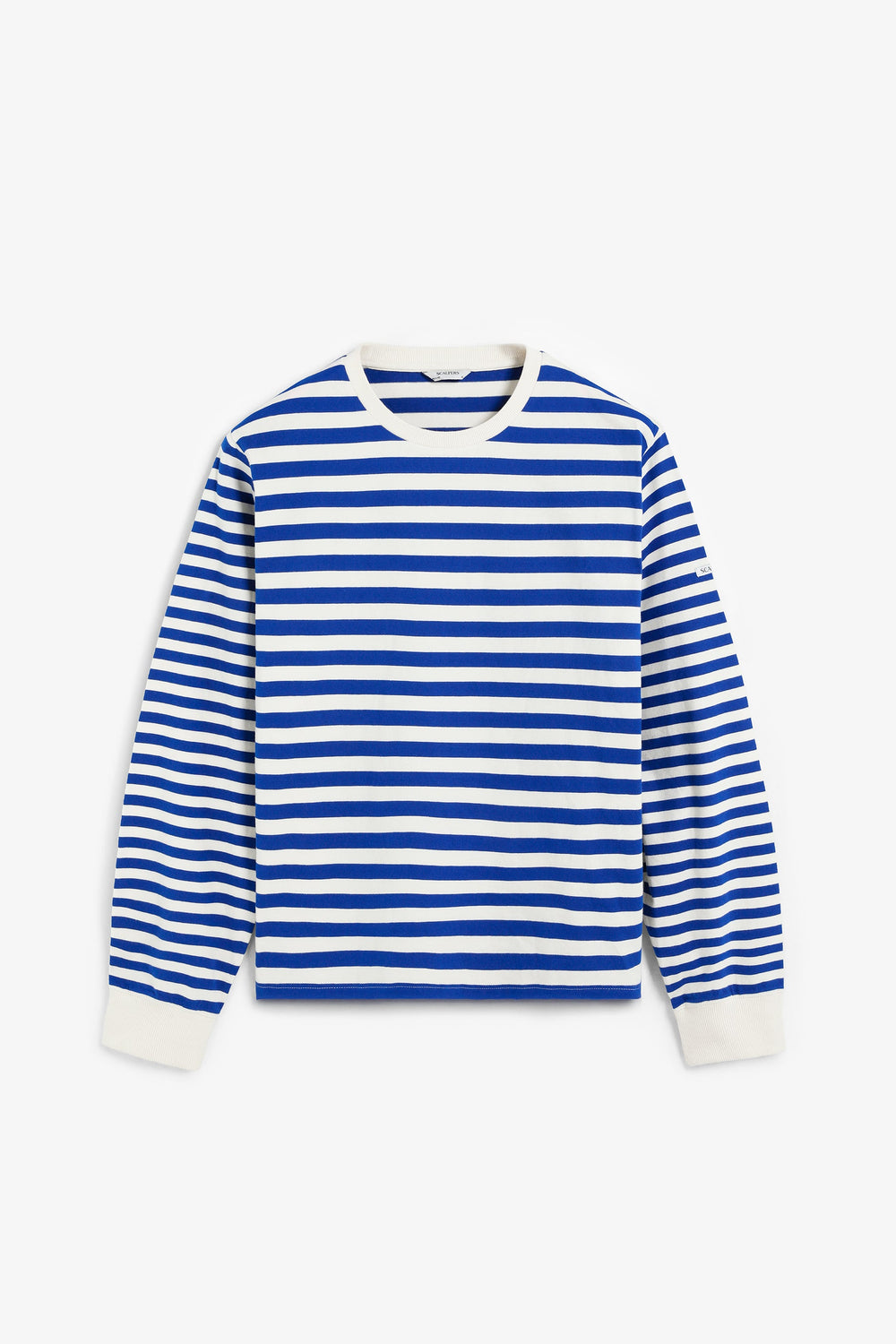Camiseta con estampado de rayas. Confeccionada en 100% algodón BCI. Corte Regular Fit. Cuello redondo. Contraste en cuello y puños. Manga larga.