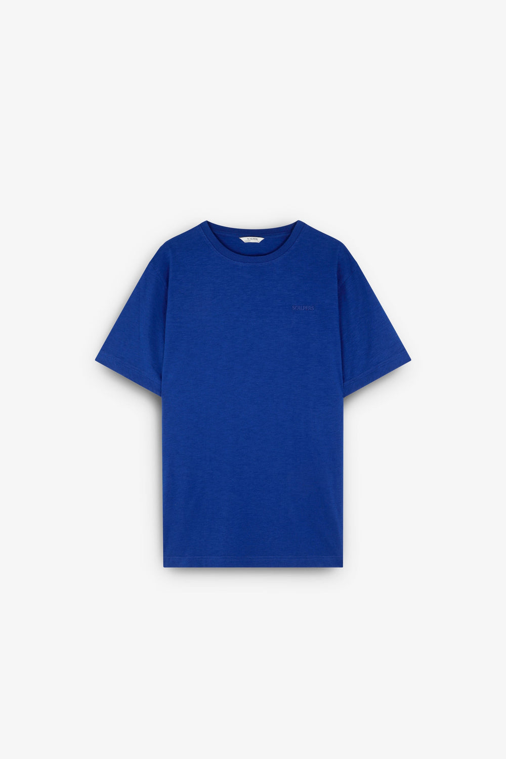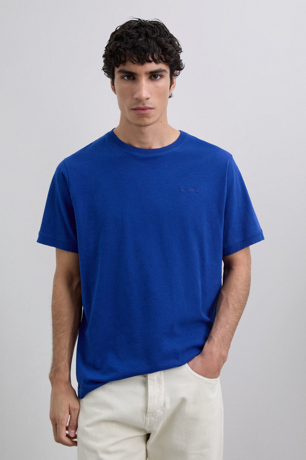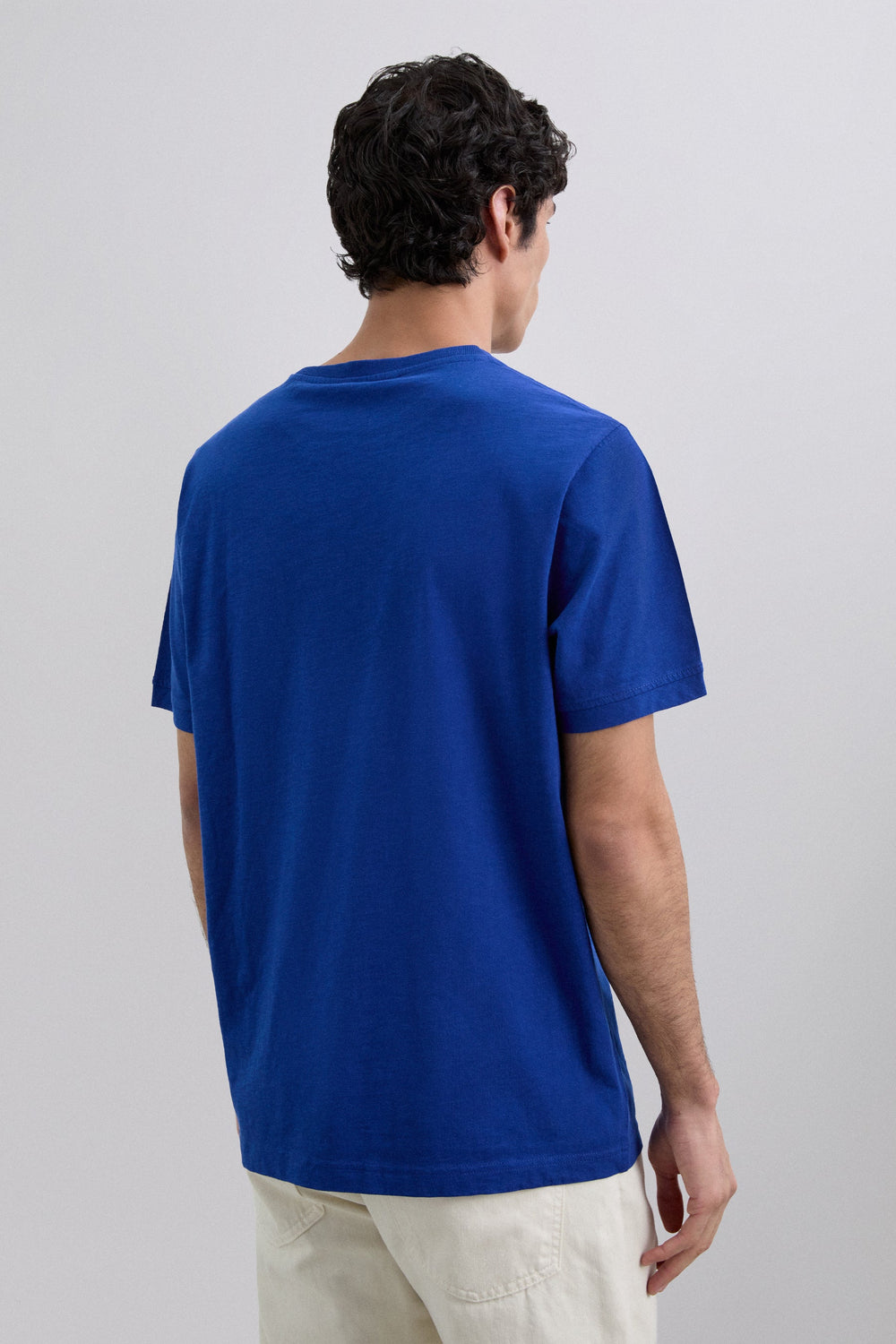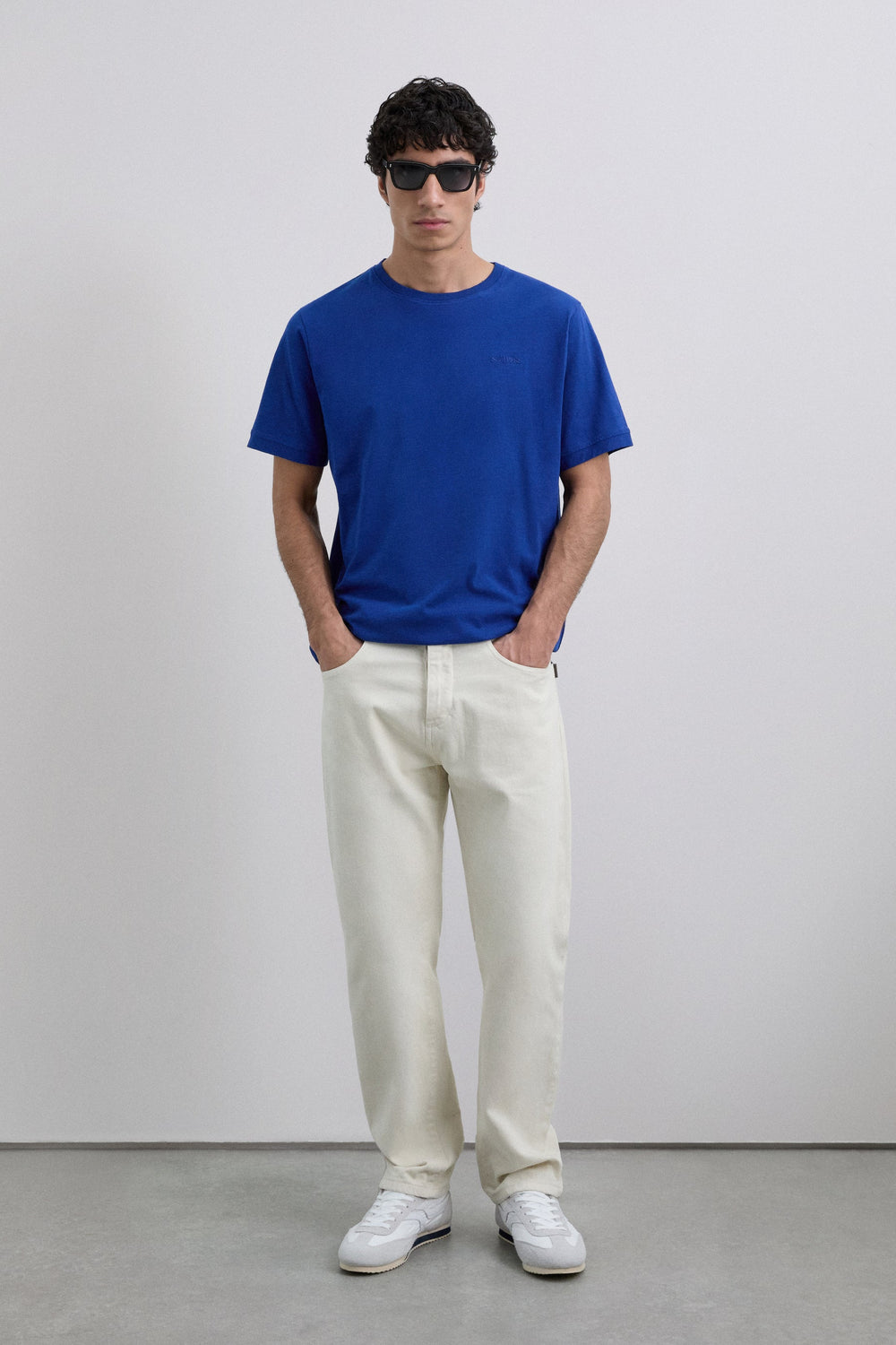 Camiseta confeccionada en 100% Algodón Orgánico. Regular Fit. Manga corta. Cuello redondo. Efecto lavado. Logotipo bordado tono en el pecho. Cuello de canalé.