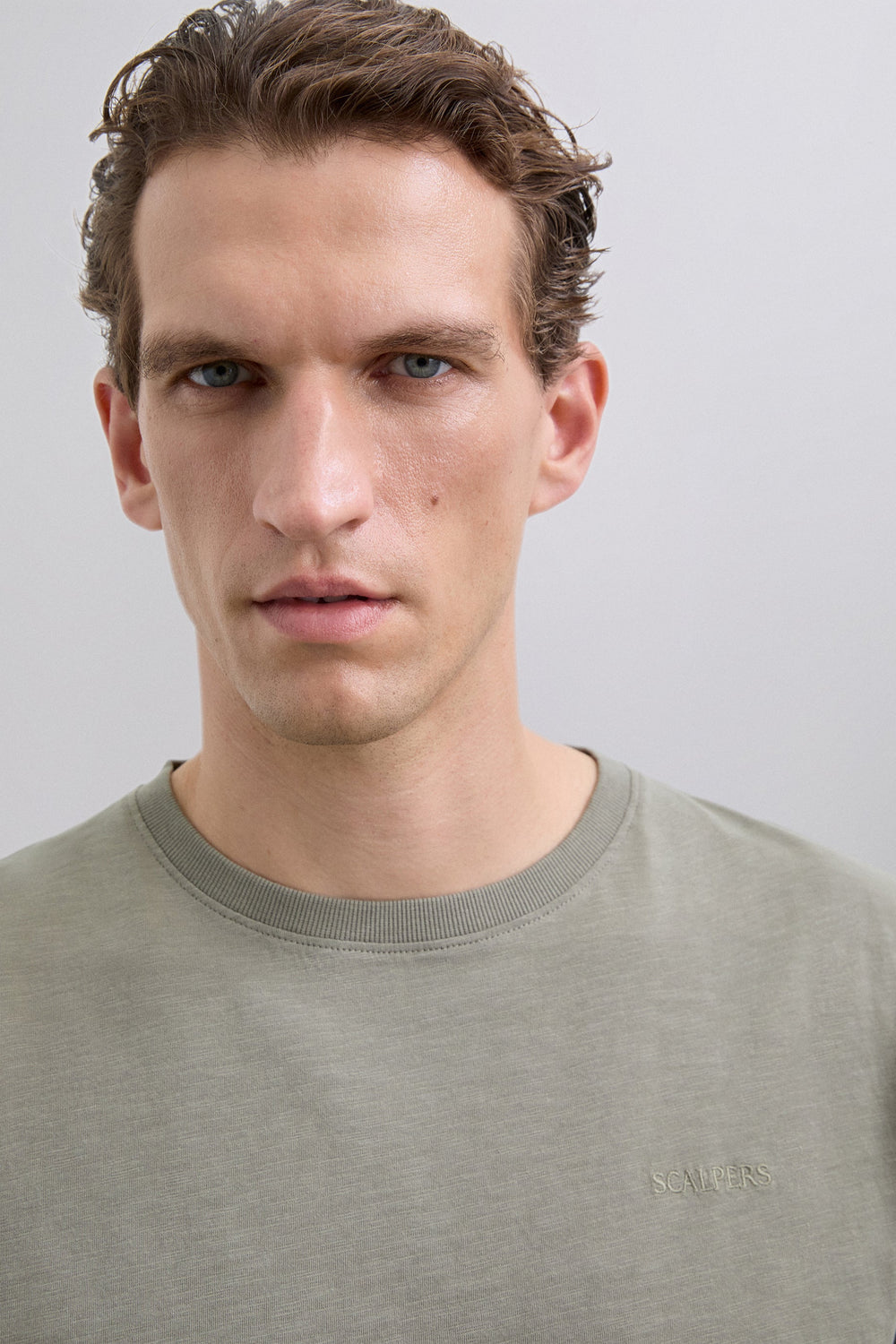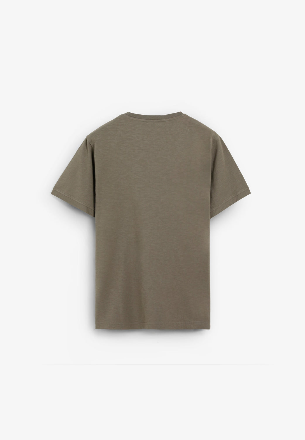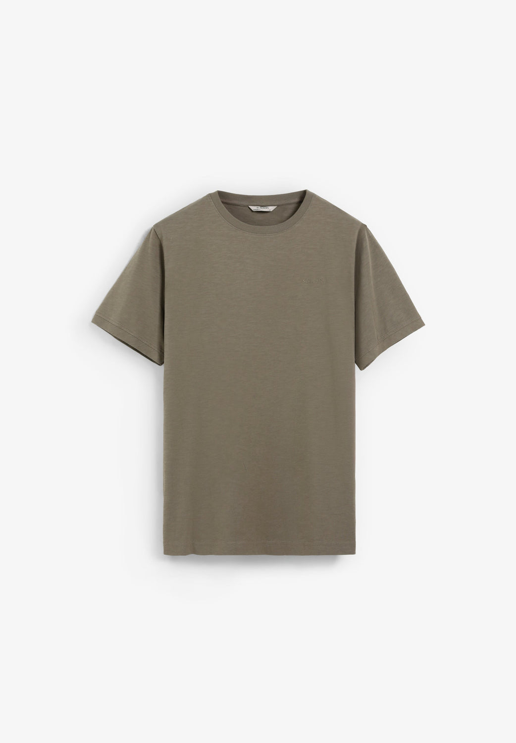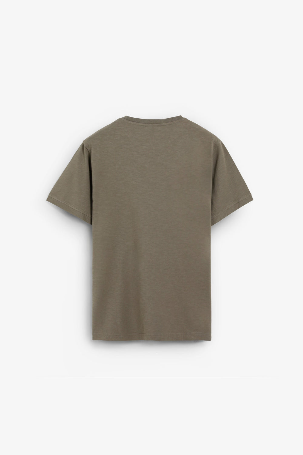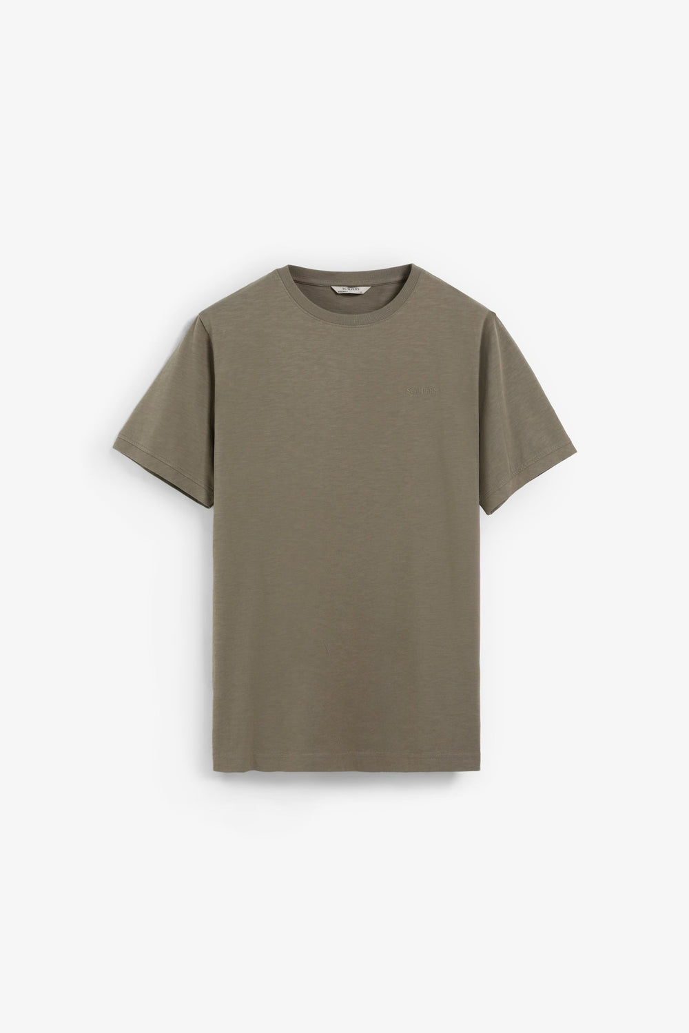 Camiseta confeccionada en 100% Algodón Orgánico. Regular Fit. Manga corta. Cuello redondo. Efecto lavado. Logotipo bordado tono en el pecho. Cuello de canalé.