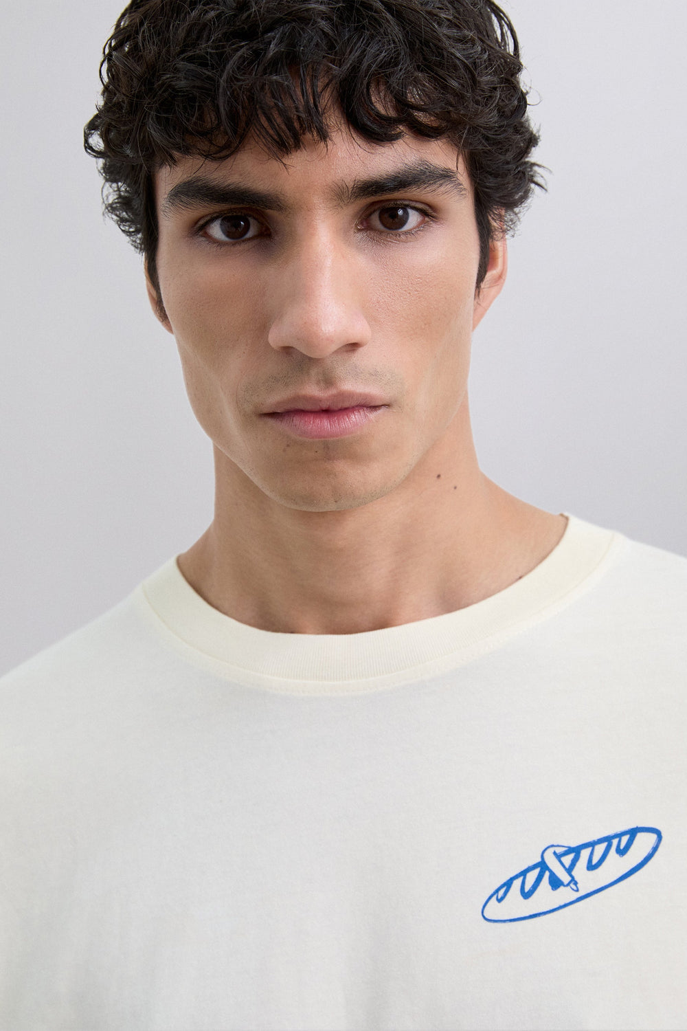 Camiseta con print en pecho y espalda. Confeccionada en 100% algodón BCI. Corte Regular Fit. Cuello redondo. Manga corta.