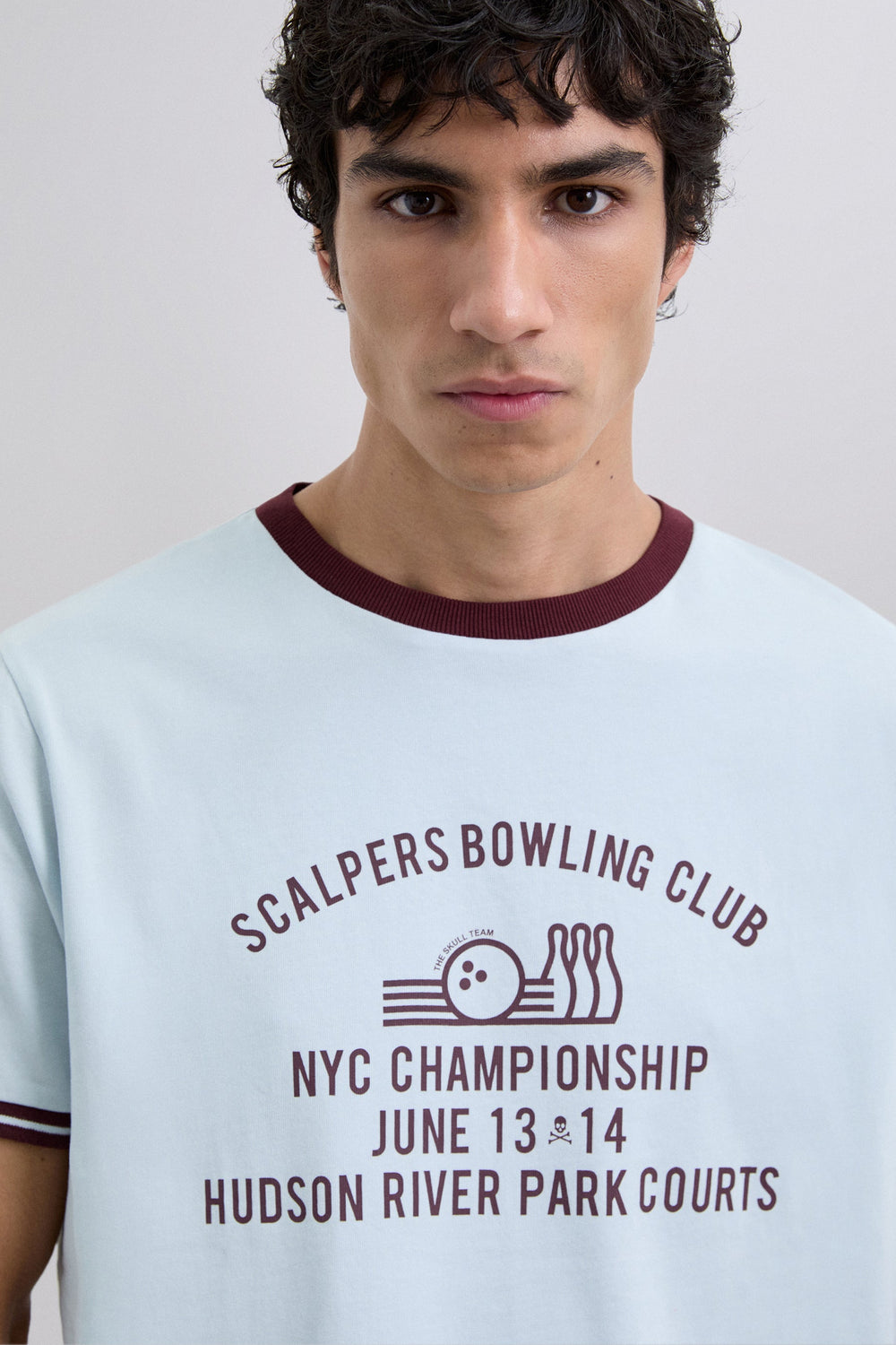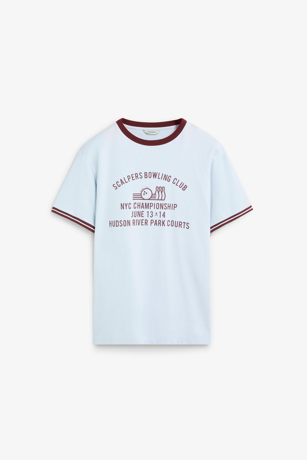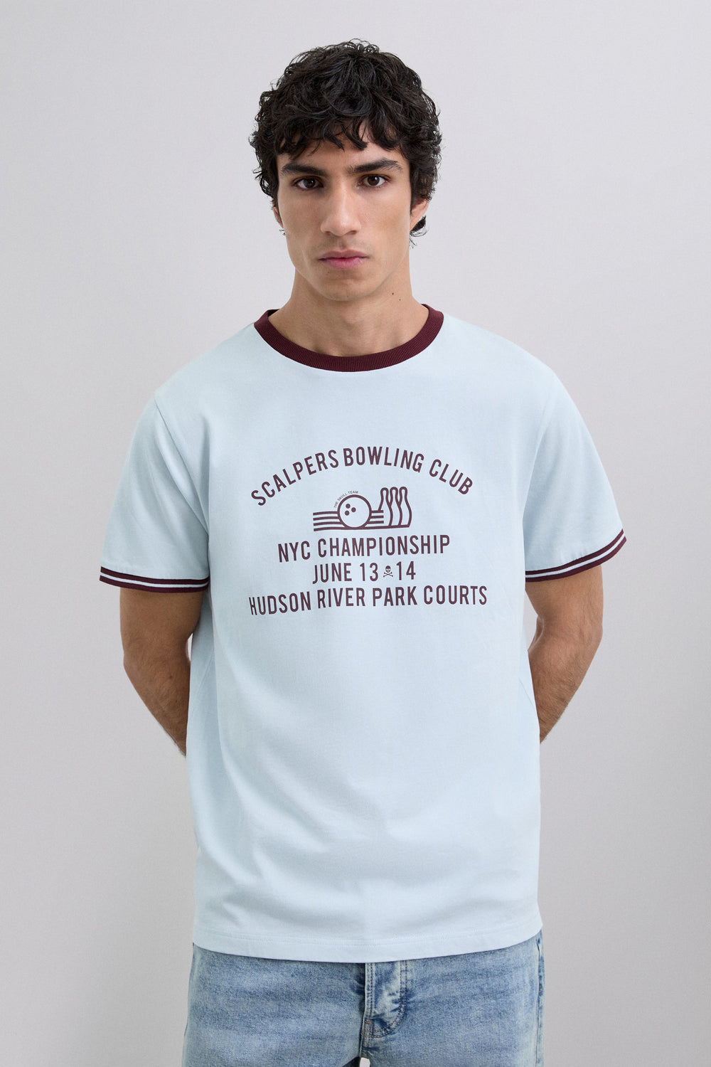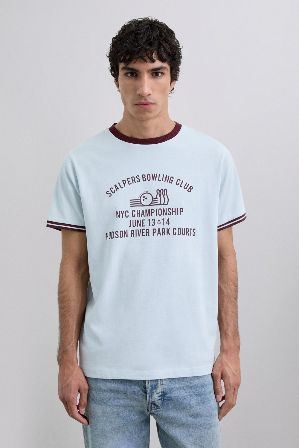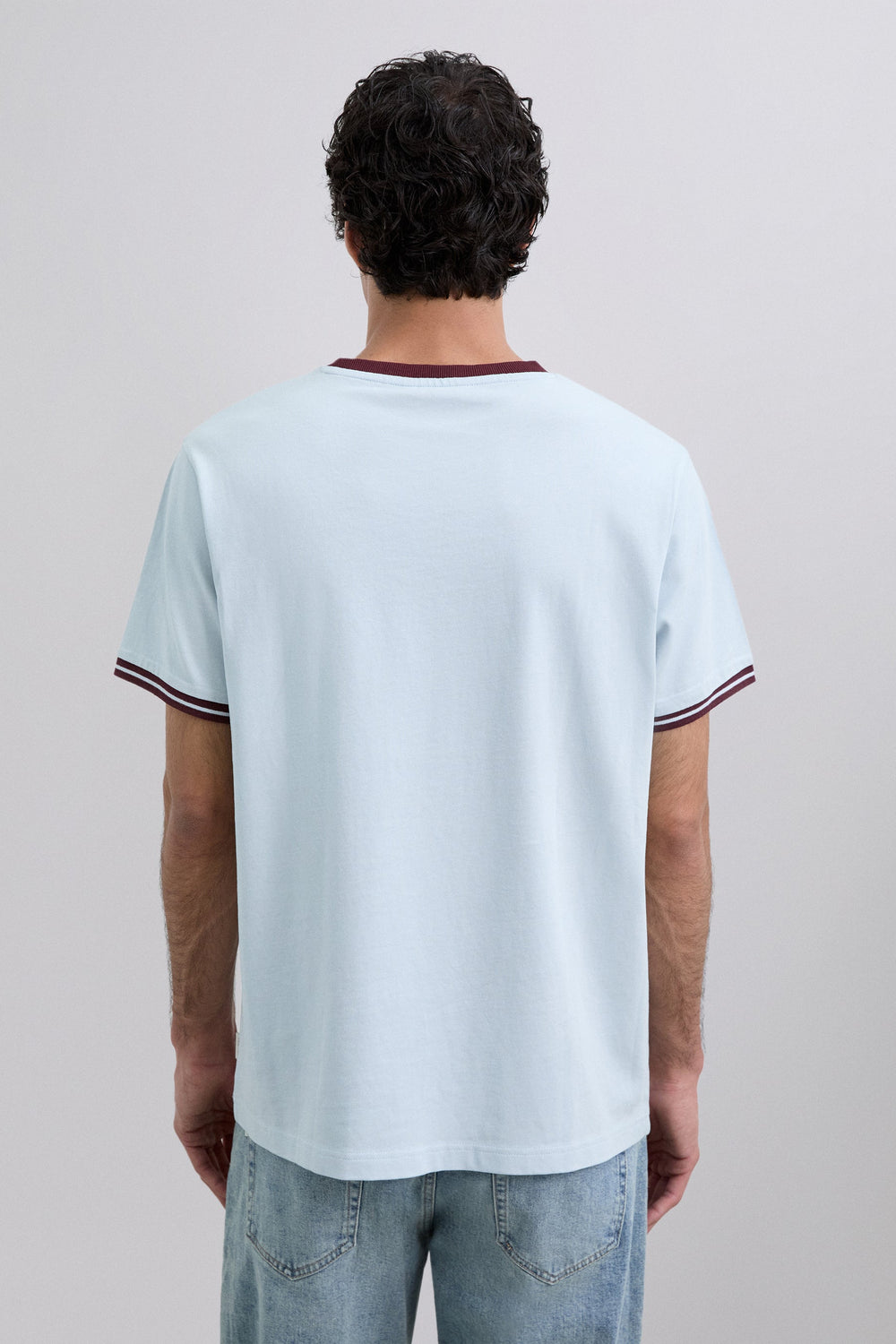 Camiseta confeccionada en 100% algodón BCI. Manga corta. Print frontal. Corte Regular Fit. Cuello y mangas acabados en rib a contraste.