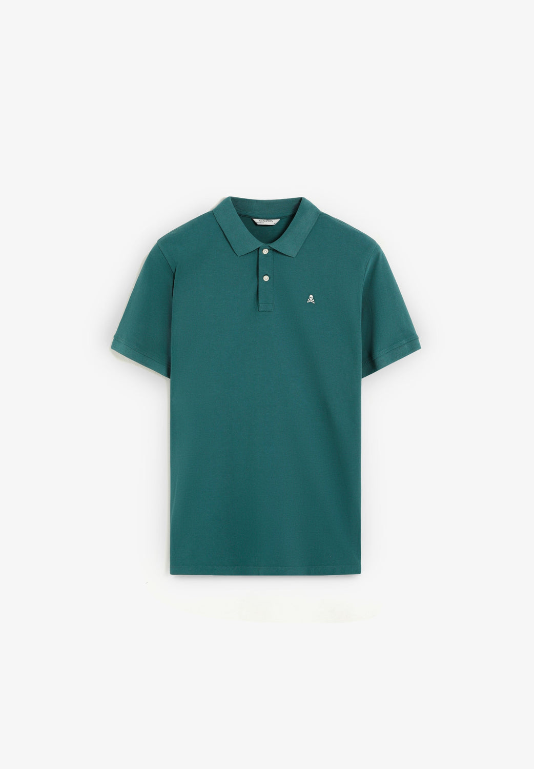 Polo de piqué confeccionado en 100% Algodón Orgánico. Manga corta. Corte Regular. Tapeta de dos botones. Cuello y puños de canalé. Calavera bordada a contraste en el pecho.