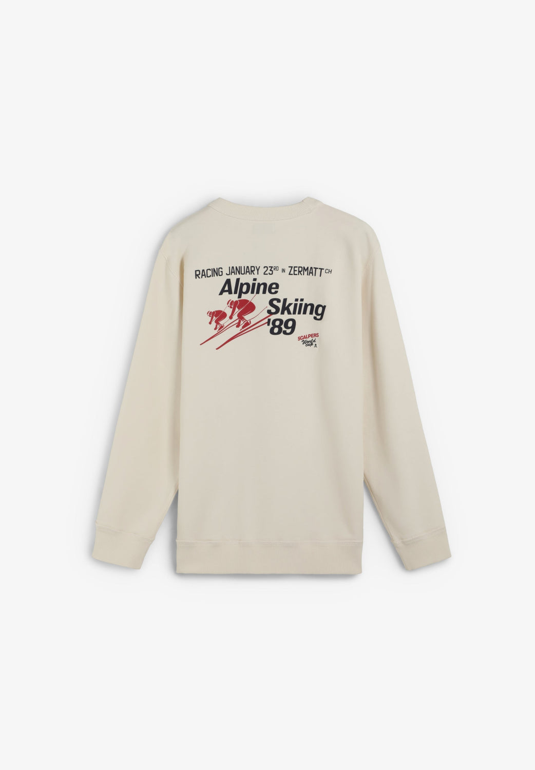 Sudadera confeccionada en 100% algodón BCI. Cuello redondo. Relaxed fit. Print a contraste en espalda. Puños y bajo de canalé. Detalle de etiqueta en bajo izquierdo.