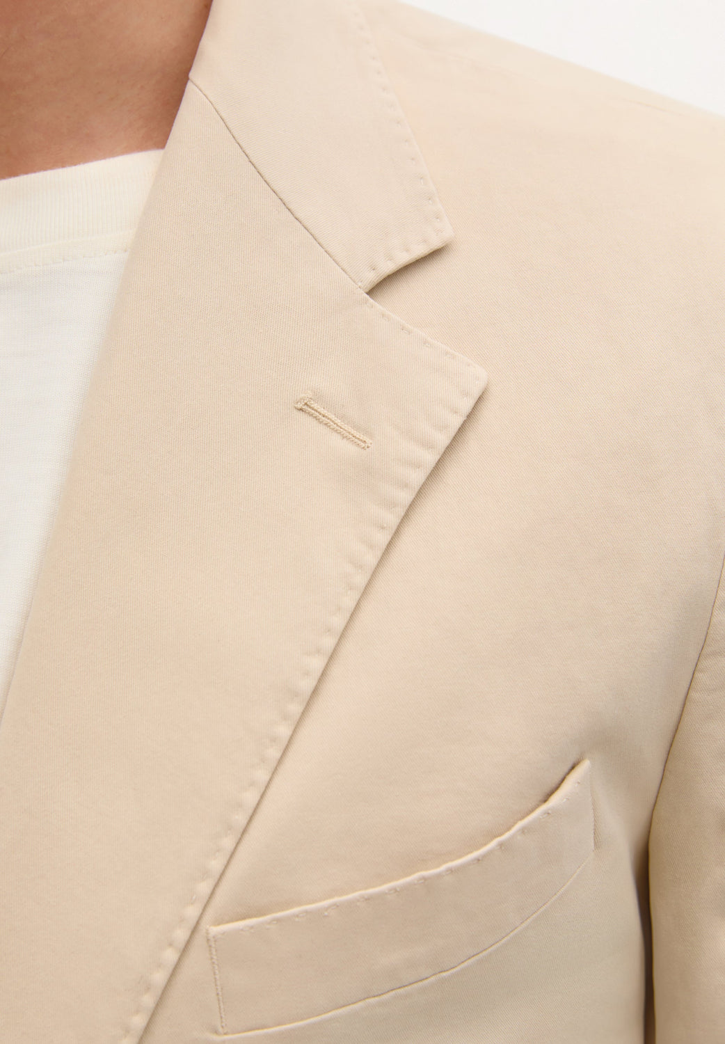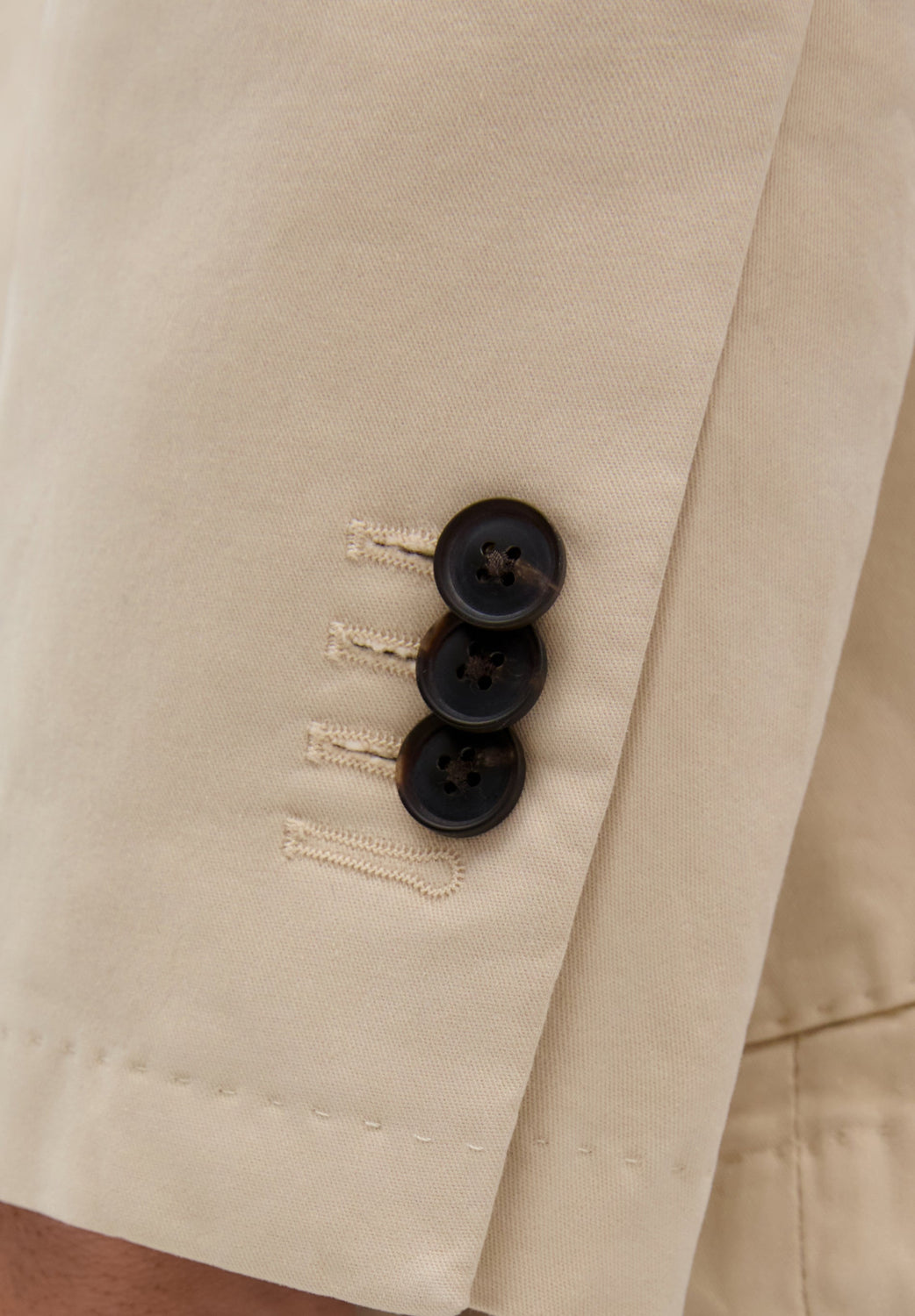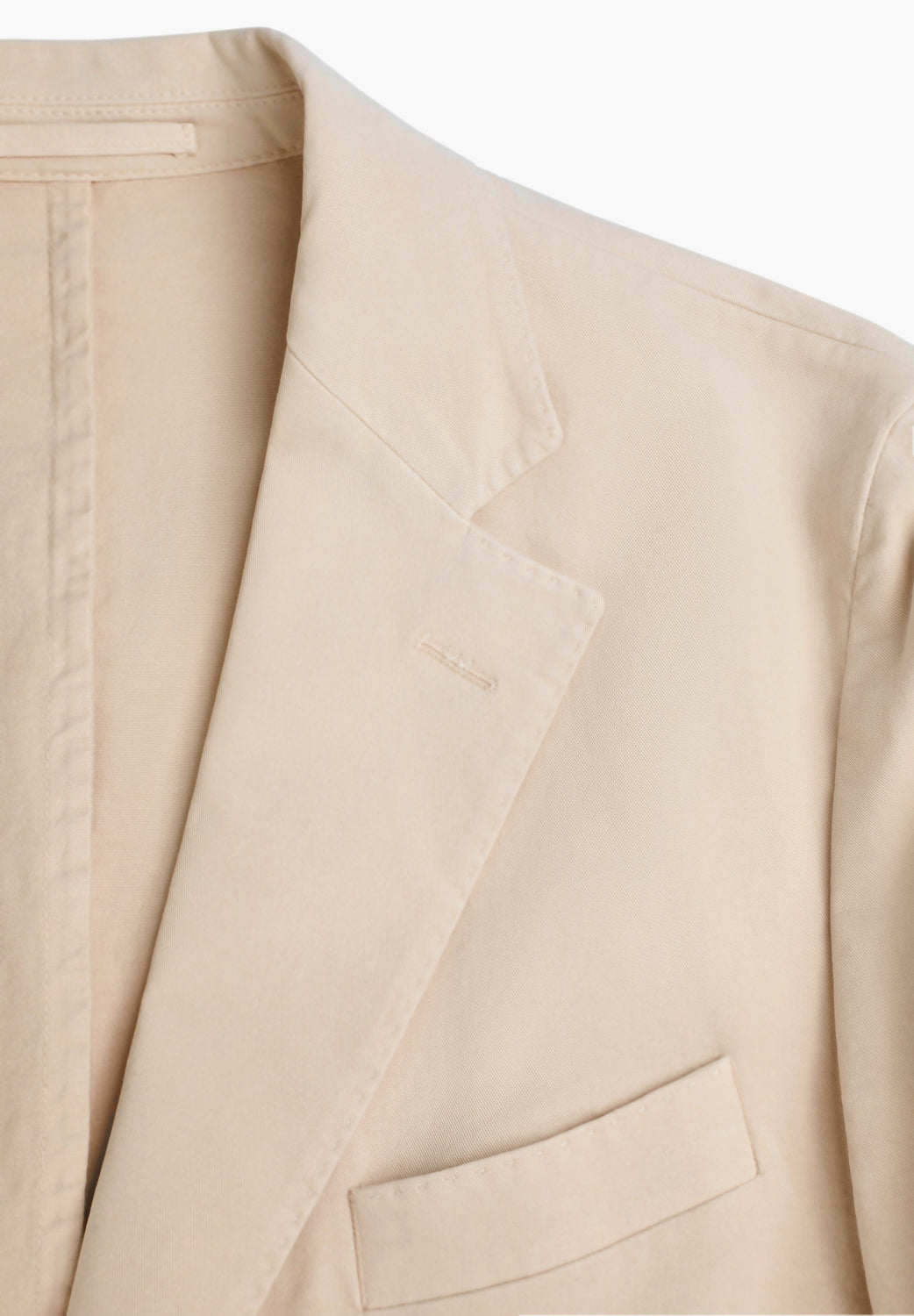 Americana ligera. Confeccionada en 100% algodón. Corte regular fit sin armar sin forro. Cuello con solapas de muesca. Cierre con botones. Manga larga con botones practicables y uno cerrado. Bolsillos de parche.