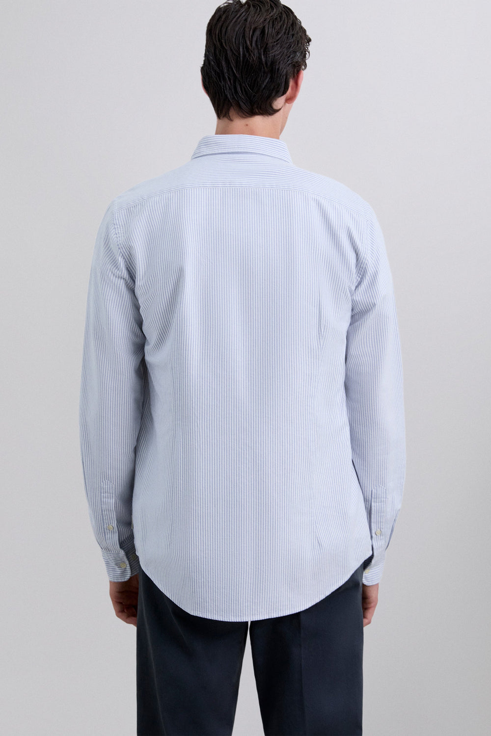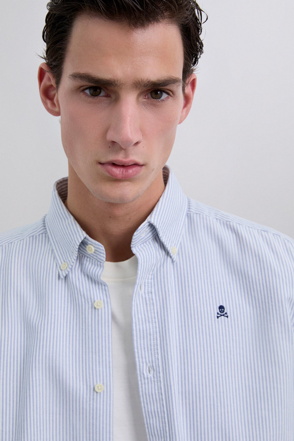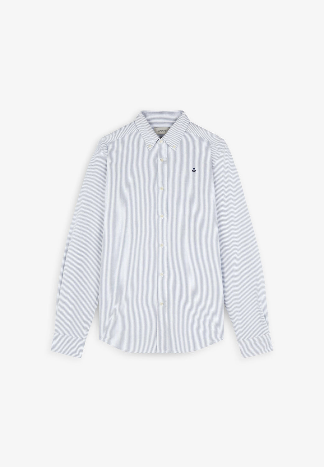 Camisa de rayas confeccionada en 100% algodón BCI. Cuello clásico, cierre con botones, regular fit, calavera en pecho a contraste. Acabado de botones en puño.