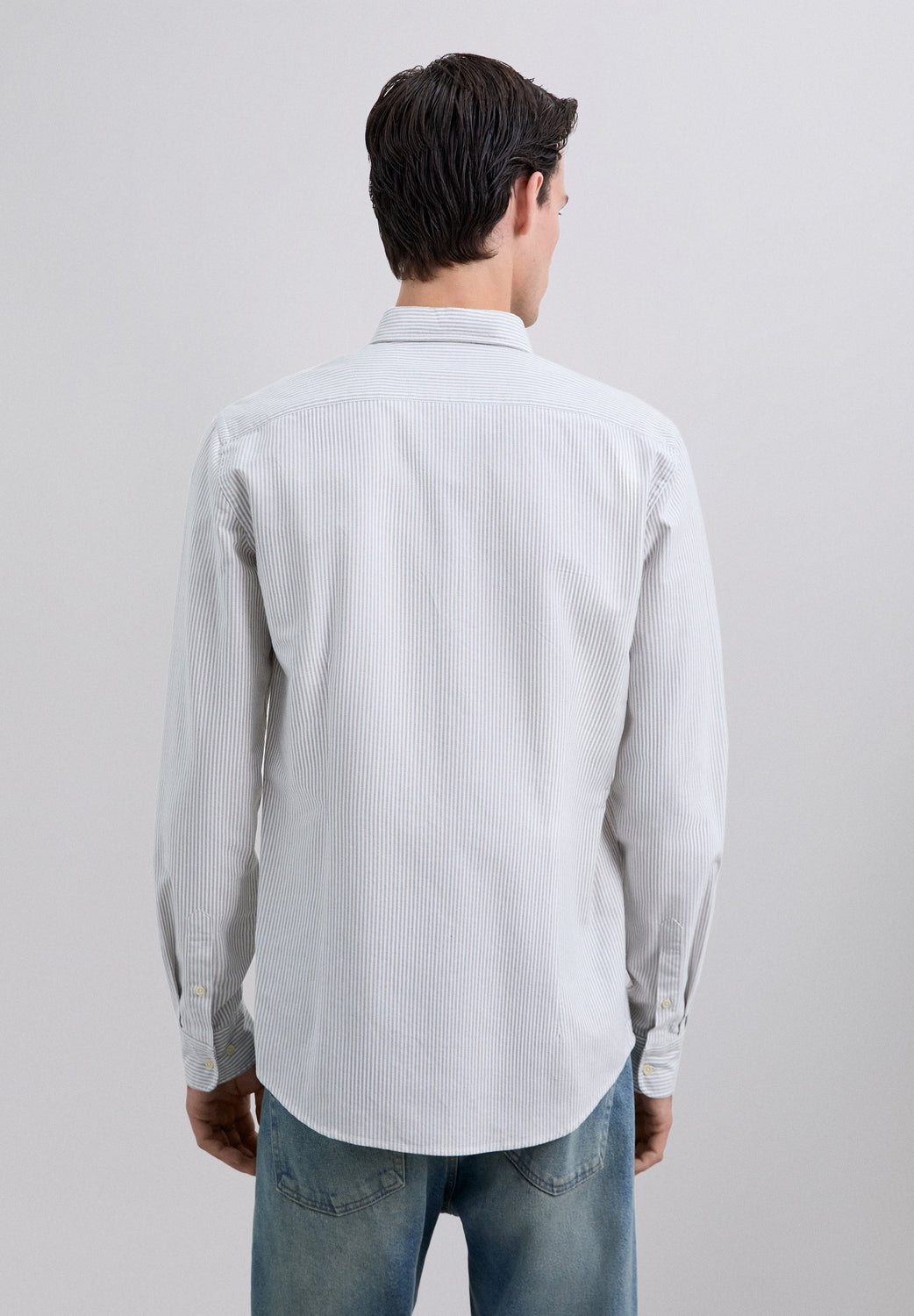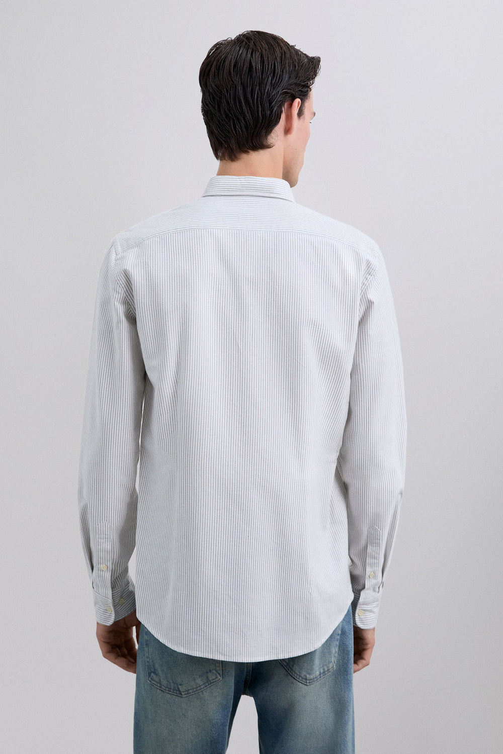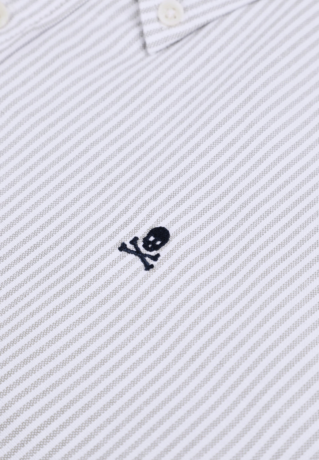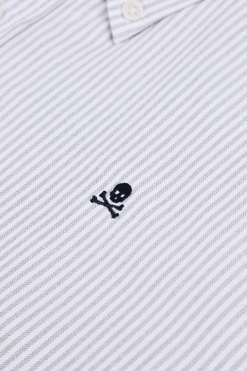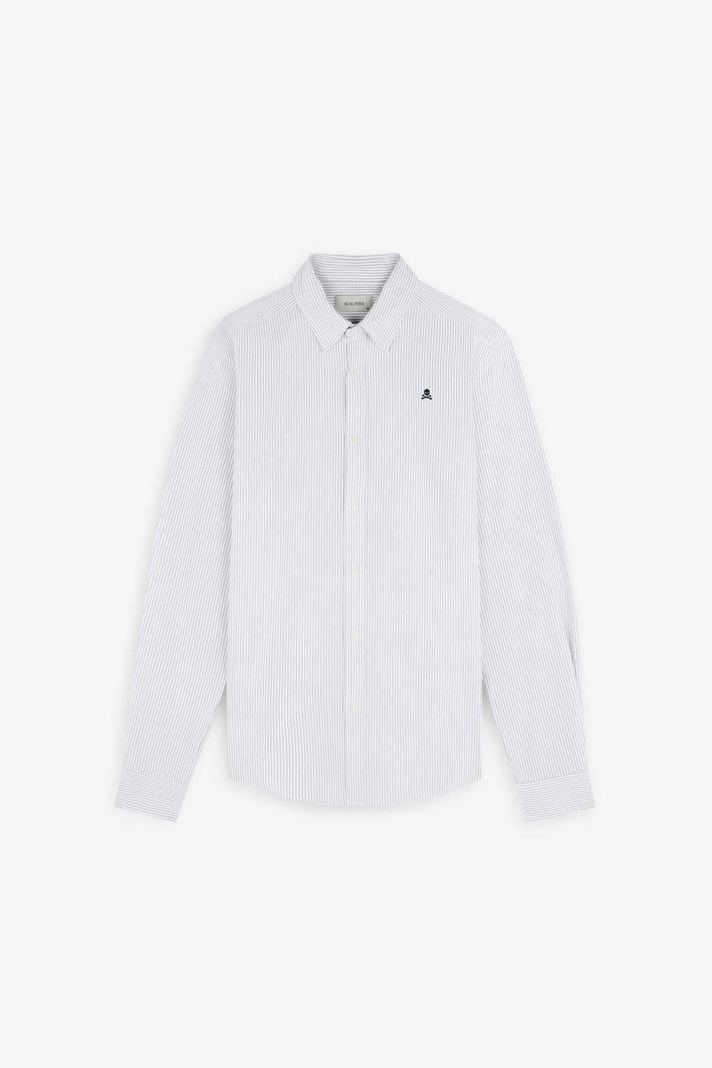 Camisa de rayas confeccionada en 100% algodón BCI. Cuello clásico, cierre con botones, regular fit, calavera en pecho a contraste. Acabado de botones en puño.