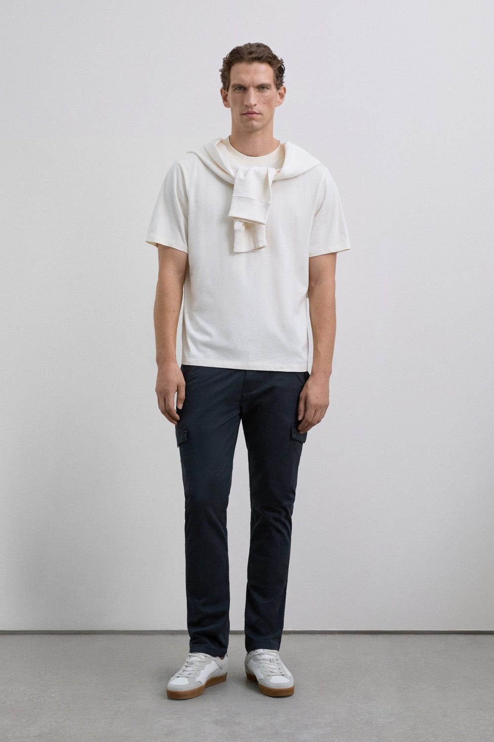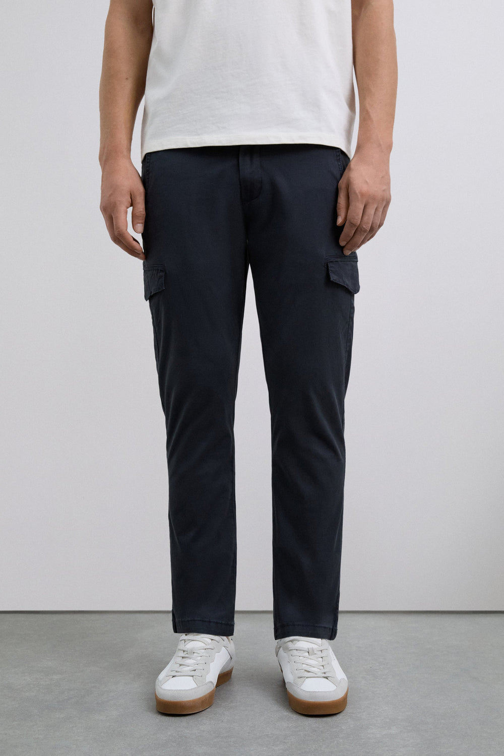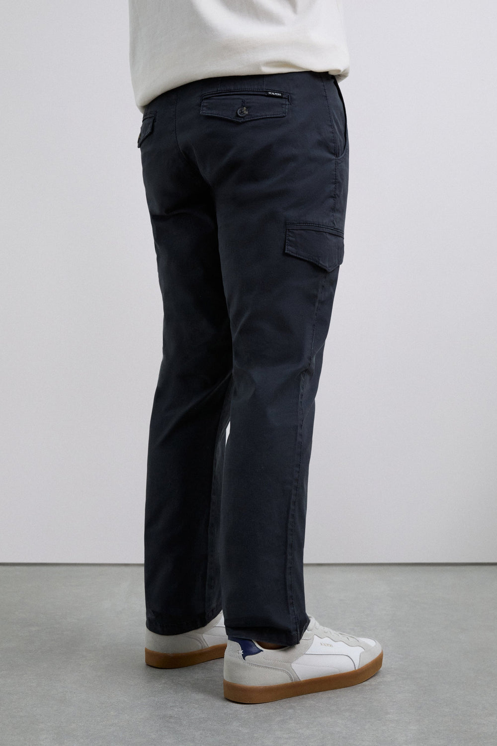 Pantalones cargo confeccionados en algodón BCI. Slim Fit. Dos bolsillos frontales, traseros con cierre mediante botón y laterales con tapeta. Cintura con trabillas y cierre mediante botón y cremallera. Detalle de logo en bolsillo trasero.
