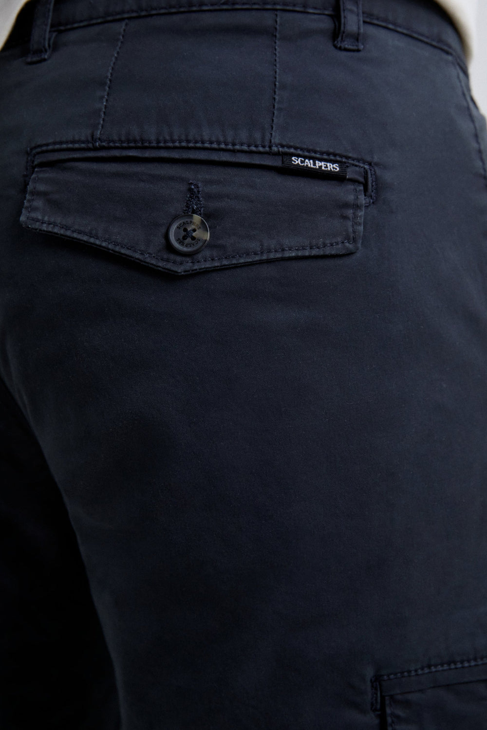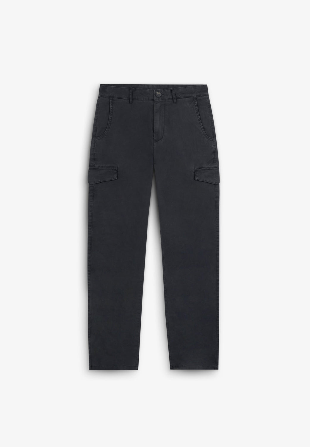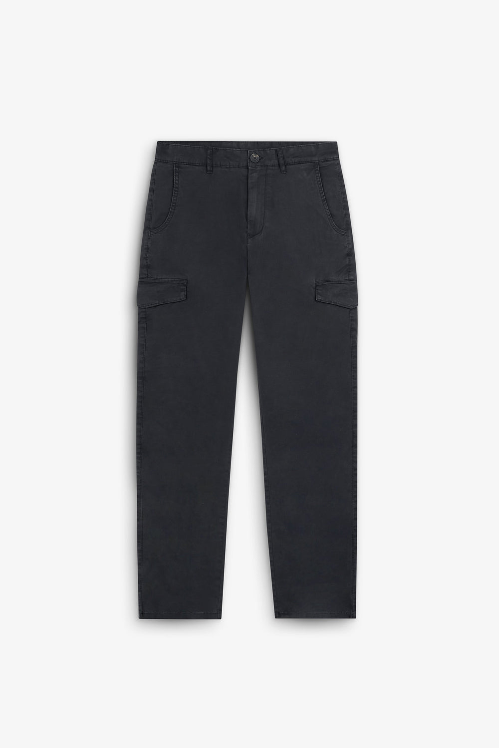 Pantalones cargo confeccionados en algodón BCI. Slim Fit. Dos bolsillos frontales, traseros con cierre mediante botón y laterales con tapeta. Cintura con trabillas y cierre mediante botón y cremallera. Detalle de logo en bolsillo trasero.