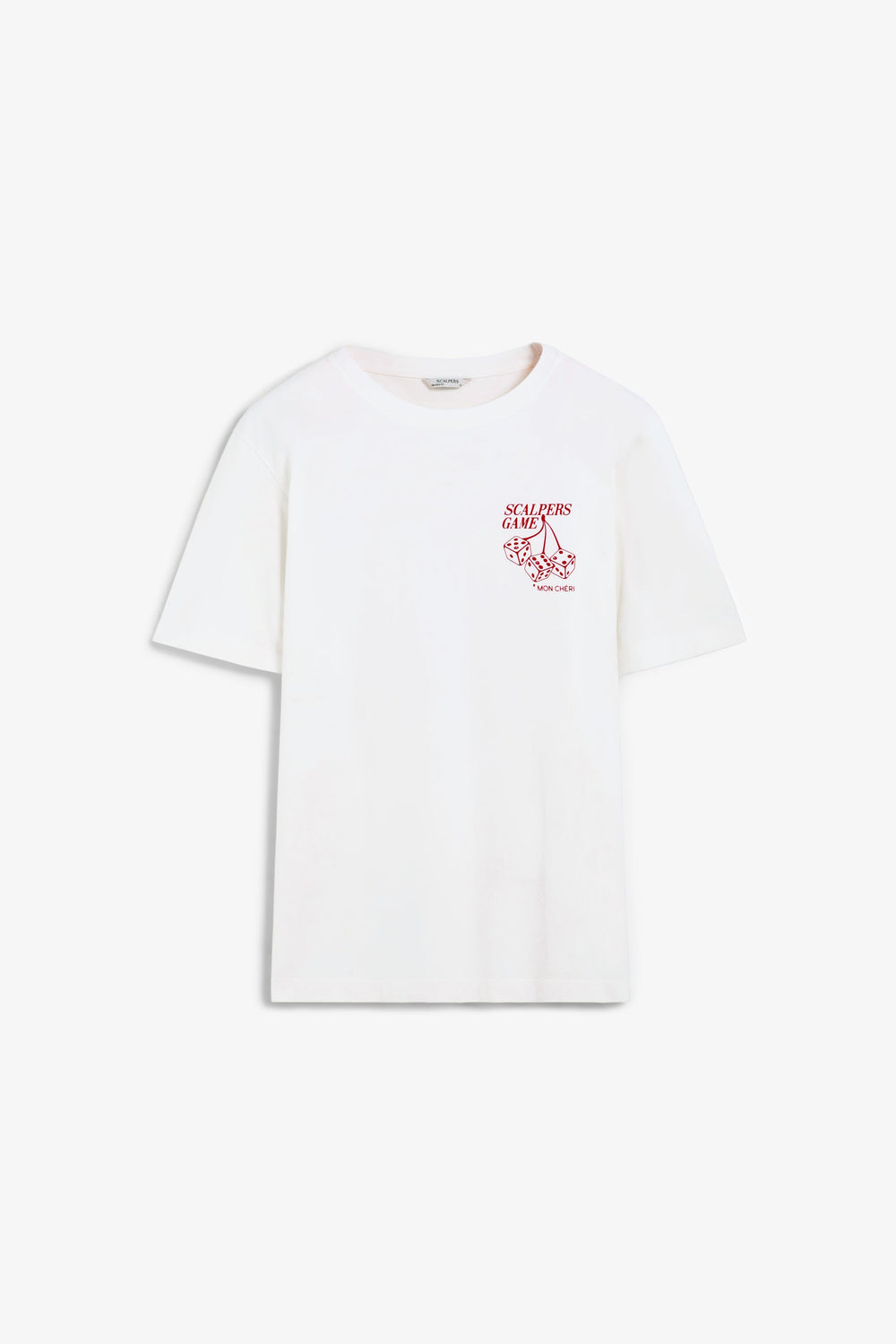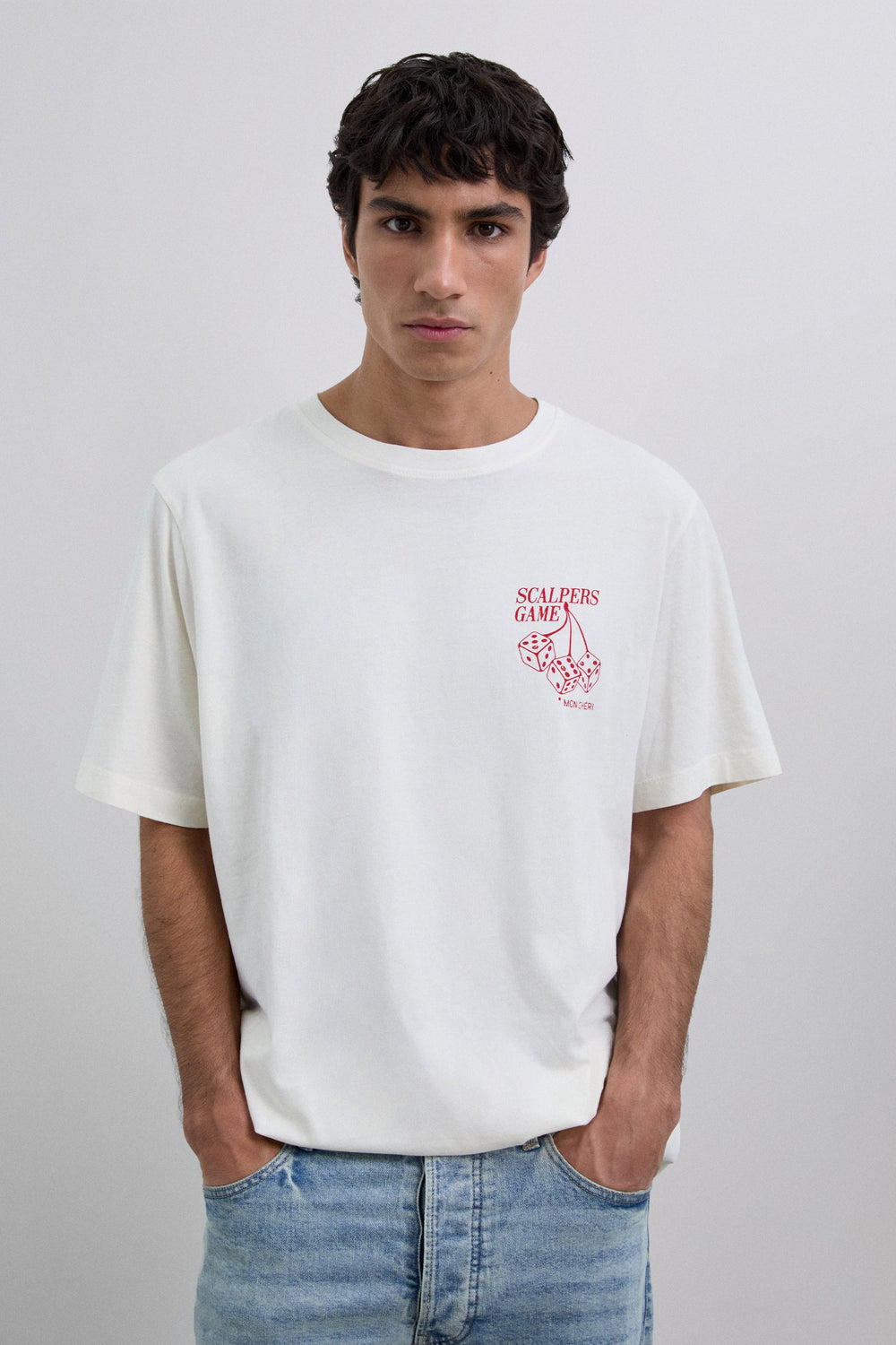 Camiseta con print en pecho y espalda. Confeccionada en 100% algodón BCI. Cuello redondo. Manga corta.