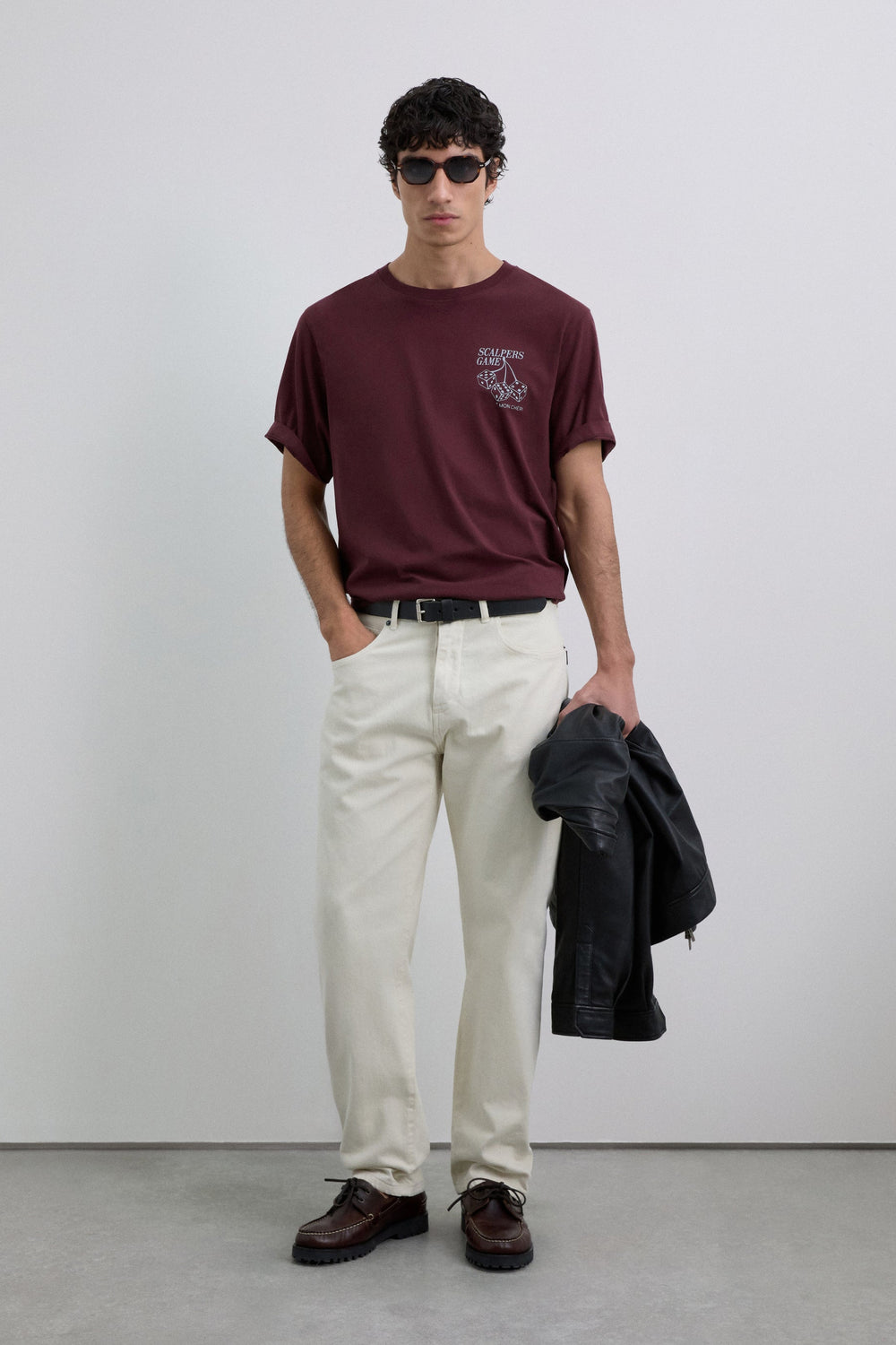 Camiseta con print en pecho y espalda. Confeccionada en 100% algodón BCI. Cuello redondo. Manga corta.