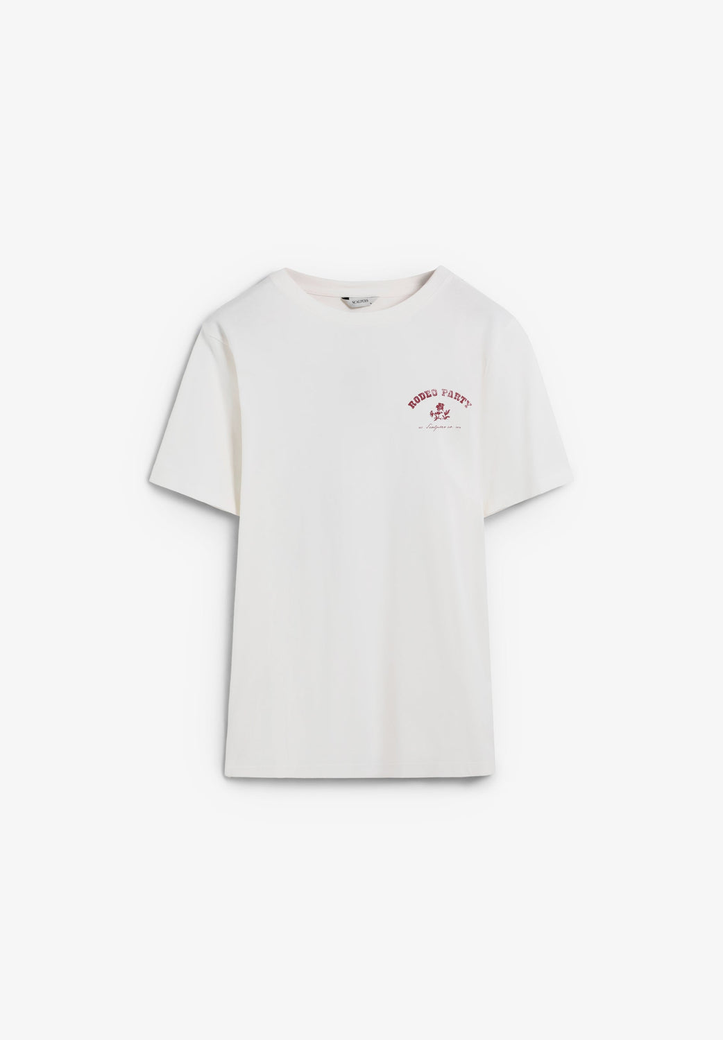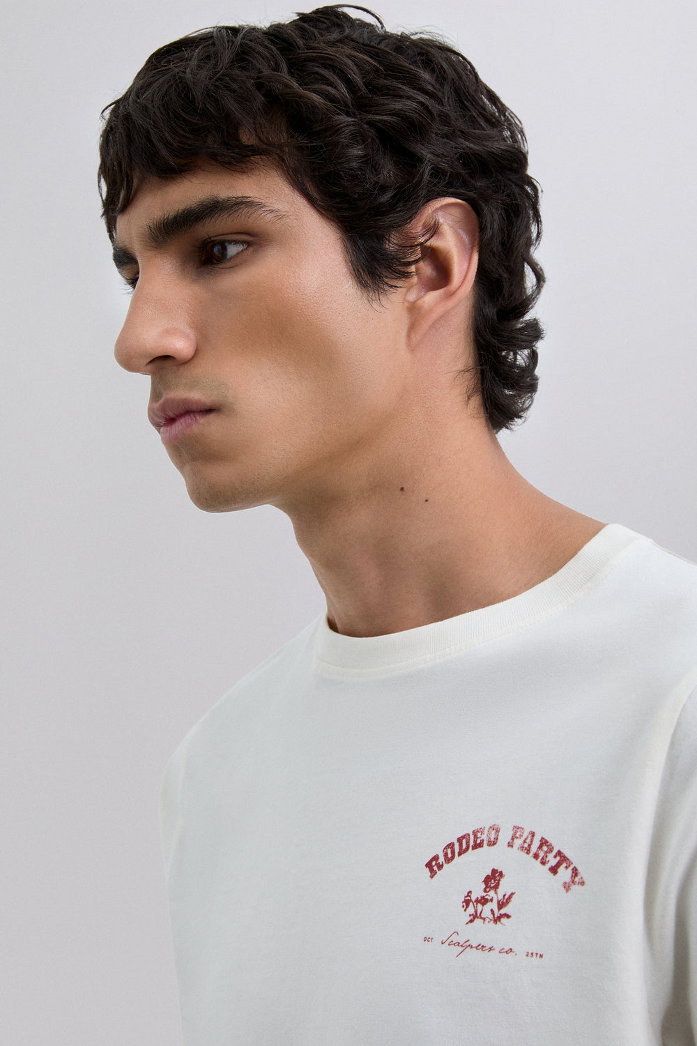 Camiseta confeccionada en 100% algodón BCI. Regular Fit. Cuello redondo. Manga corta. Print frontal en pecho y en espalda con logo.