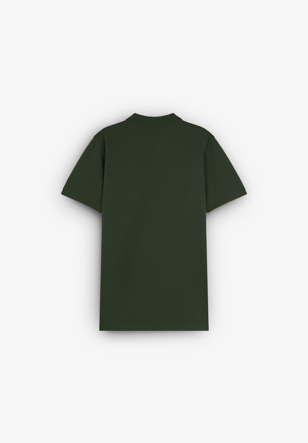 Polo básico confeccionado en 100% algodón BCI. Regular fit, cuello clásico y cierre con botones. Manga corta y calavera bordada a tono.