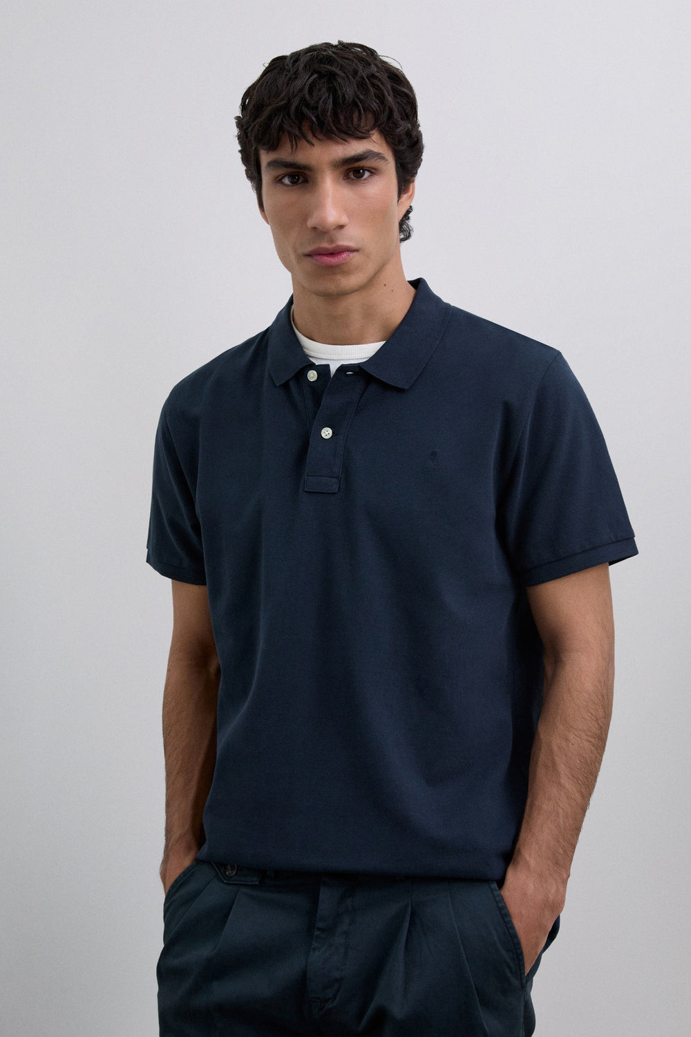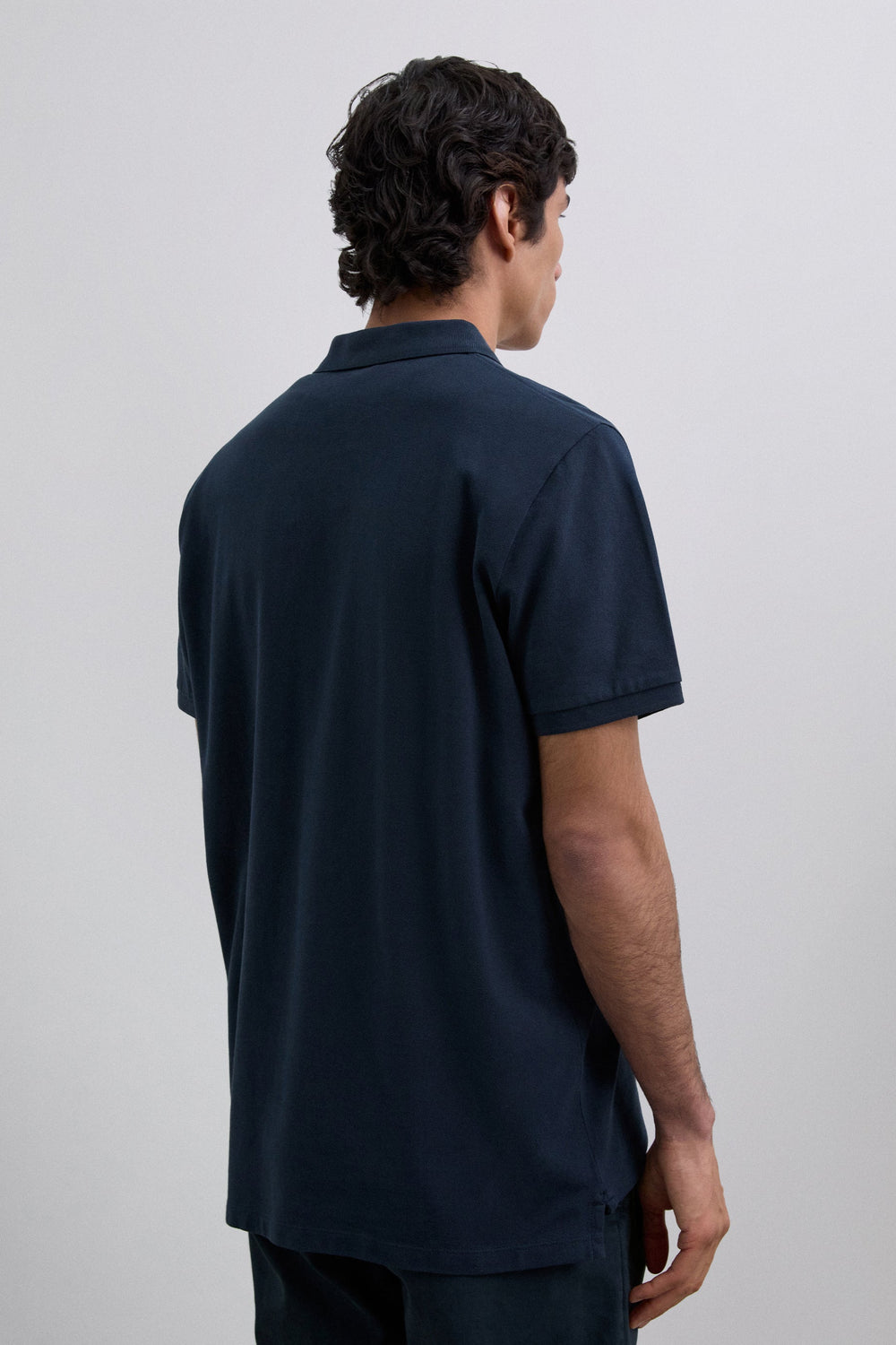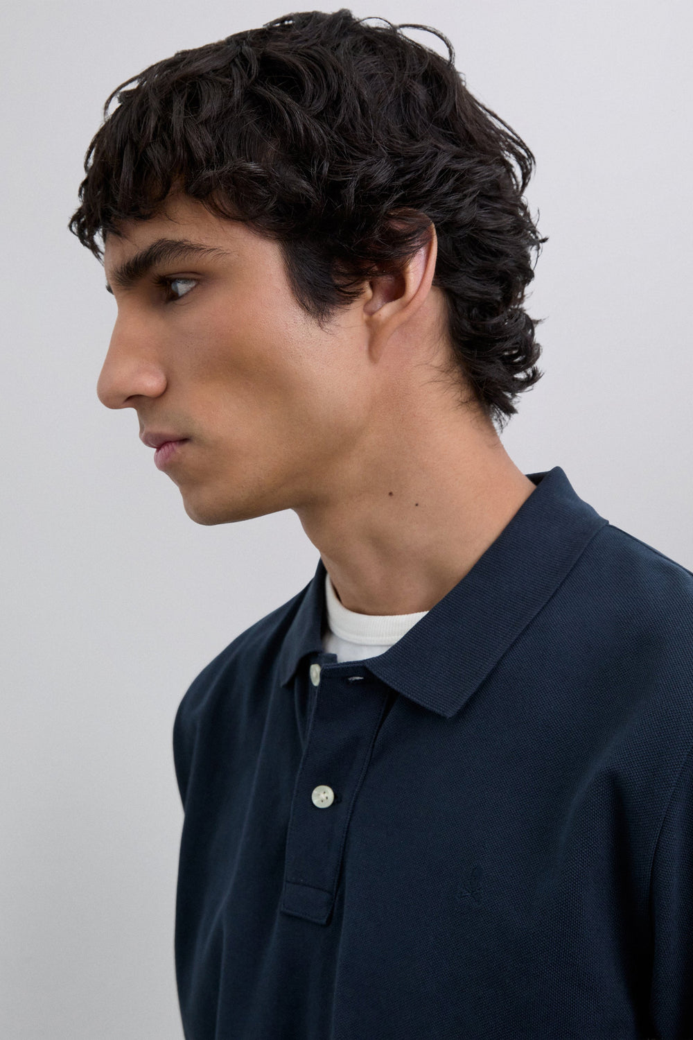 Polo básico confeccionado en 100% algodón BCI. Regular fit, cuello clásico y cierre con botones. Manga corta y calavera bordada a tono.