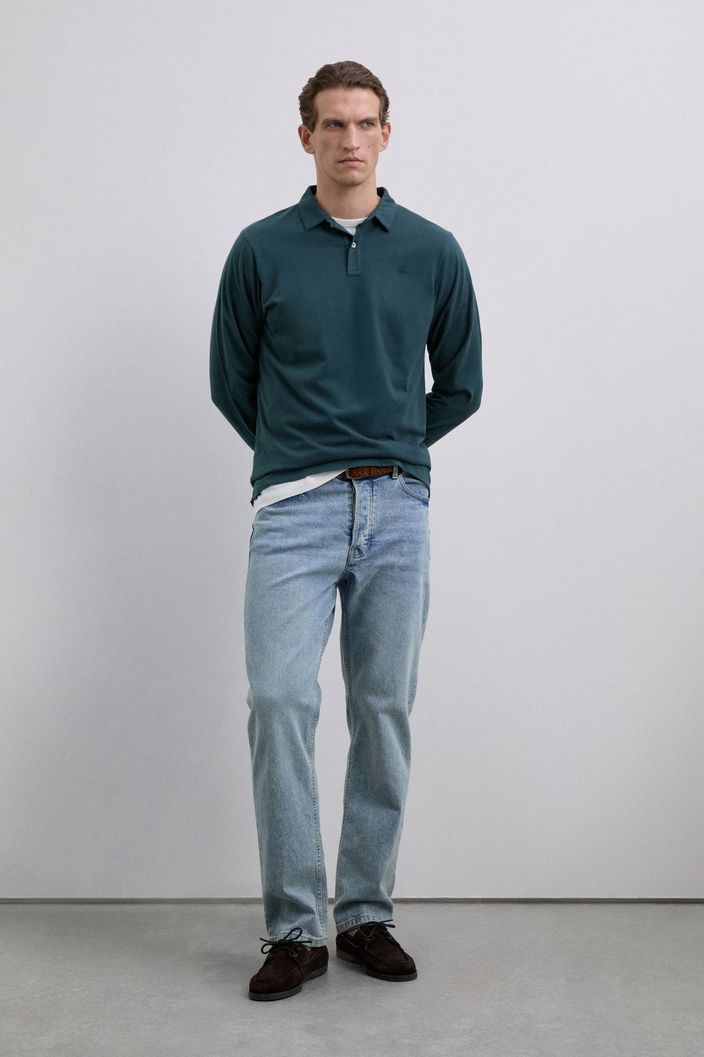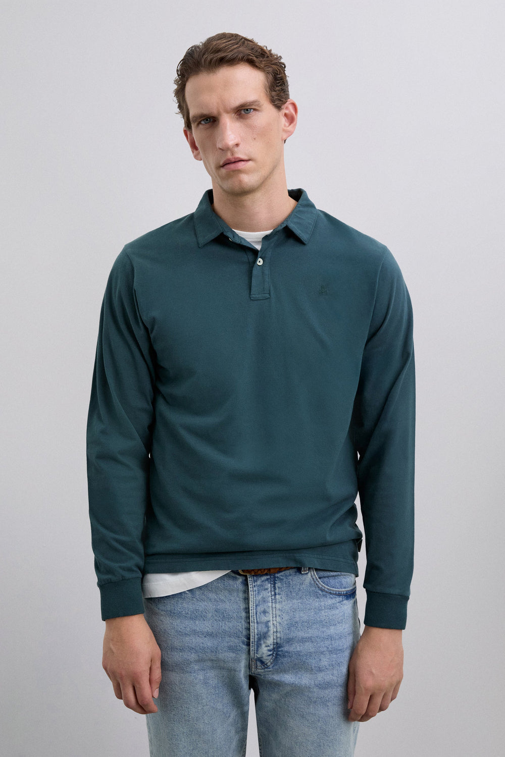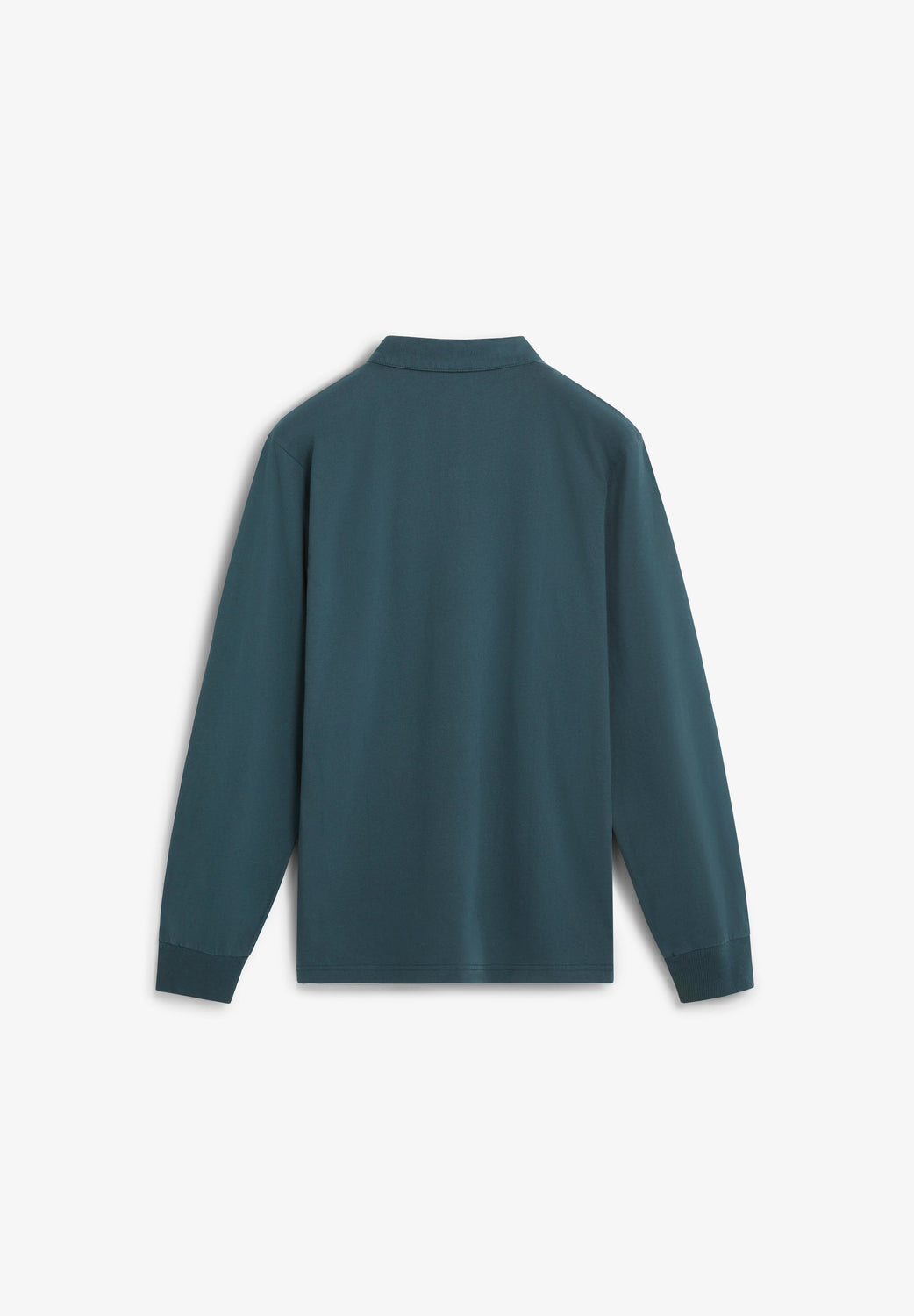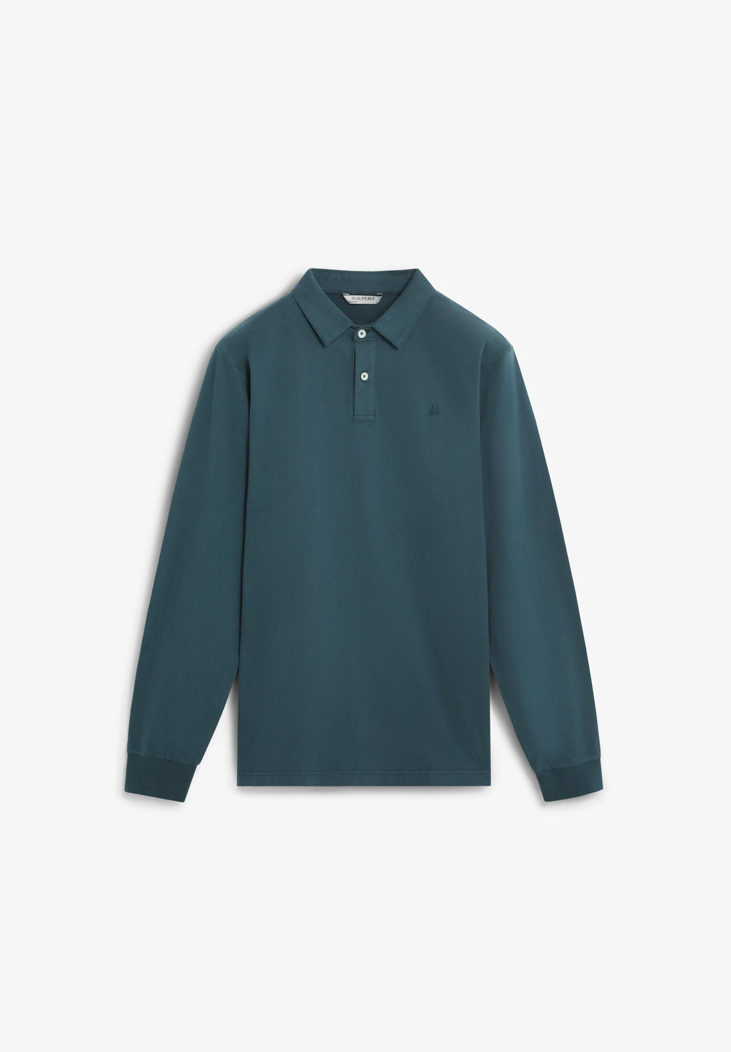 Polo de manga larga confeccionado en 100% algodón BCI. Detalle de calavera bordada a tono en pecho. Cuello camisero. Cierre mediante abotonadura en frontal.
