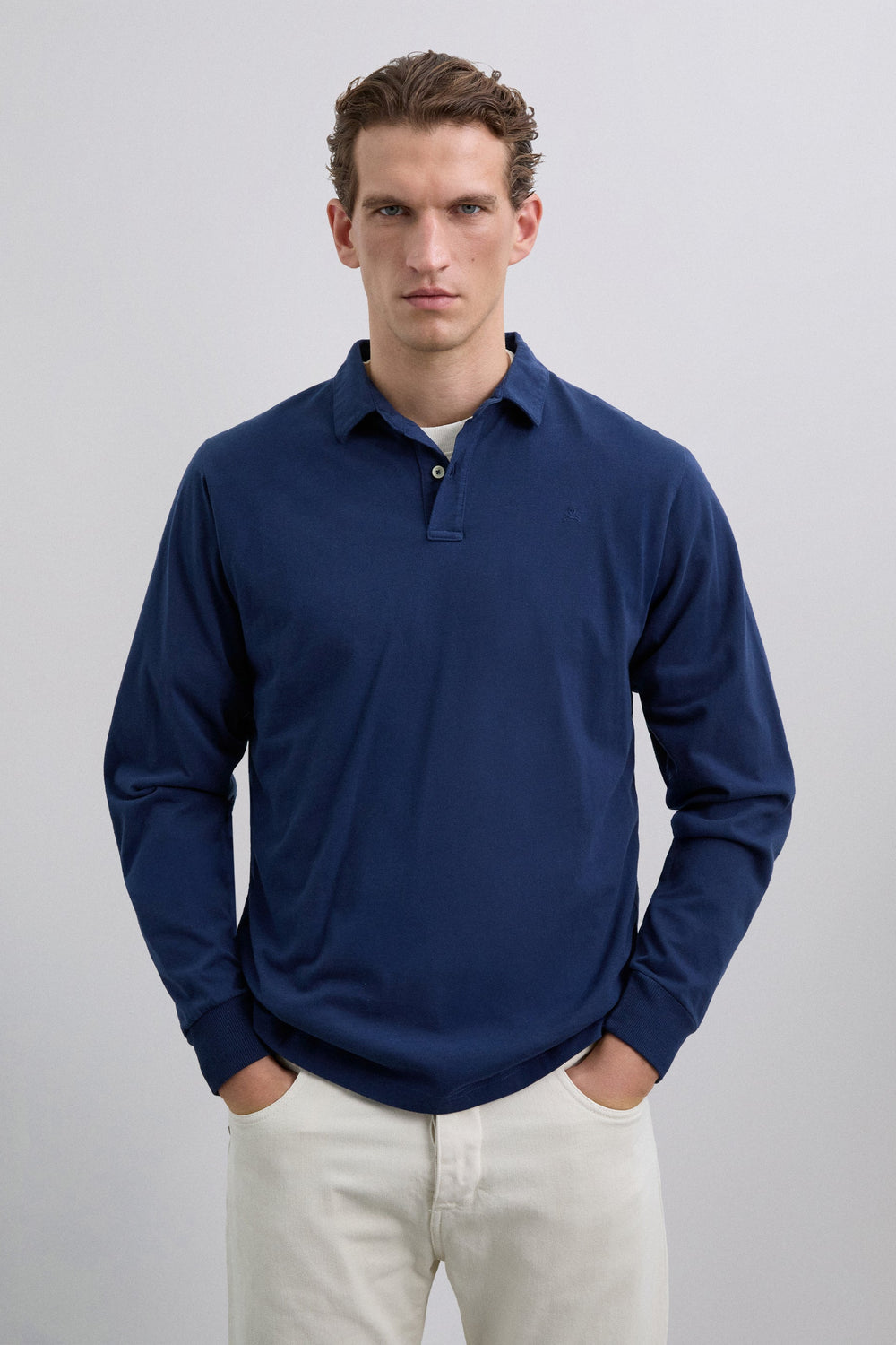 Polo de manga larga confeccionado en 100% algodón BCI. Detalle de calavera bordada a tono en pecho. Cuello camisero. Cierre mediante abotonadura en frontal.