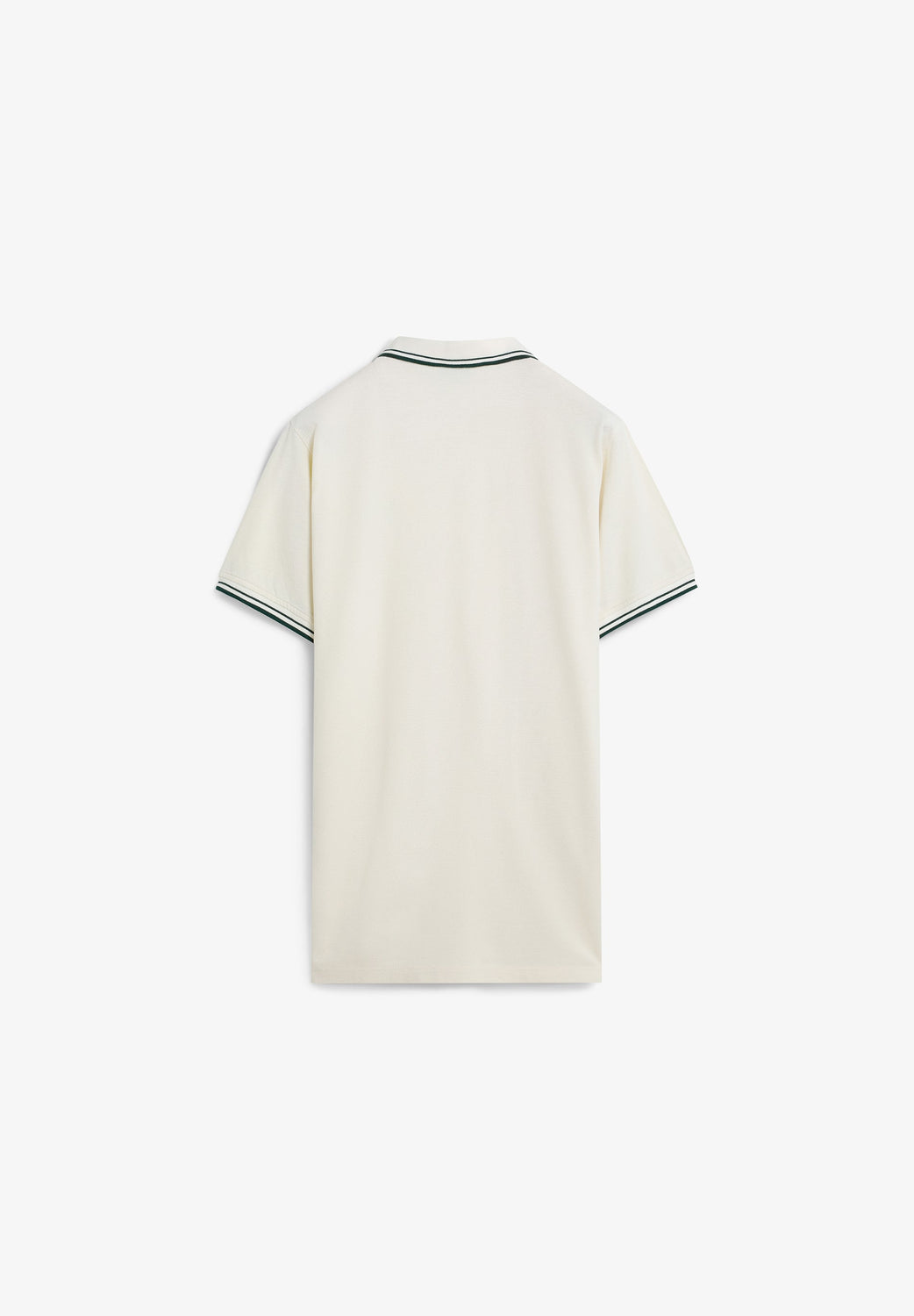 Polo confeccionado en 100% algodón BCI. Manga corta. Regular Fit. Cuello y manga con detalle de rayas a contraste. Tapeta de 2 botones. Detalle de calavera bordada a contraste en pecho.