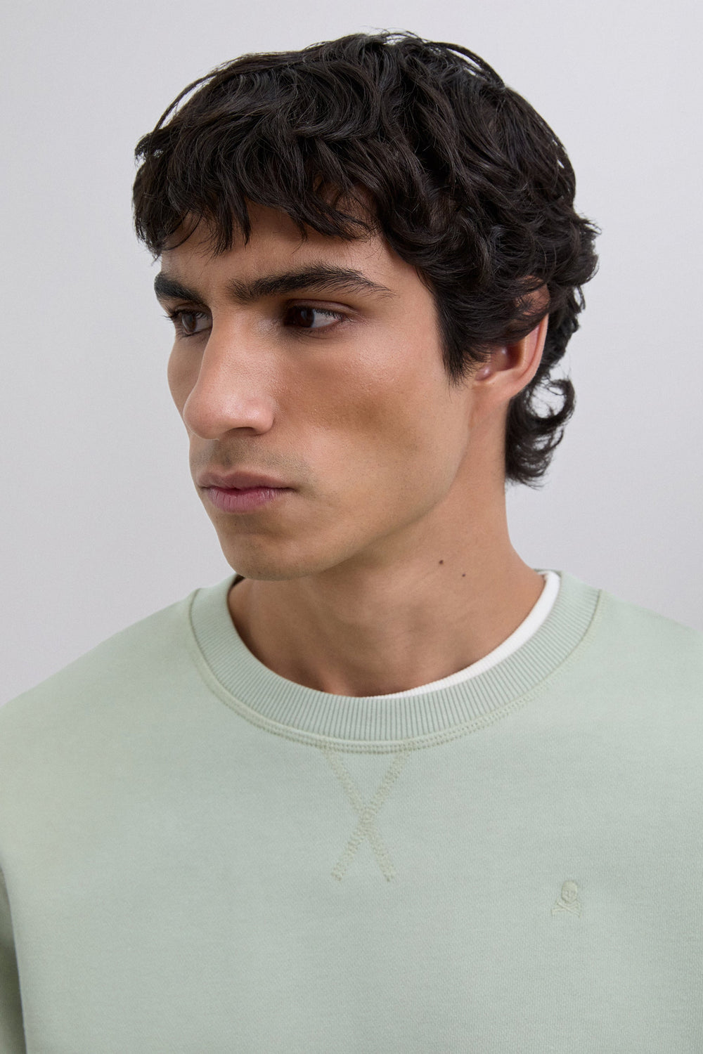 Sudadera básica confeccionada en 100% algodón BCI. Regular fit, cuello redondo y manga larga. Calavera bordada a tono.