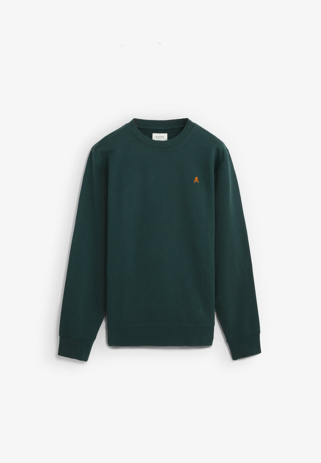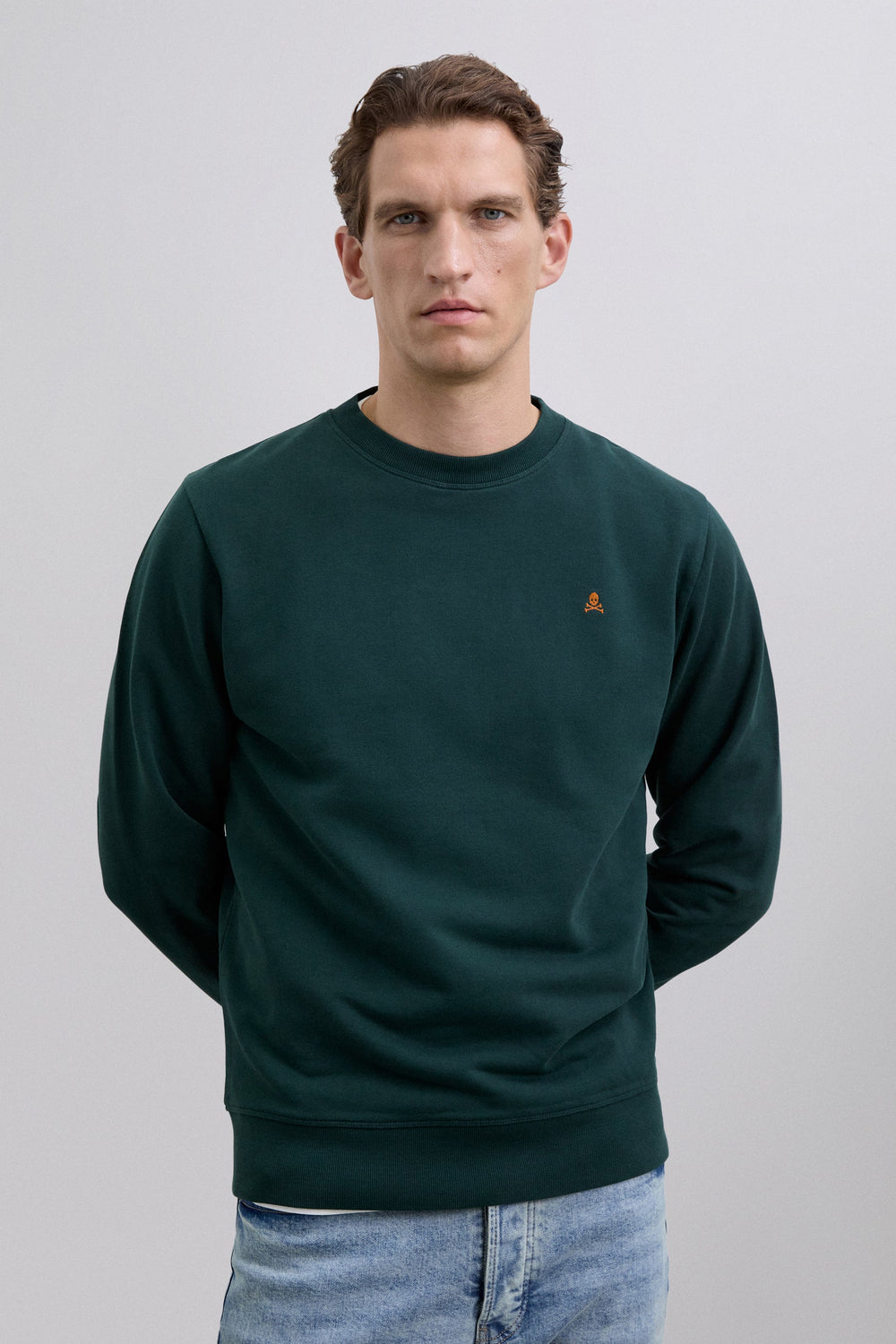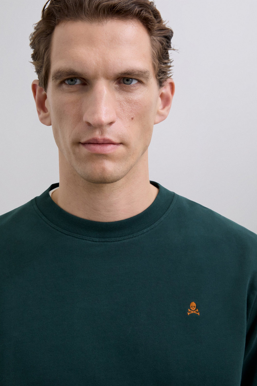 Sudadera confeccionada en 100% algodón BCI. Regular fit. Manga larga. Cuello redondo, mangas y cintura acabados en rib. Calavera bordada a contraste.