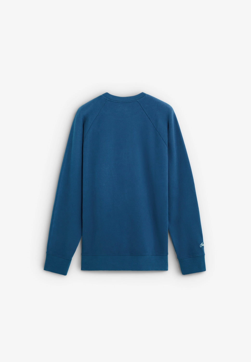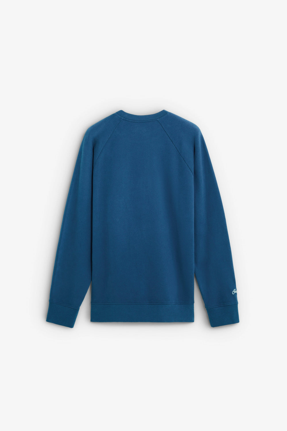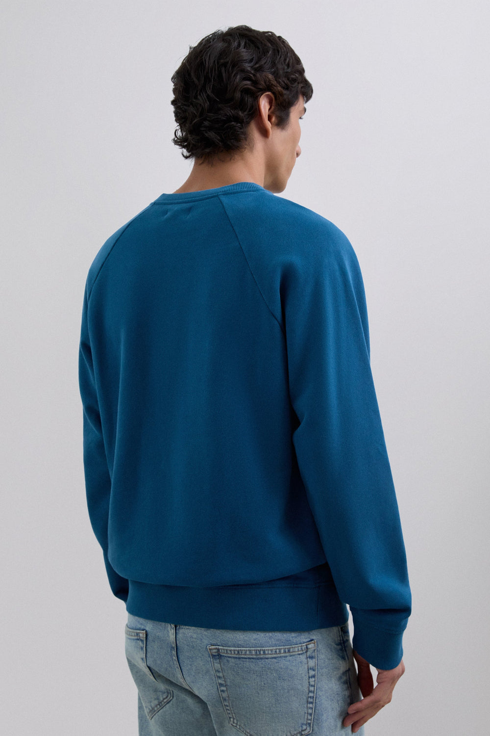 Sudadera confeccionada en 100% algodón BCI. Regular Fit. Cuello redondo. Manga larga. Print frontal con logo. Detalle de logo bordado en la manga. Acabados en rib.