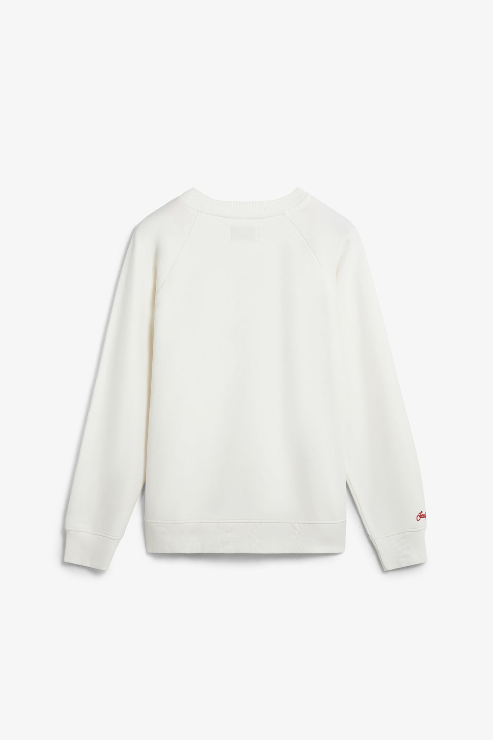 Sudadera confeccionada en 100% algodón BCI. Regular Fit. Cuello redondo. Manga larga. Print frontal con logo. Detalle de logo bordado en la manga. Acabados en rib.