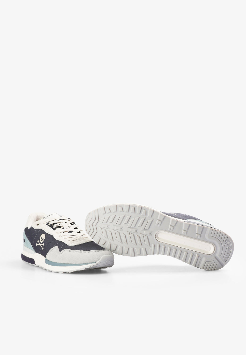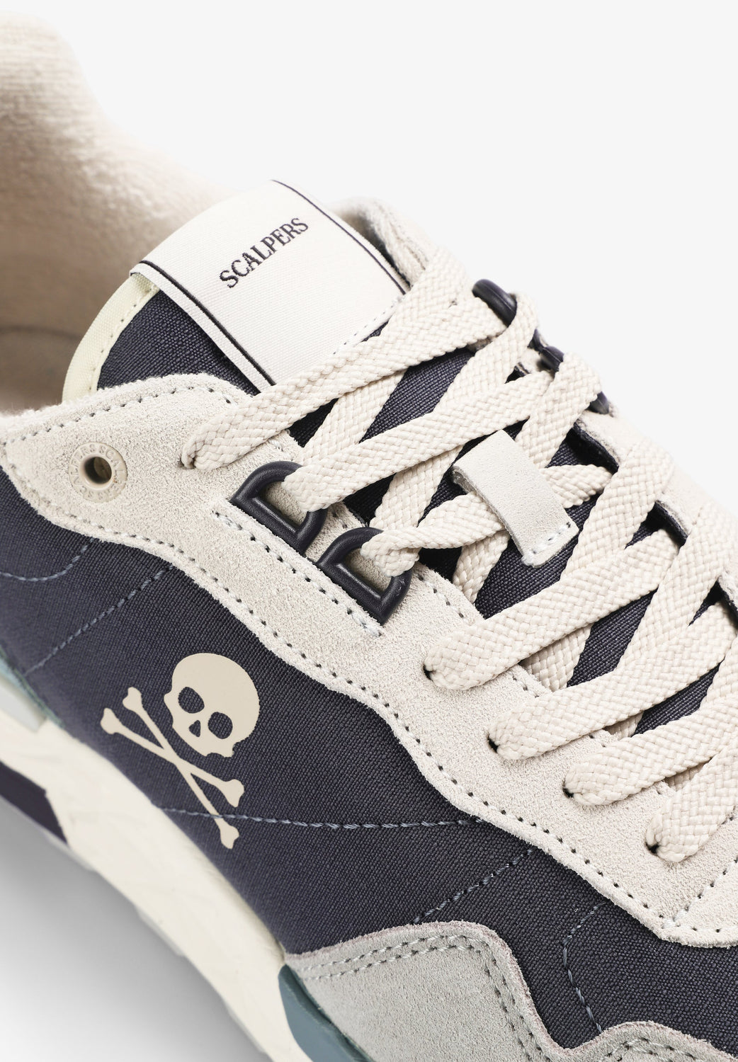 Sneakers con calavera lateral y acabados en ante a contraste. Cierre con cordones a contraste. Talón con detalle de logo engomado a contraste. Etiqueta con logo en lengüeta.