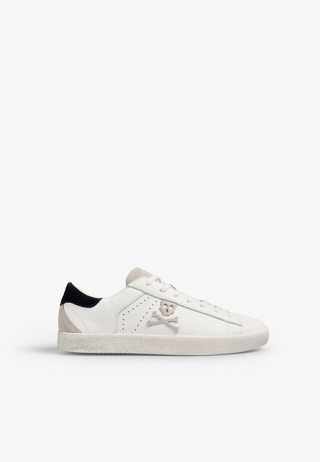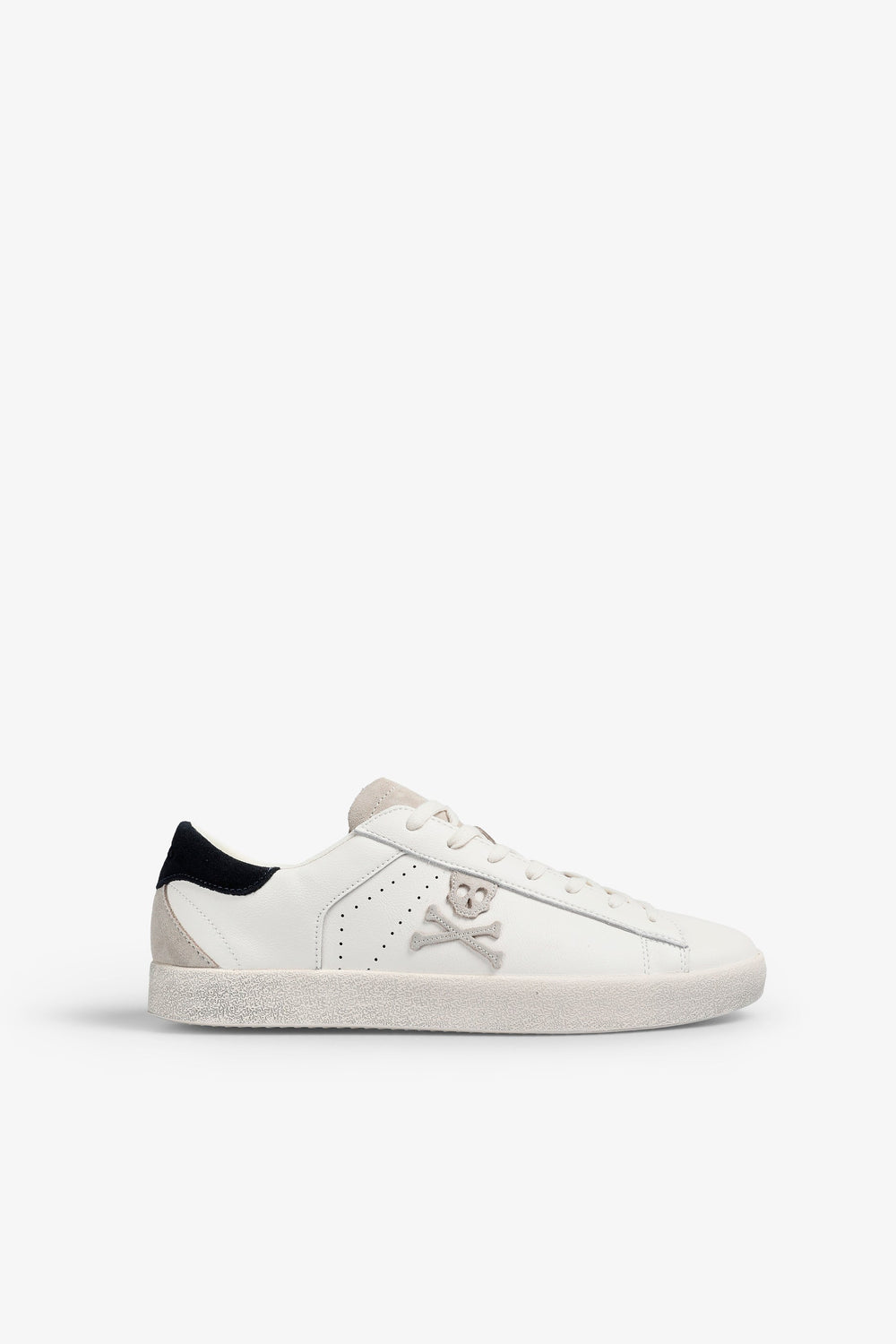 Sneakers con calavera lateral a contraste confeccionadas en piel. Cierre con cordones a tono. Suela de caucho. Detalle a contraste en talón y detalle de logo a tono.