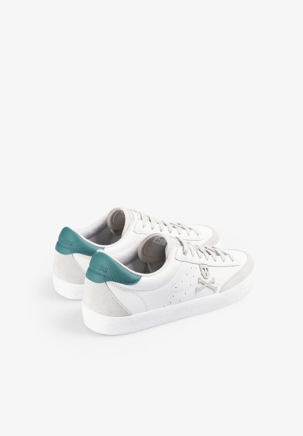 Sneakers con calavera lateral a contraste confeccionadas en piel. Cierre con cordones a contraste. Detalle de logo a tono en la parte lateral de la suela. Suela de caucho. Detalle a contraste en talón y detalle de logo a tono. Etiqueta con logo en lengüeta.