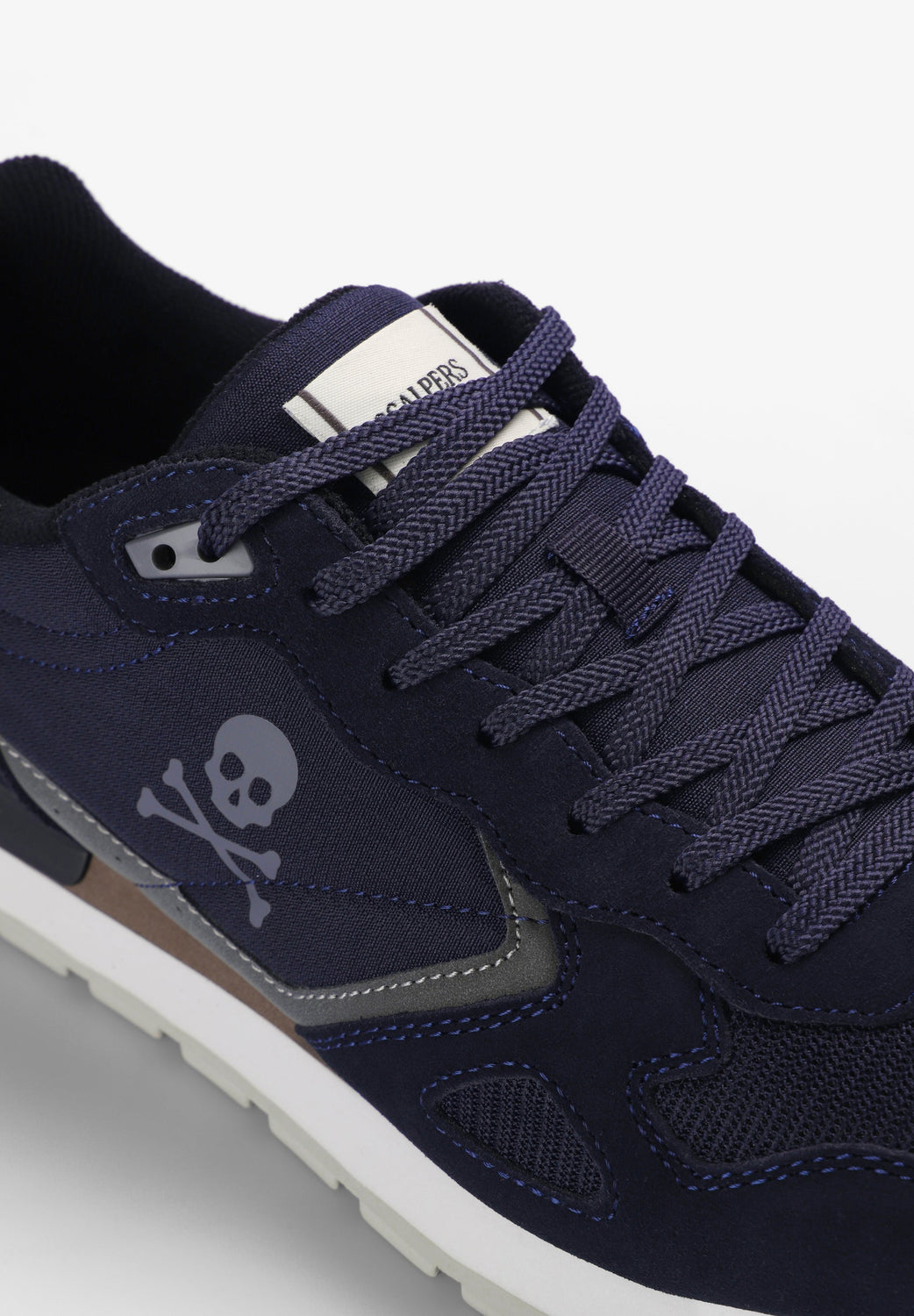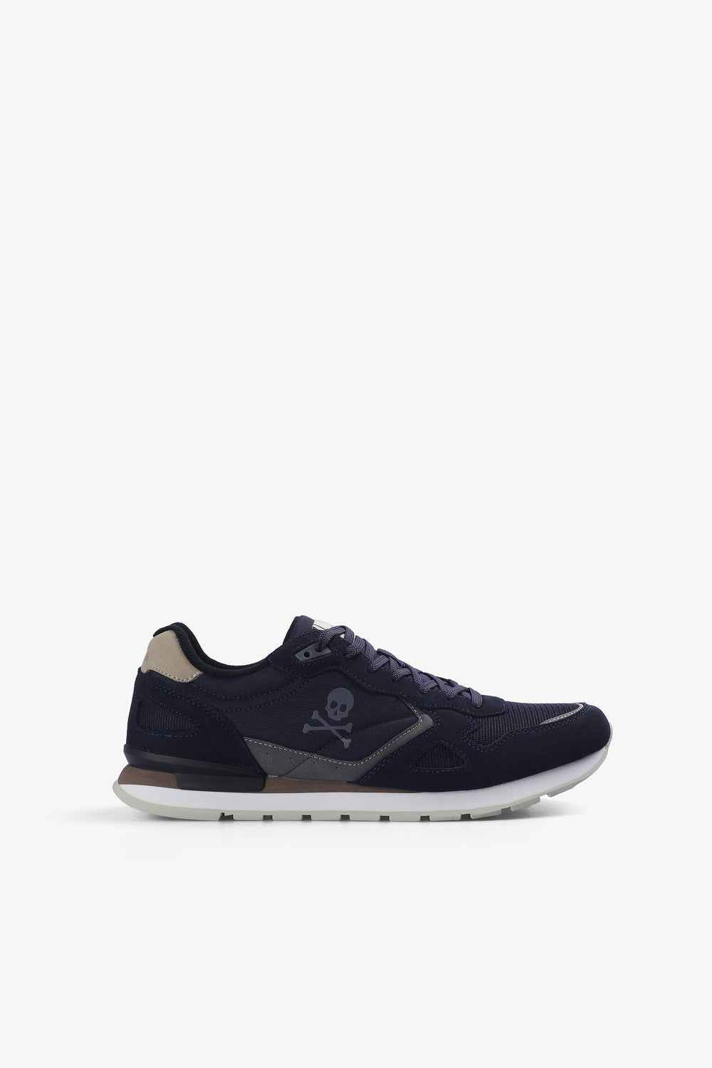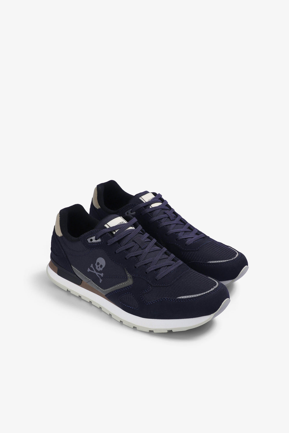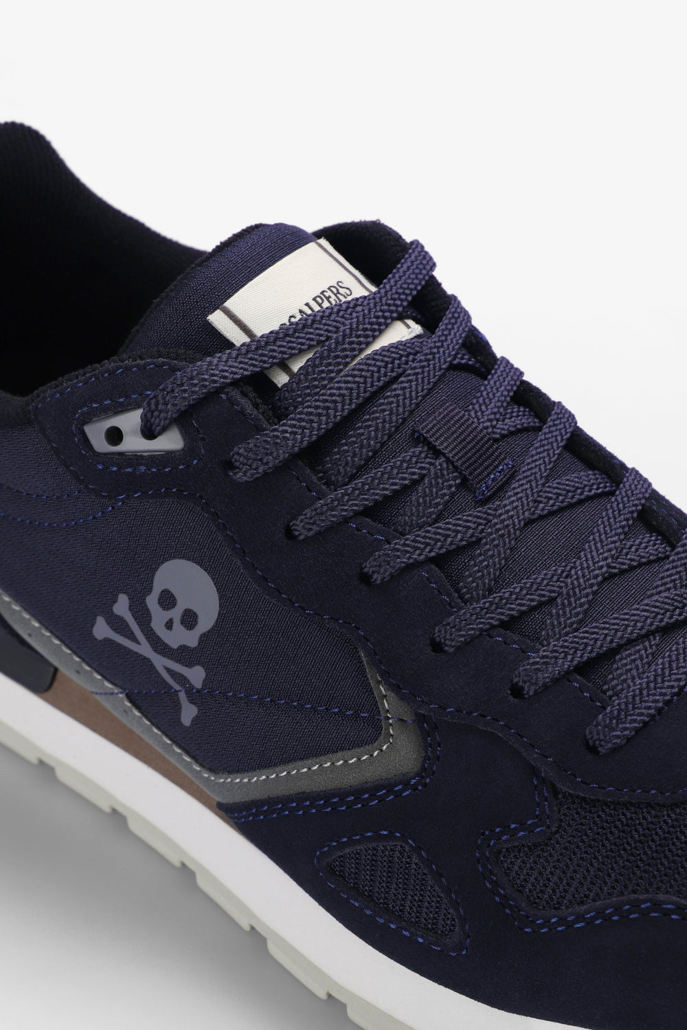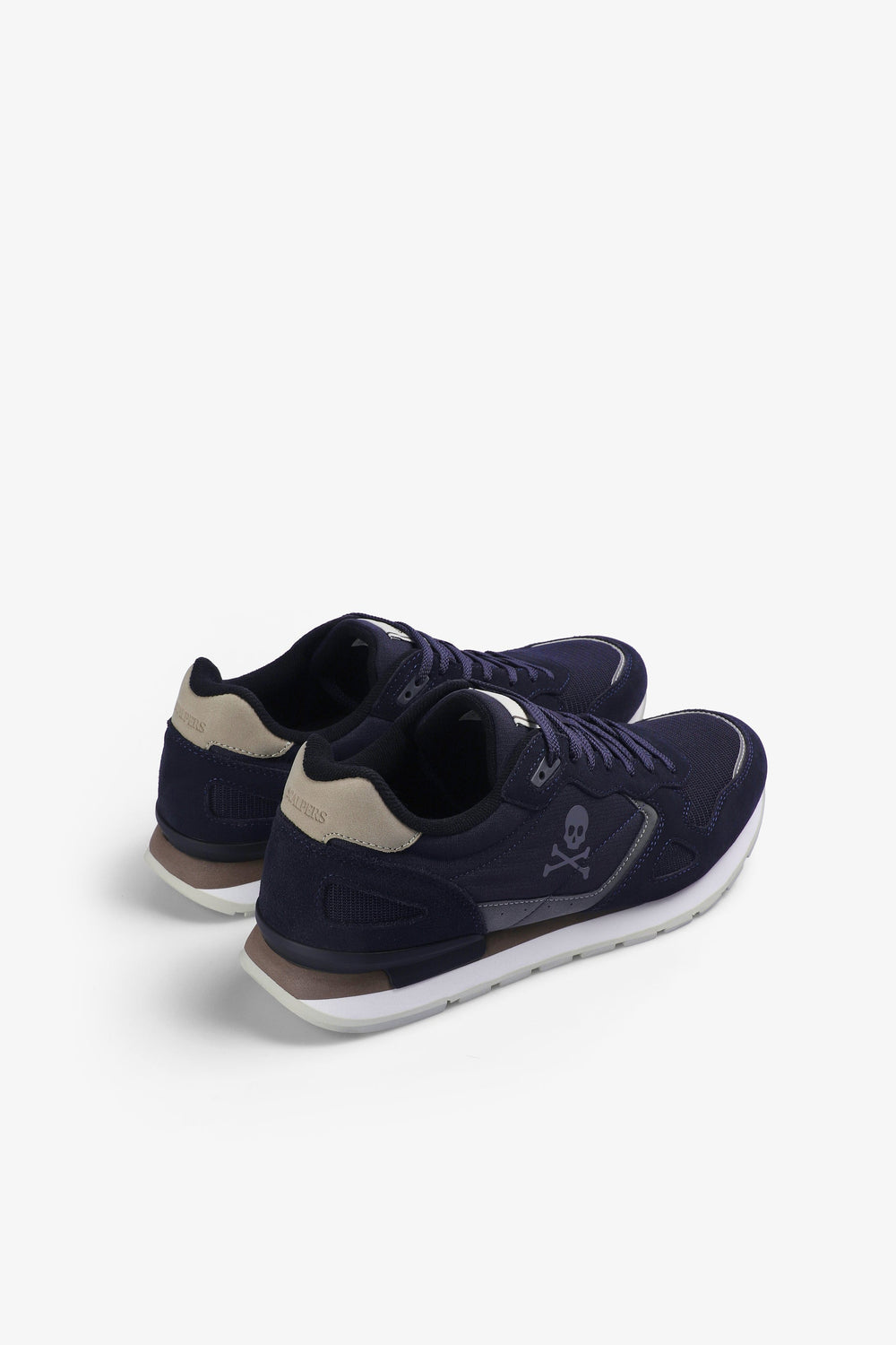 Sneakers confeccionadas en piel. Cierre con cordones a tono. Suela de goma y eva con estabilizador a contraste. Calavera printeada en goma de alta densidad en el lateral. Logo bordado en talón.