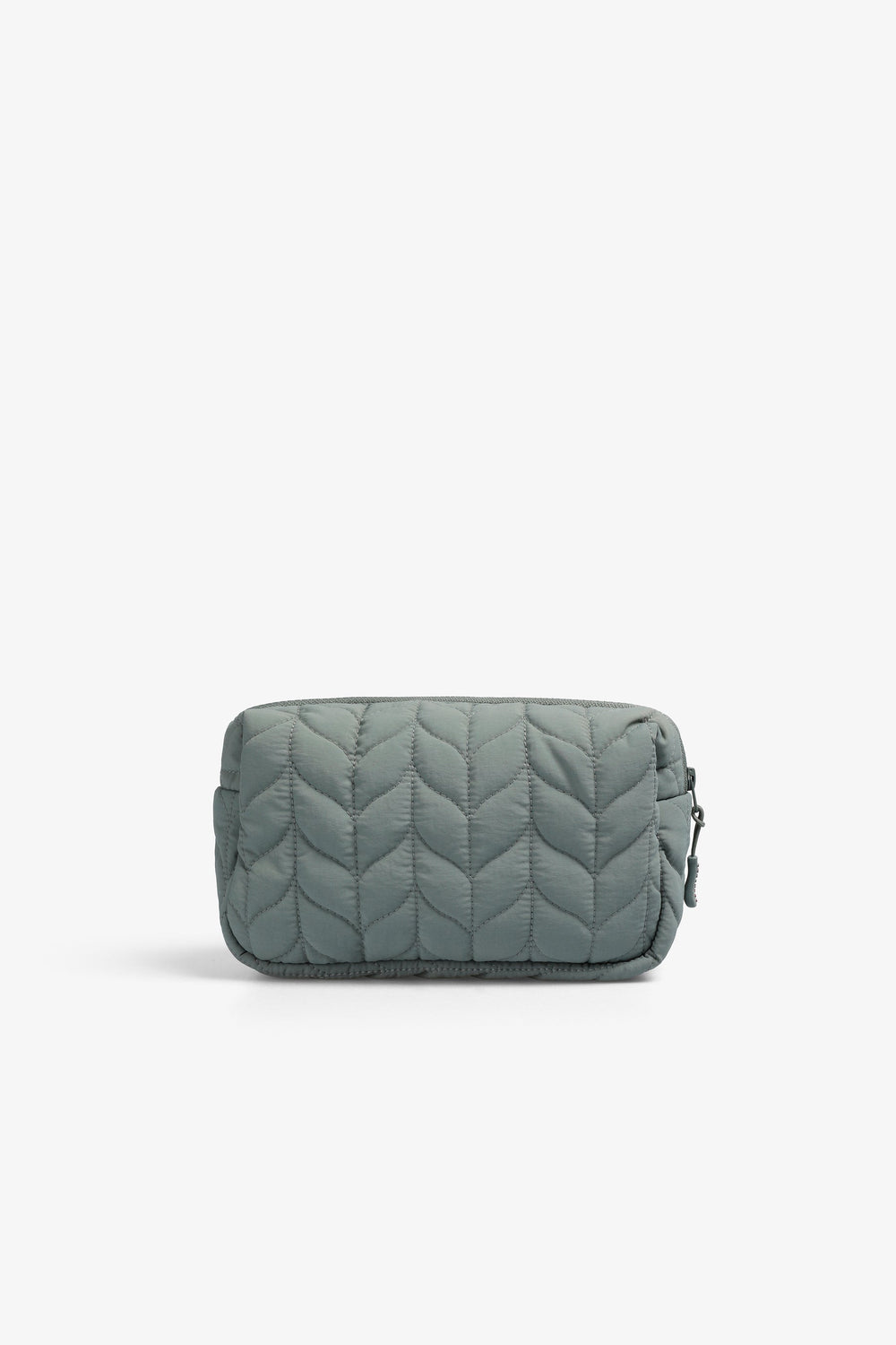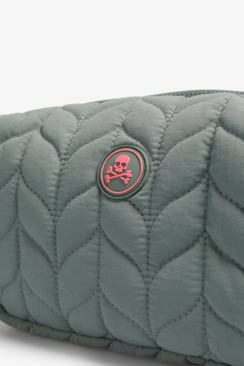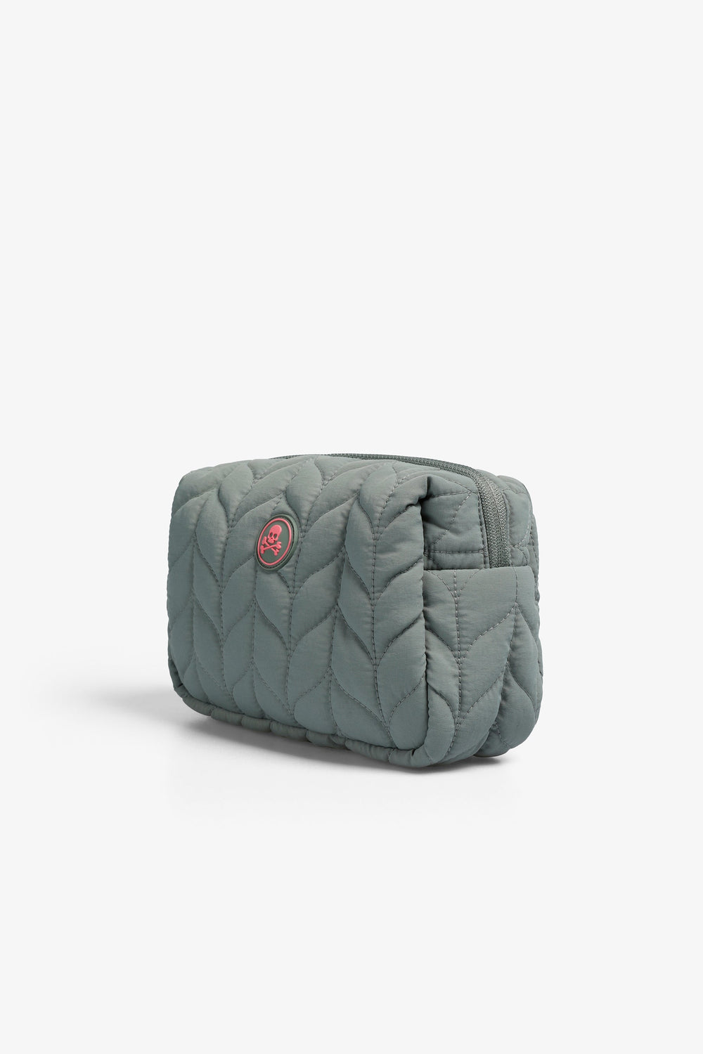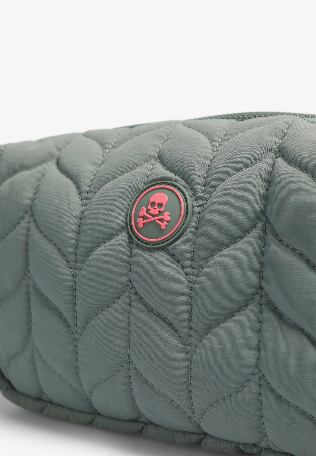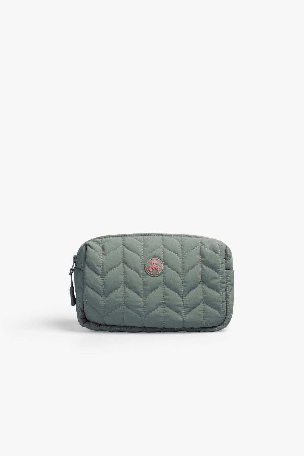 Neceser sintético. Detalle de parche frontal engomado con calavera. Cierre con cremallera.