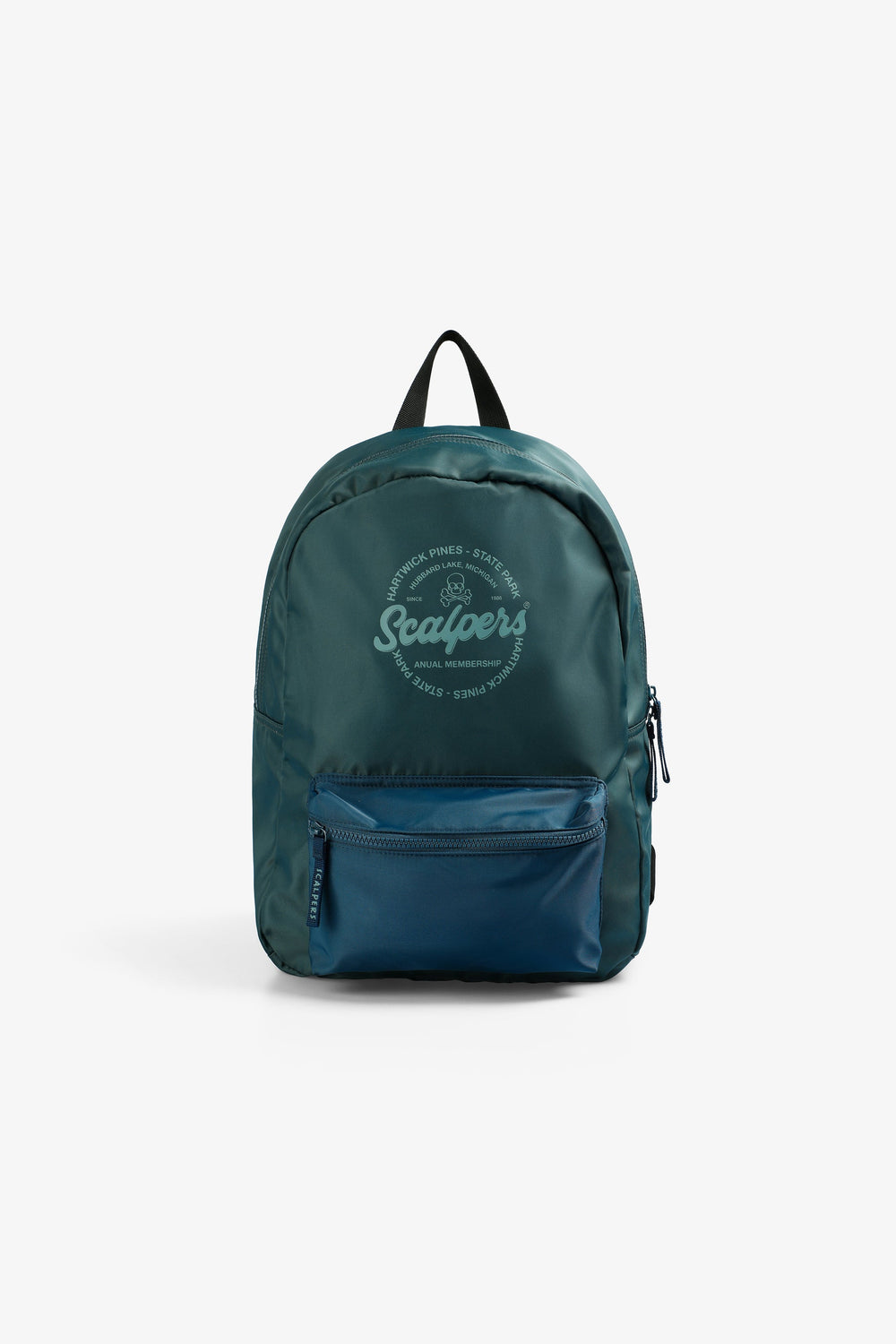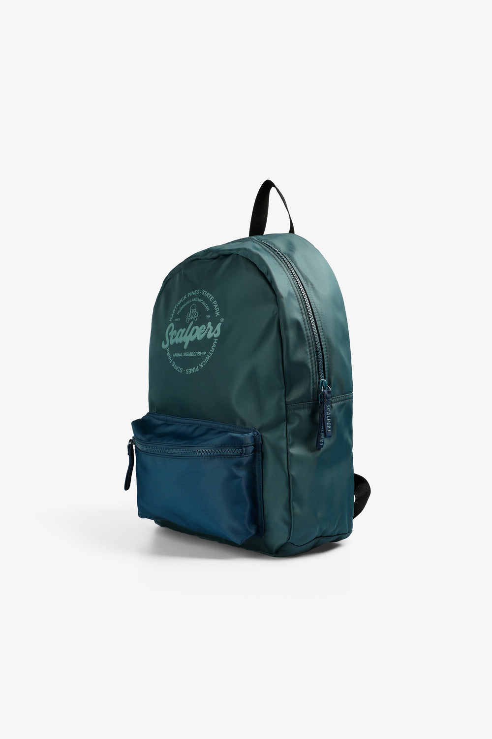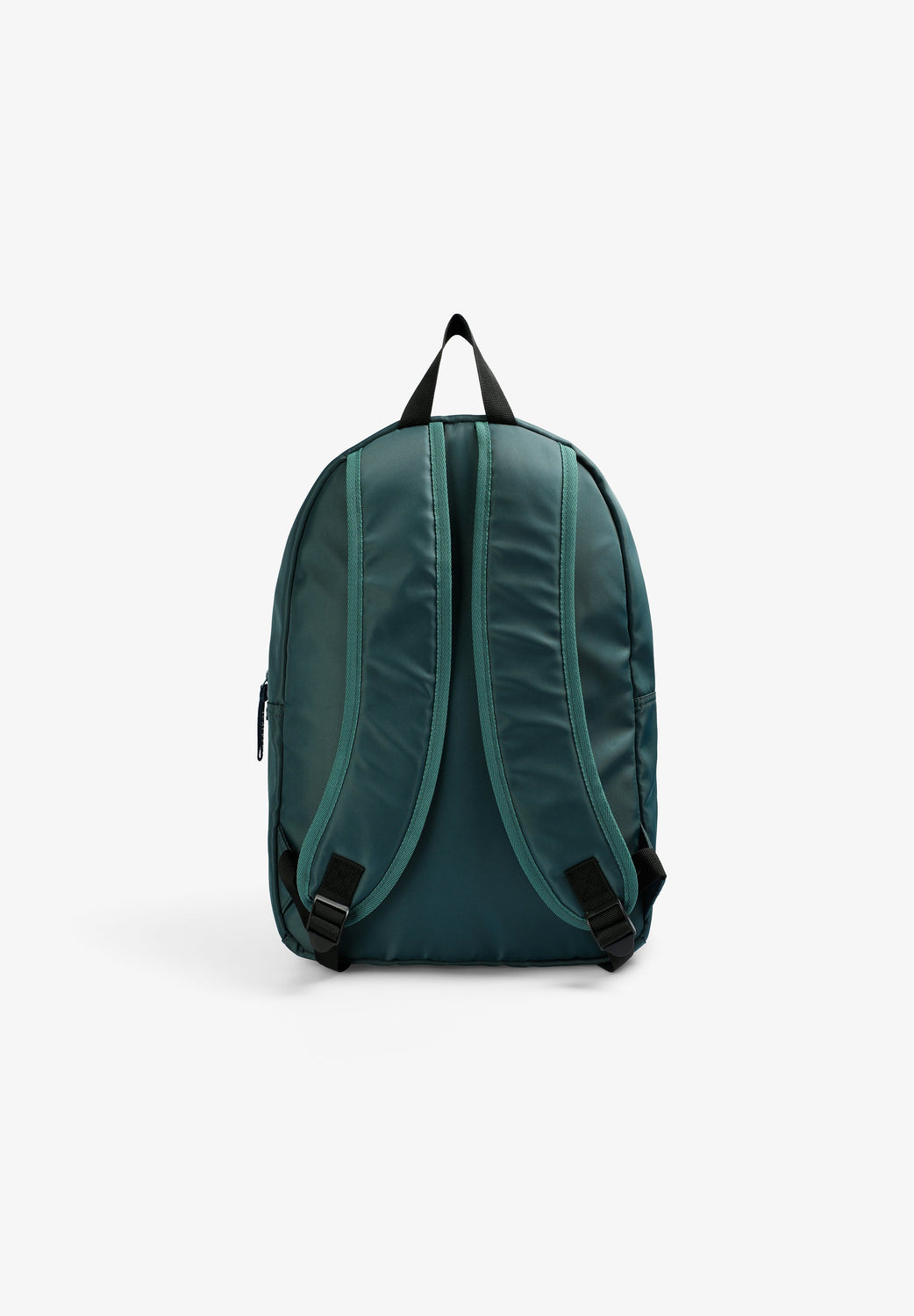 Mochila con print logo frontal. Confeccionada 100% en poliéster. Cierre con cremallera. Asas traseras. Asa superior. Bolsillo delantero con cremallera. Alto: 41cm / Ancho: 31cm / Fondo: 14cm