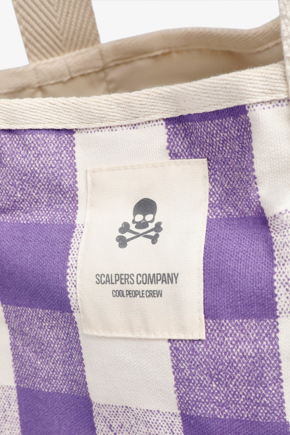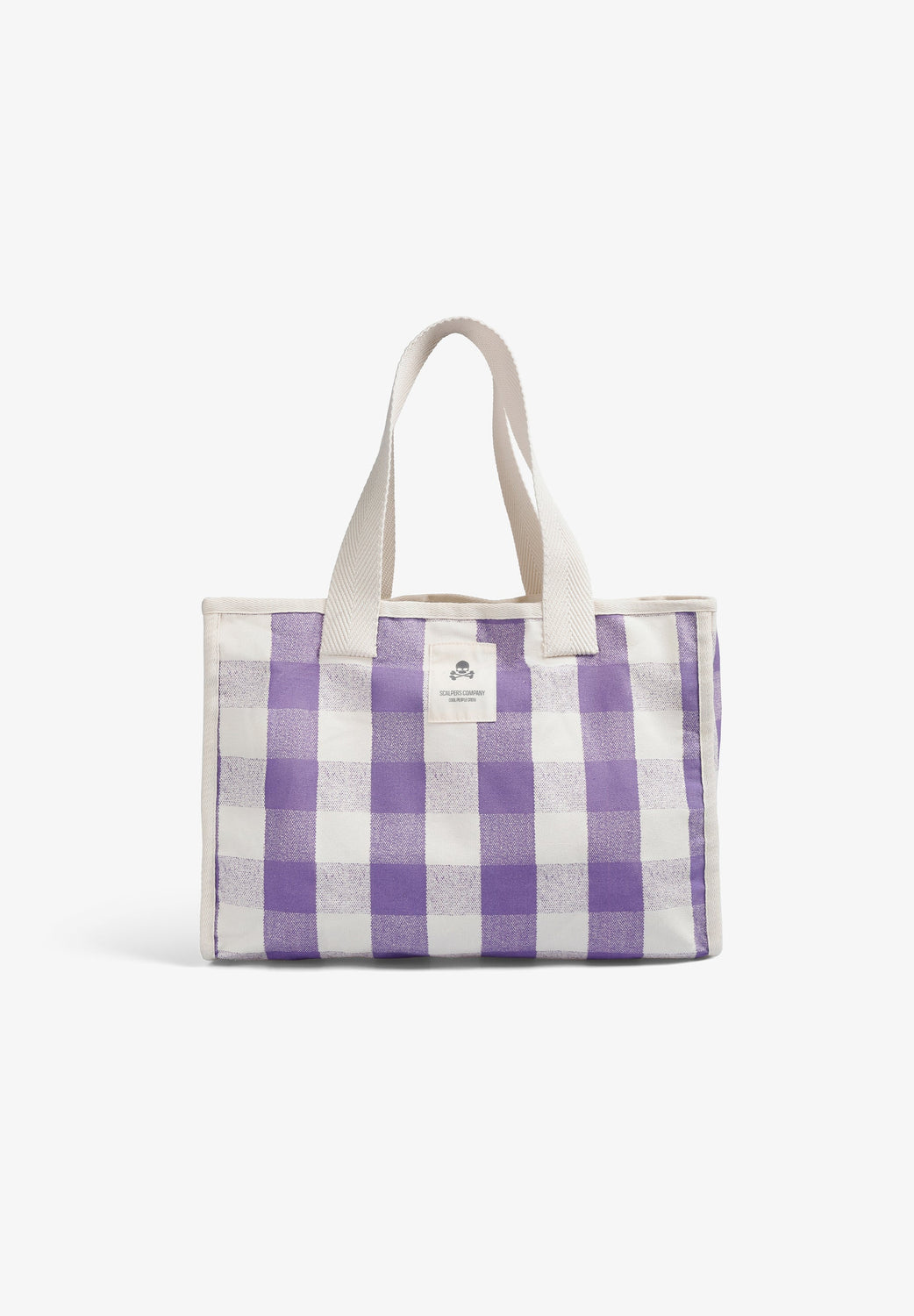 Bolsa shopper confeccionada 100% en algodón. Doble asa. Etiqueta frontal con logo y calavera. Estampado de cuadros