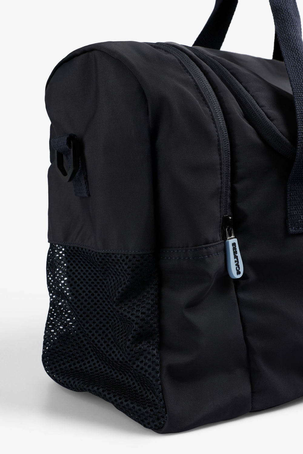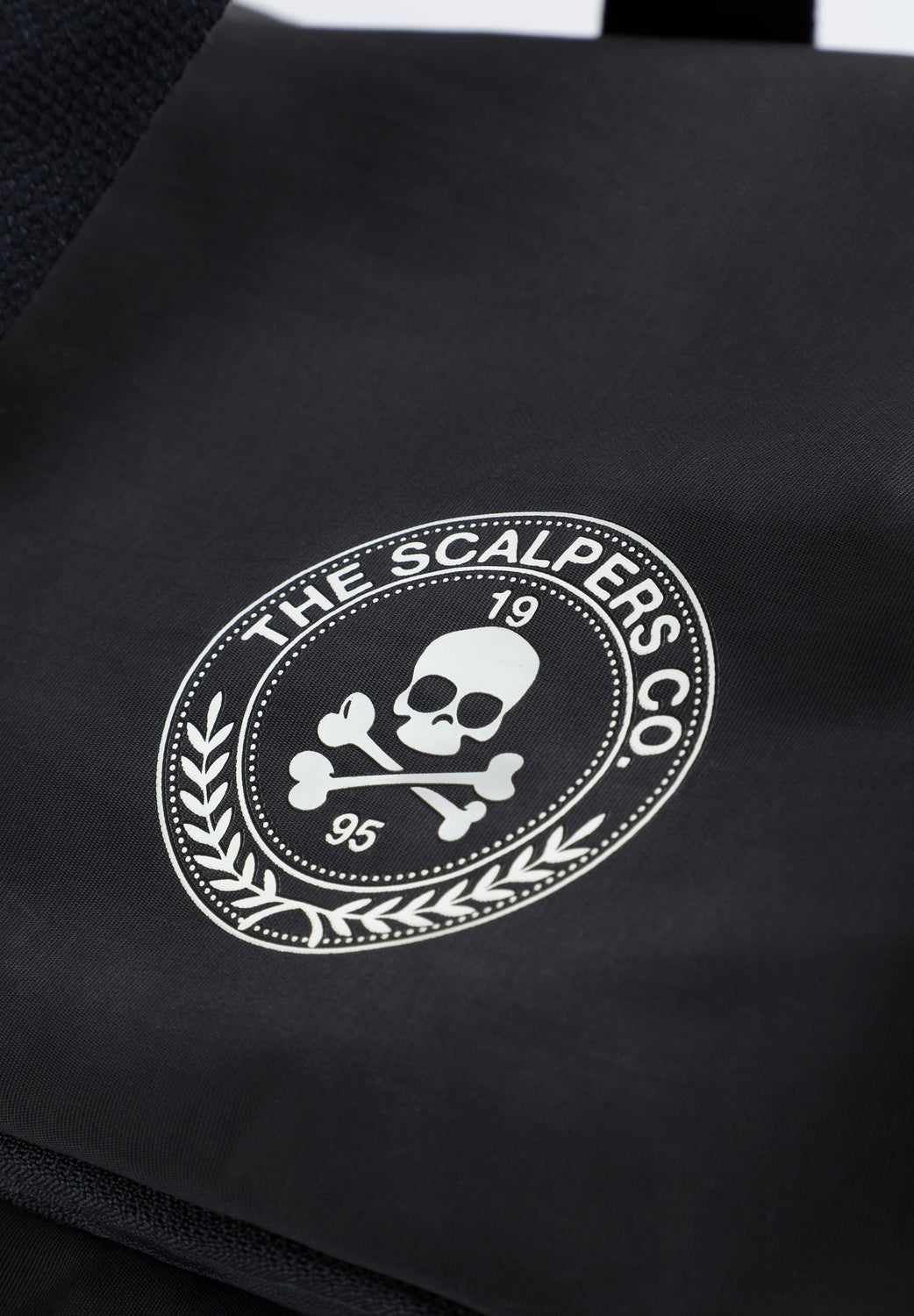 Bolsa confeccionada en tejido técnico. Compartimento principal con cierre por cremallera. Un bolsillo lateral con cremallera. Asa corta principal de hombro y asa larga desmontable. Print frontal con logo y calavera. Detalle de logo en cremallera.