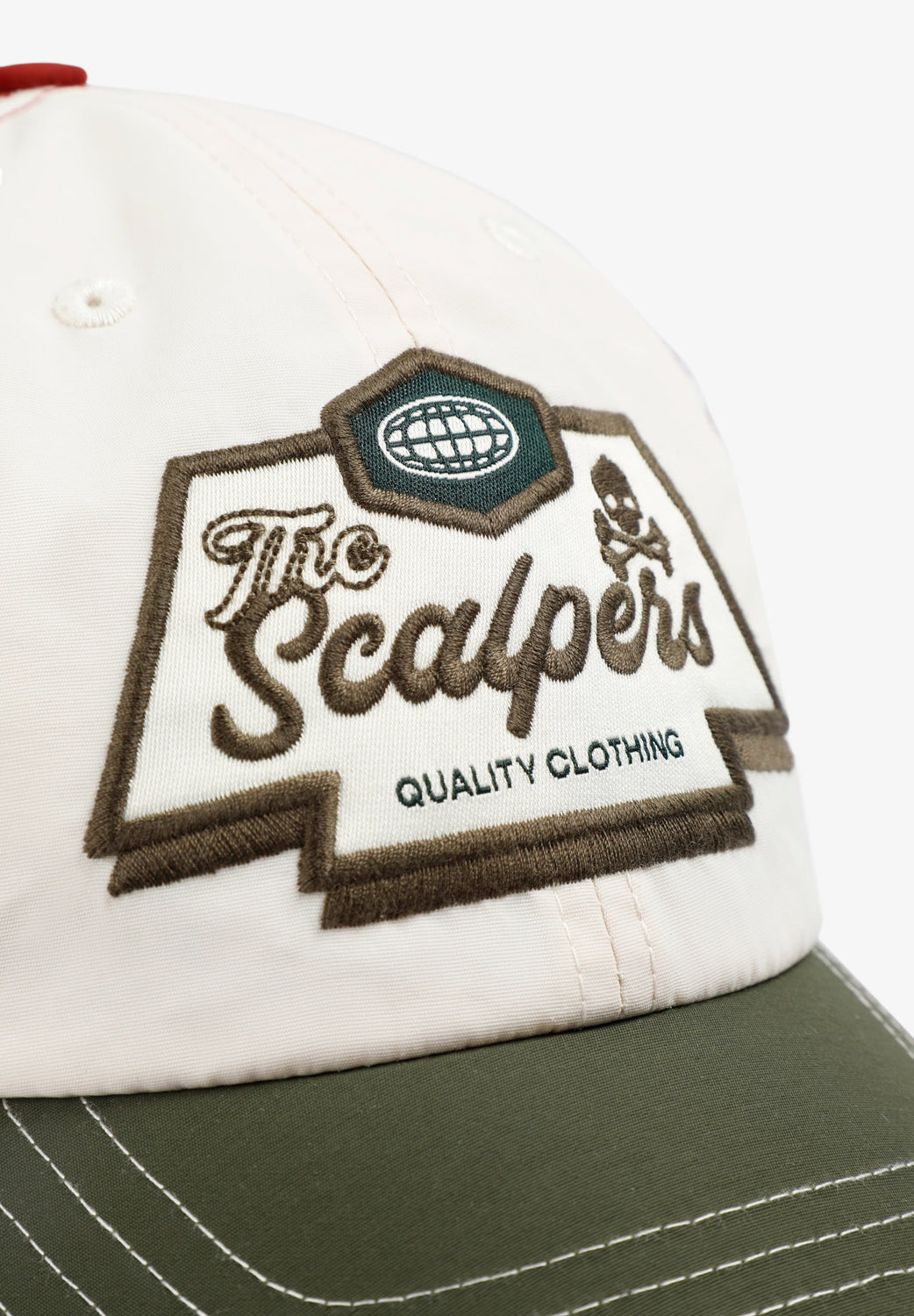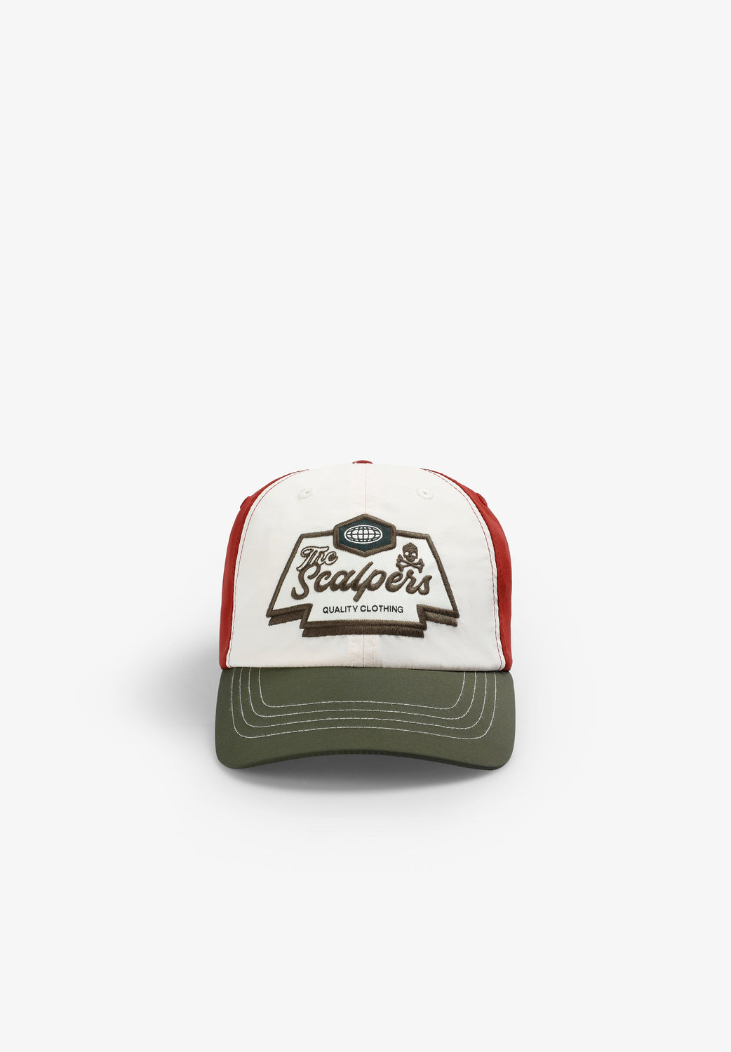 Gorra tricolor confeccionada en nylon. Cierre ajustable trasero y bordado delantero con logo y calavera a contraste. Detalle etiqueta con logo parte trasera.