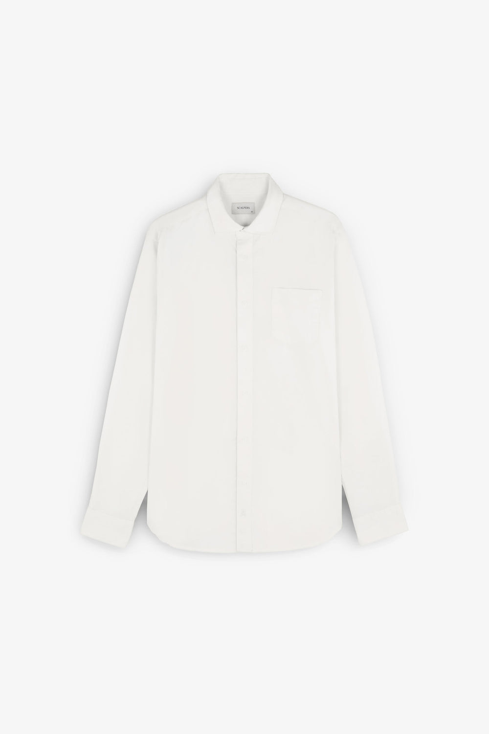 Camisa con calavera bordada a tono en la parte frontal. Corte Regular fit. Cuello con botones. Manga larga terminada en puño con botones. Cierre frontal con botones. Bolsillo tipo parche en pecho.