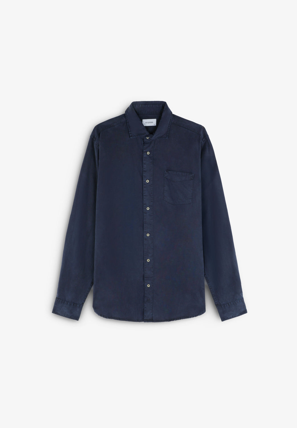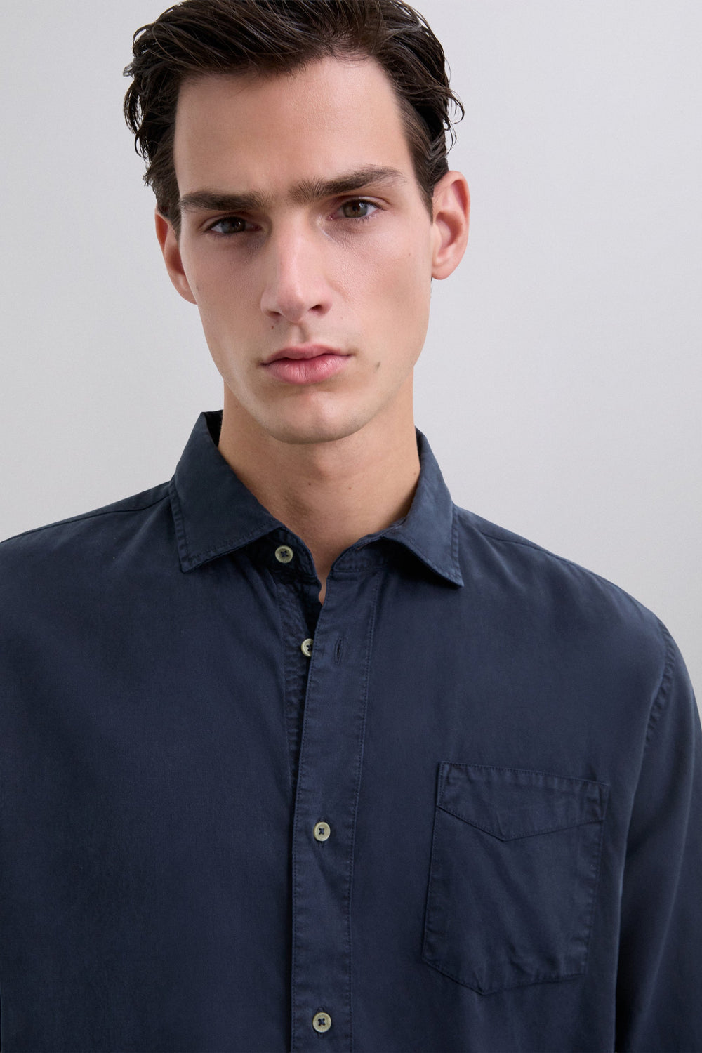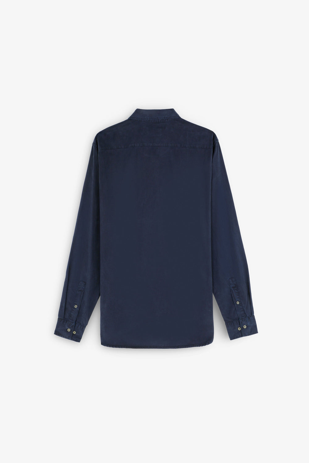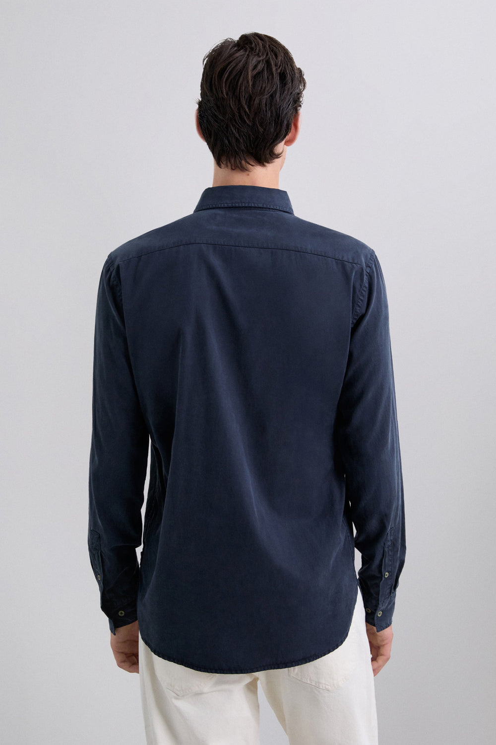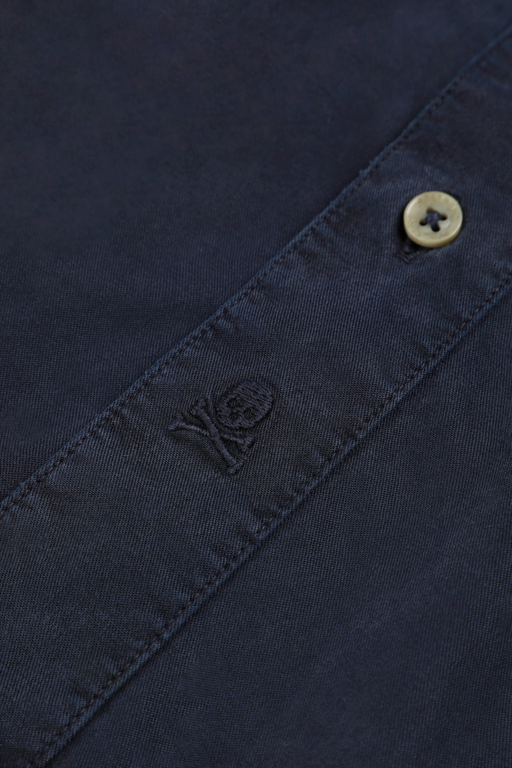Camisa con calavera bordada a tono en la parte frontal. Corte Regular fit. Cuello con botones. Manga larga terminada en puño con botones. Cierre frontal con botones. Bolsillo tipo parche en pecho.