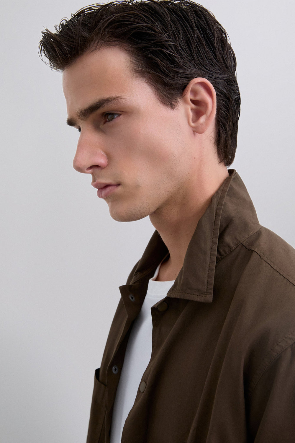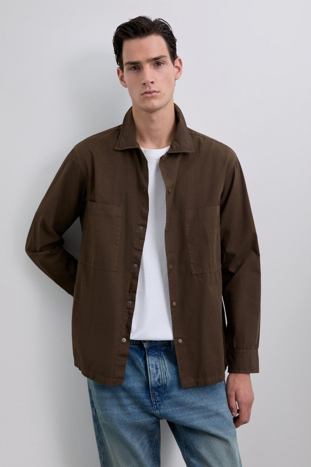 Sobrecamisa confeccionada en 100% algodón BCI. Dos bolsillos en pecho. Regular fit. Cuello clásico. Cierre frontal mediante abotonadura. Mangas largas con puños de botón.