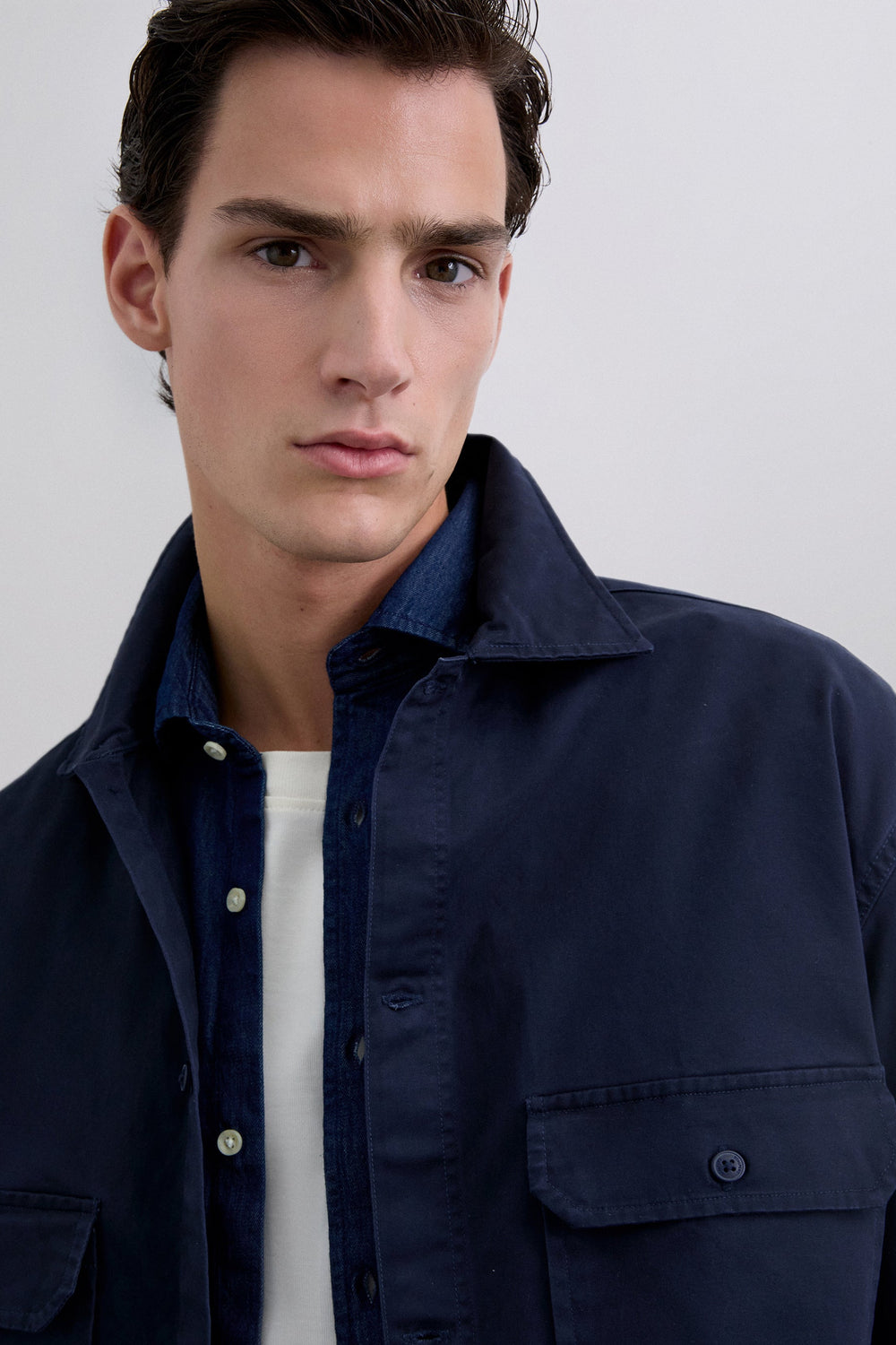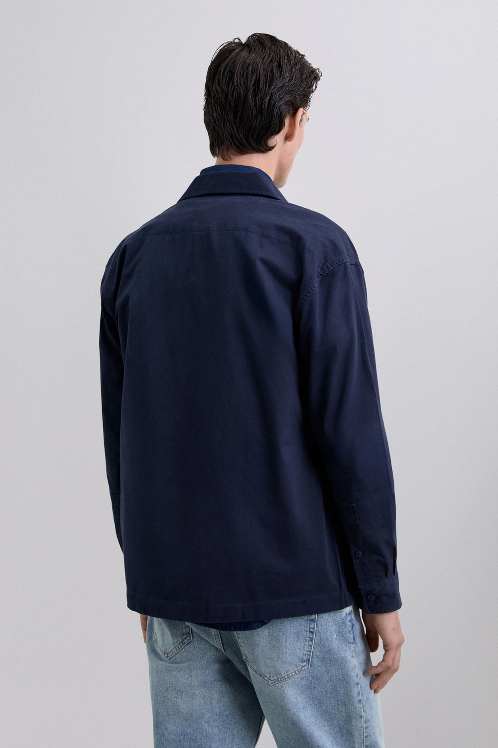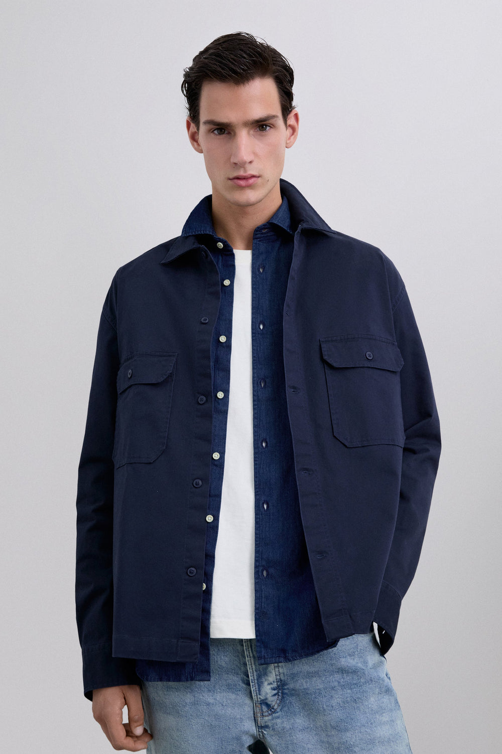 Sobrecamisa confeccionada en algodón. Corte regular con cuello clásico y cierre de botones. Manga larga con puños abotonados. Bolsillos con botones en el pecho.