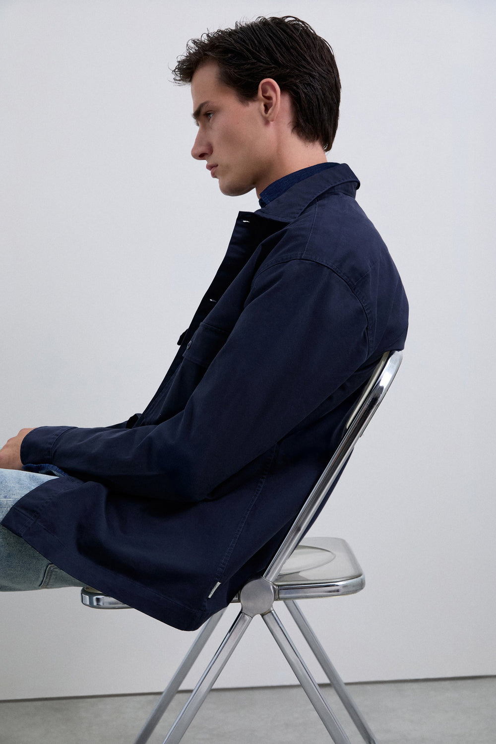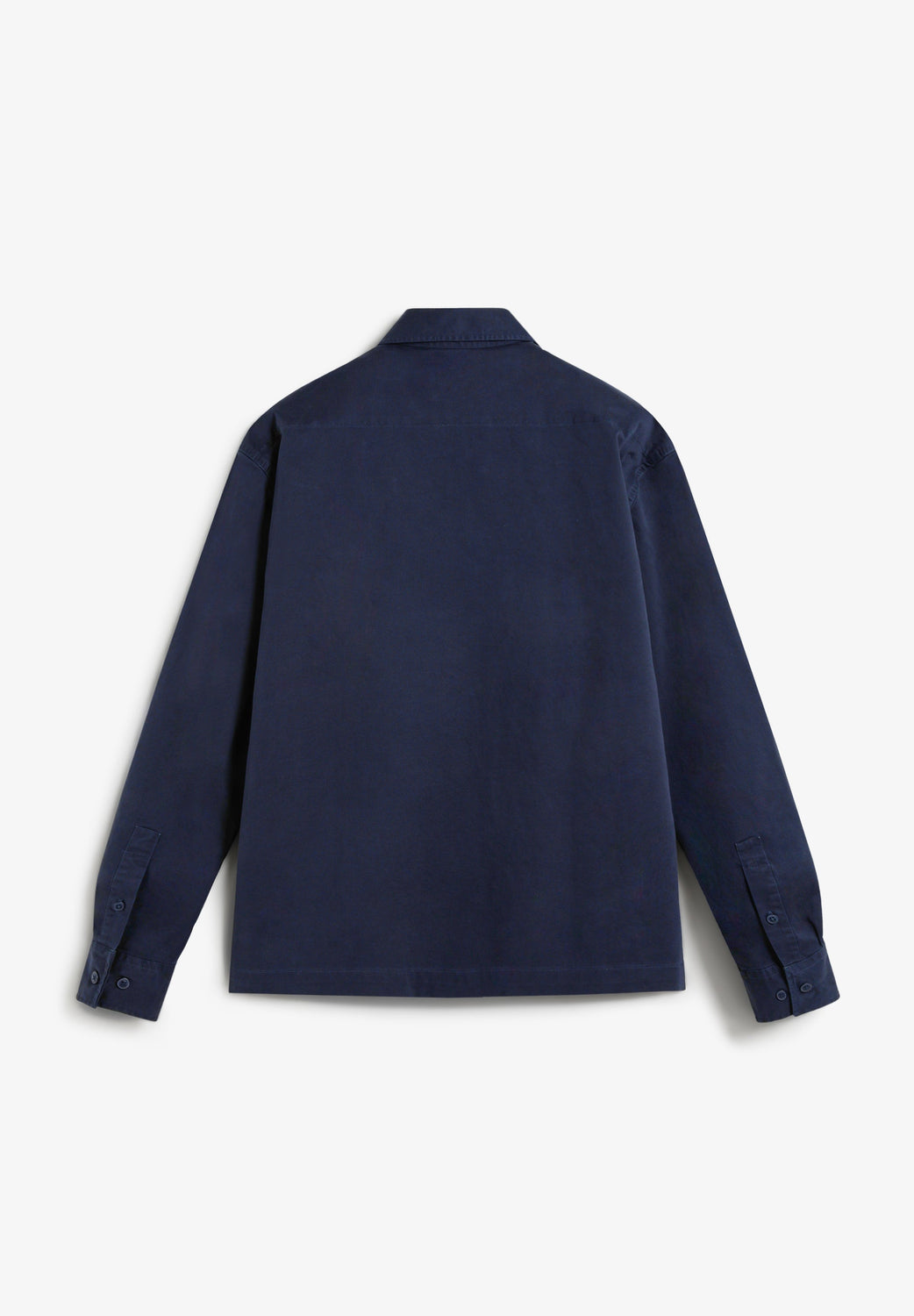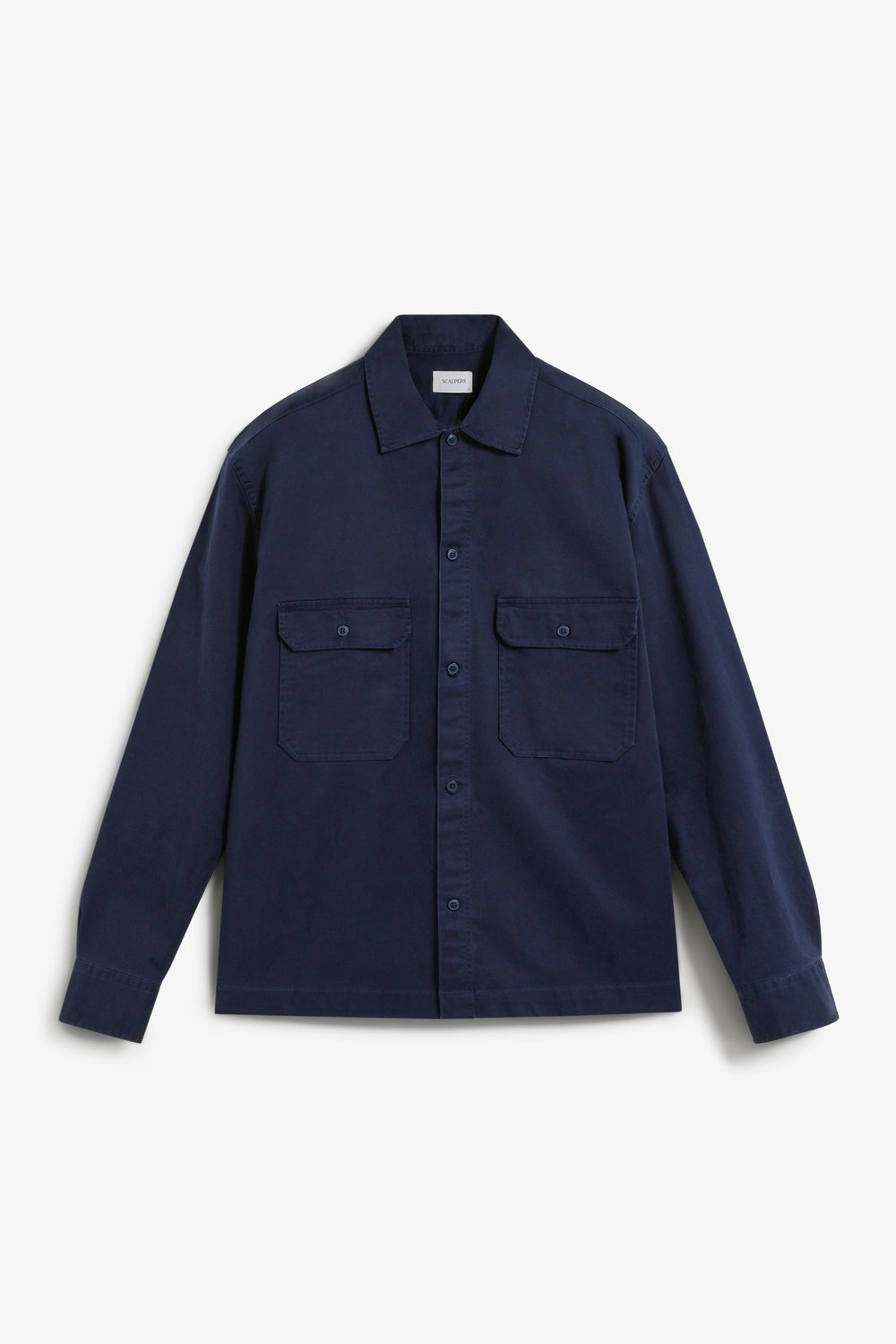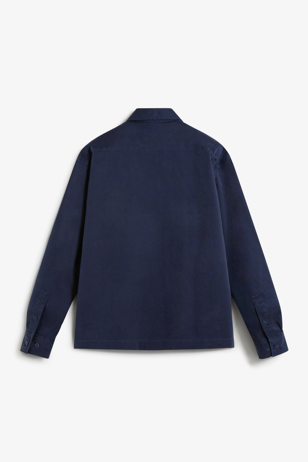 Sobrecamisa confeccionada en algodón. Corte regular con cuello clásico y cierre de botones. Manga larga con puños abotonados. Bolsillos con botones en el pecho.