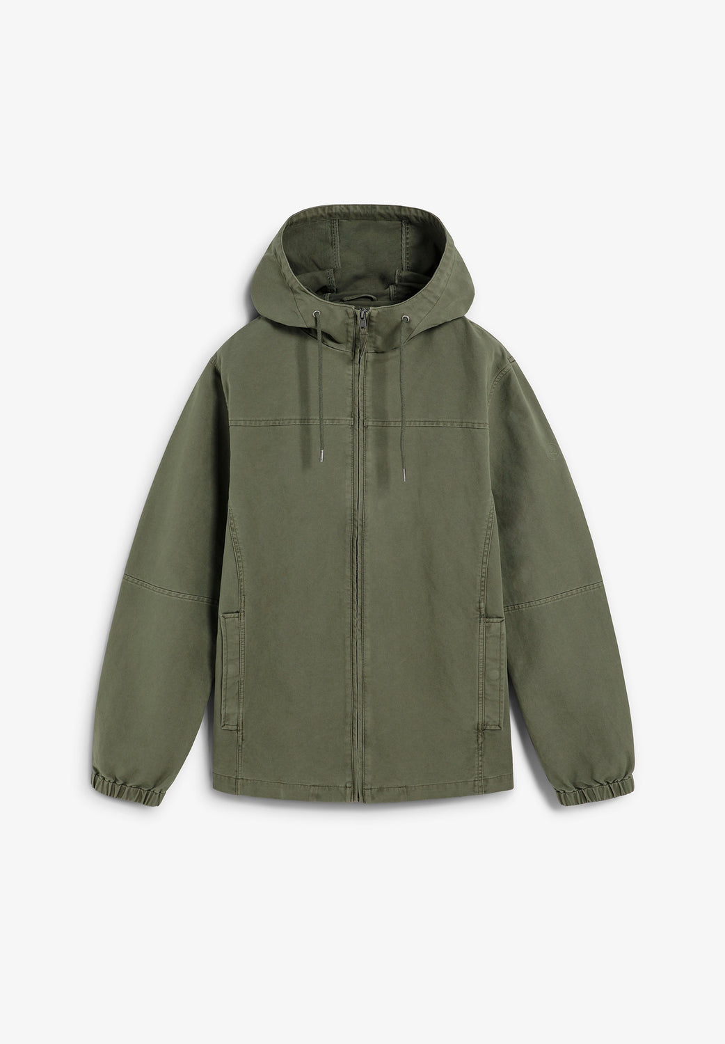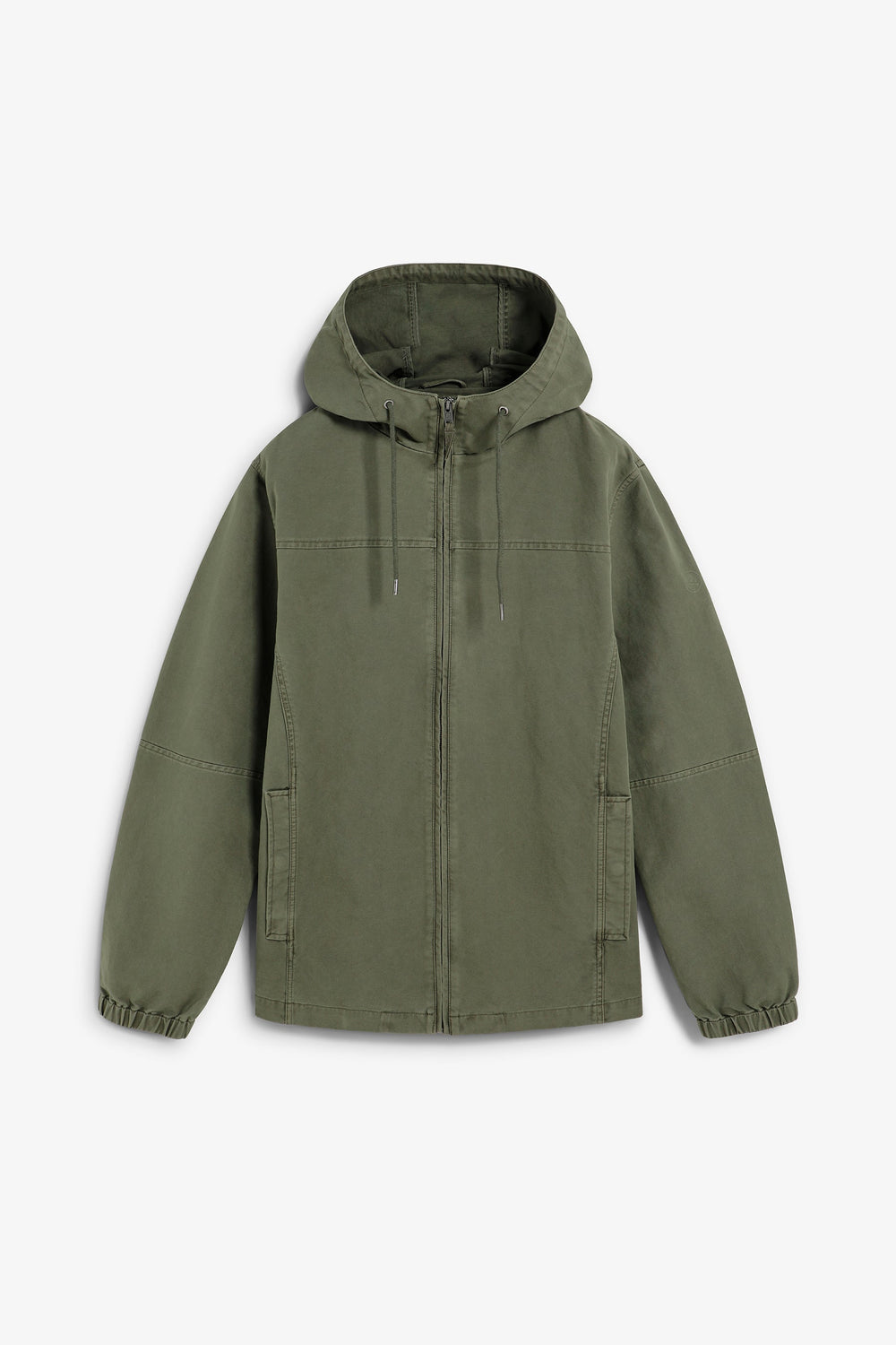 Cazadora confeccionada en 100% algodón BCI. Bolsillos vivos en lateral. Capucha con cordón ajustable. Cremallera y topes de cordón personalizados con logotipo. Detalle de logo estampado de alta densidad. Manga con puño elástico.