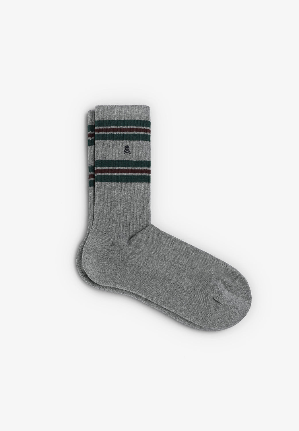 Calcetines confeccionados en mezcla de algodón orgánico. Detalle de rayas. Detalle de calavera bordada a contraste.