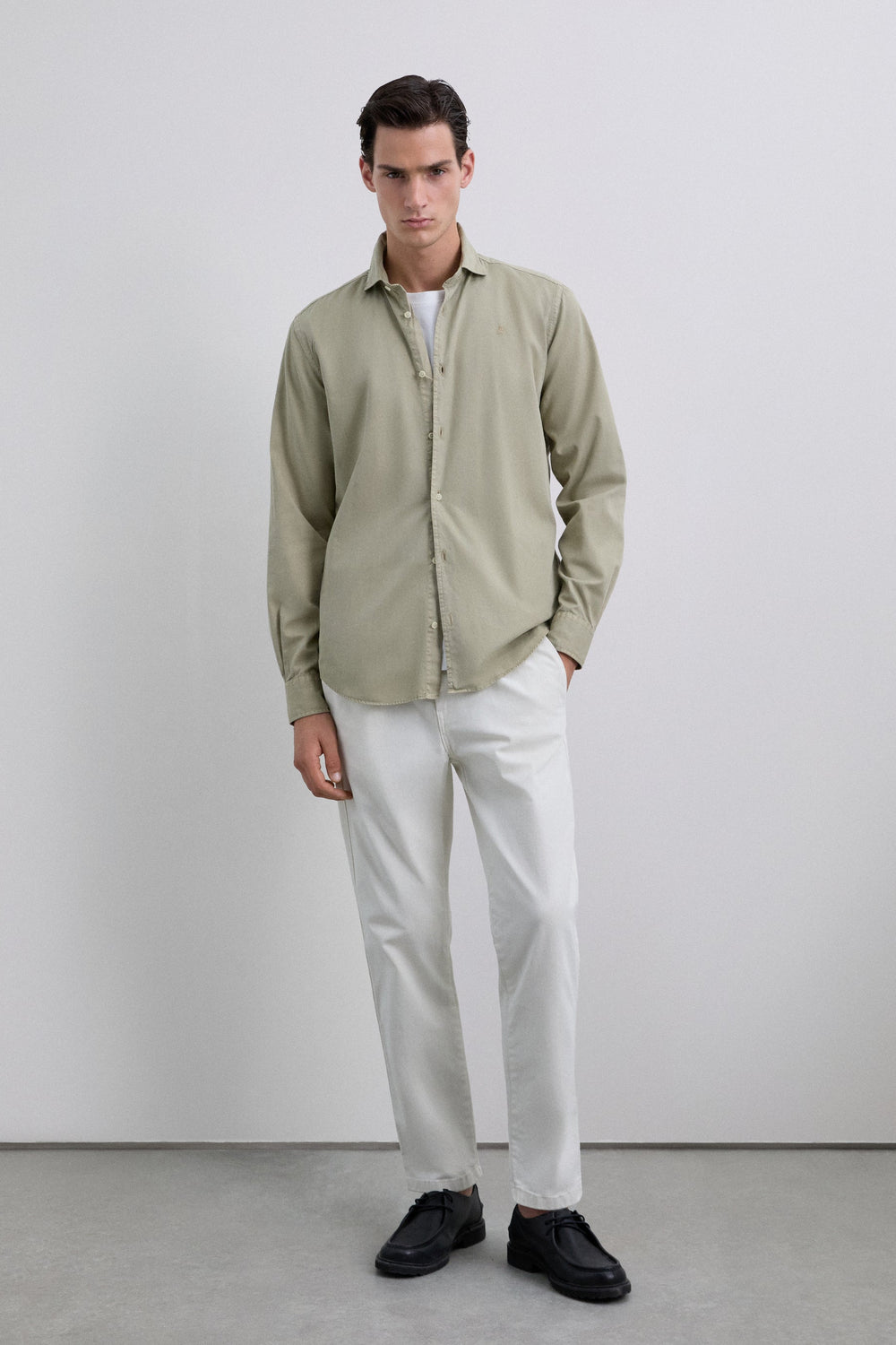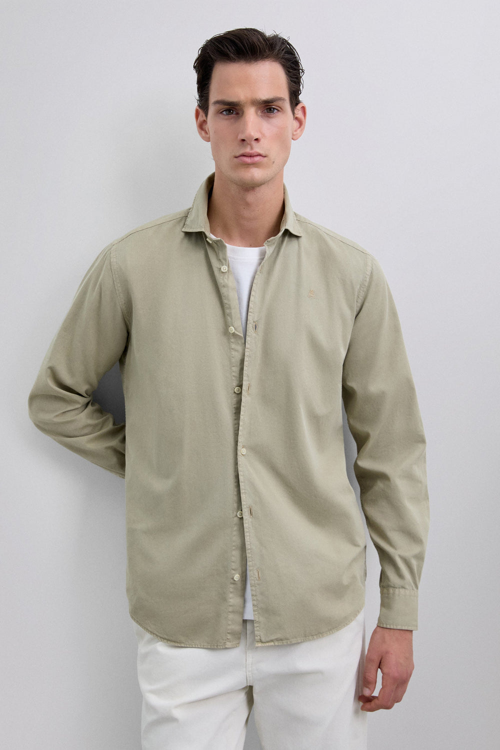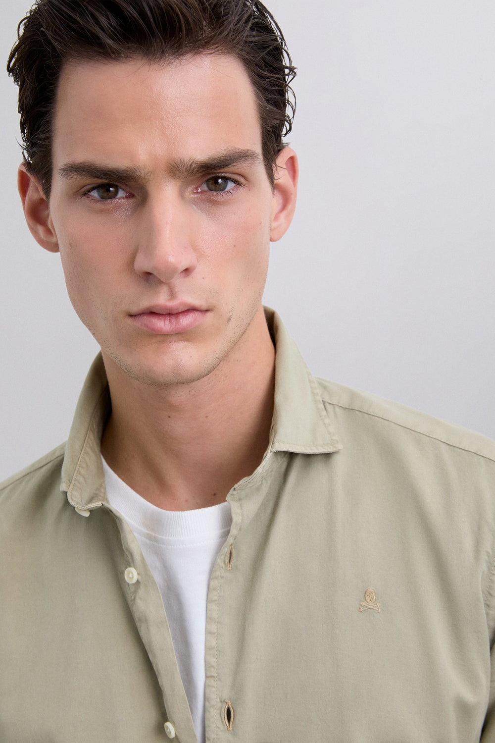 Camisa confeccionada en 100% Algodón Orgánico. Corte Regular. Cuello Italiano. Cierre mediante abotonadura en frontal. Mangas largas con puños abotonados. Bolsillo de parche en el pecho. Embozo en el puño. Detalle de calavera bordada a tono.