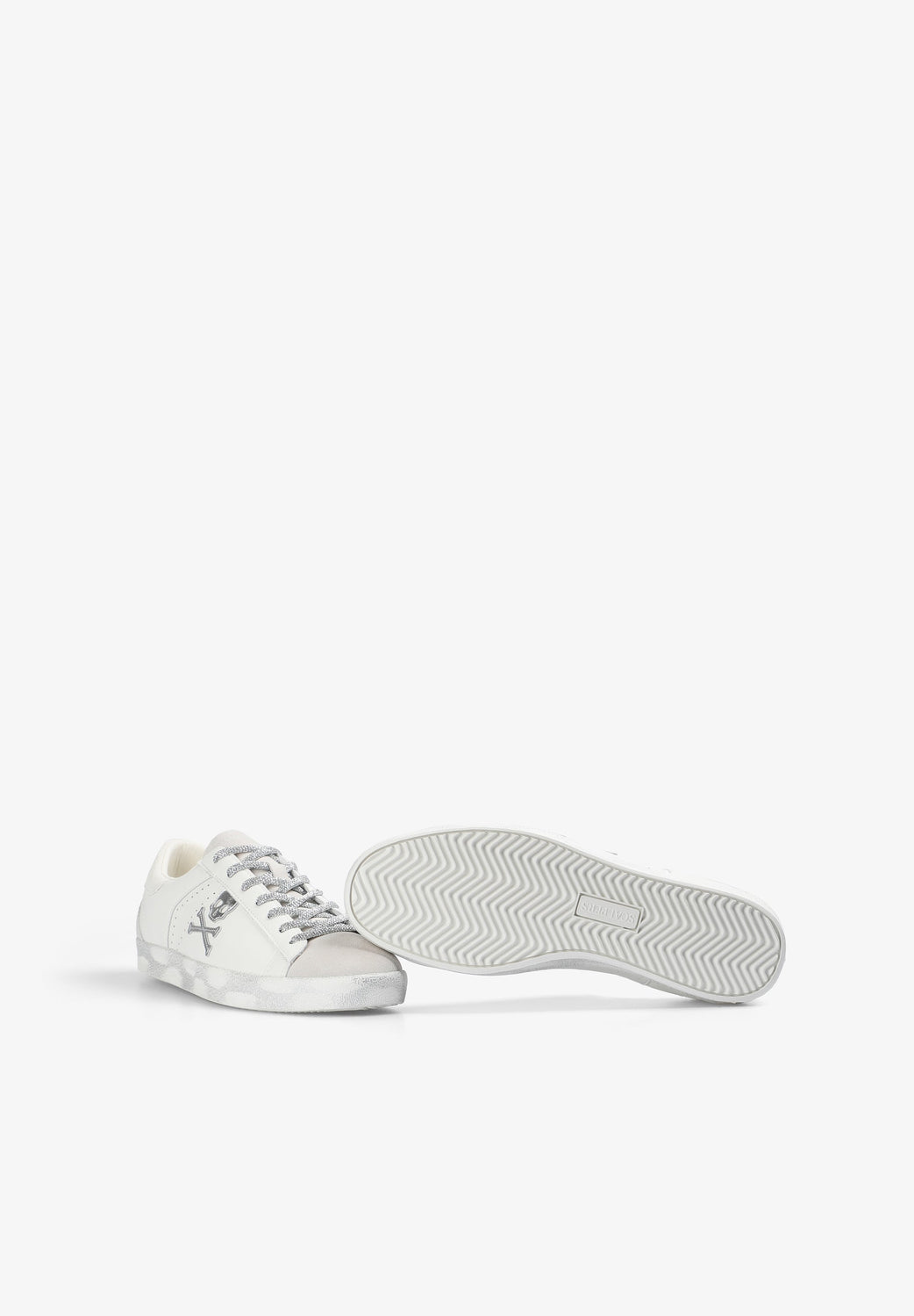 Sneakers confeccionadas en 100% piel. Calavera lateral plateada bordada a contraste. Detalle contrastantes. Suela de caucho efecto desgastada. Cierre mediante cordones a contraste.