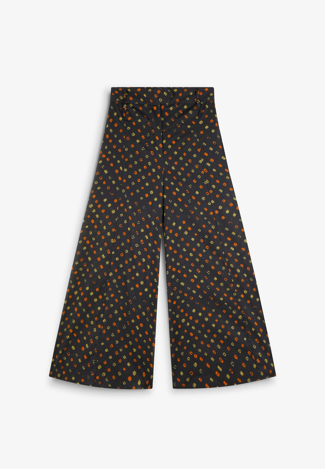 Pantalón confeccionado en 100% algodón BCI con estampado. Corte culotte con cierre mediante cremallera lateral oculta y trabillas en cintura.