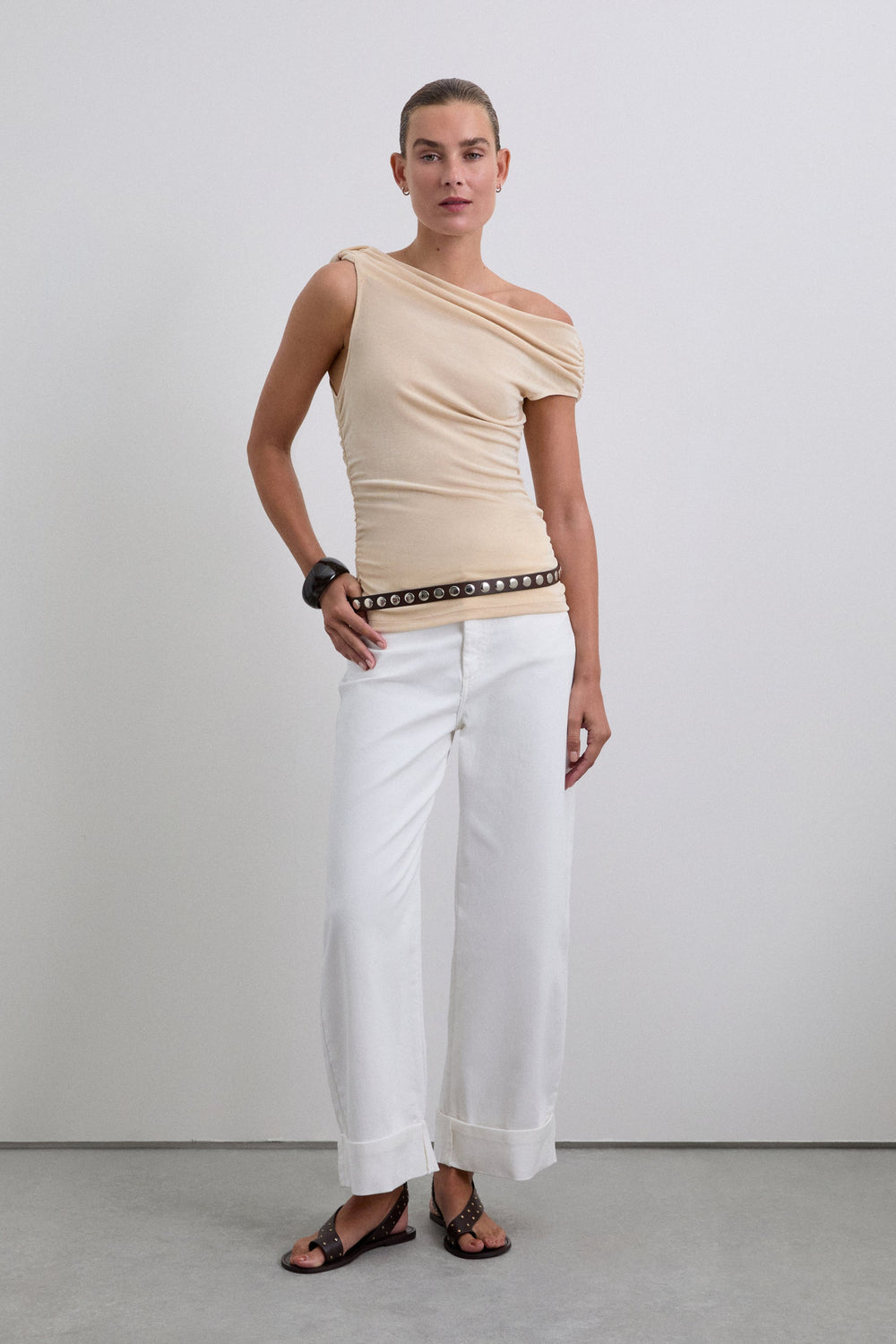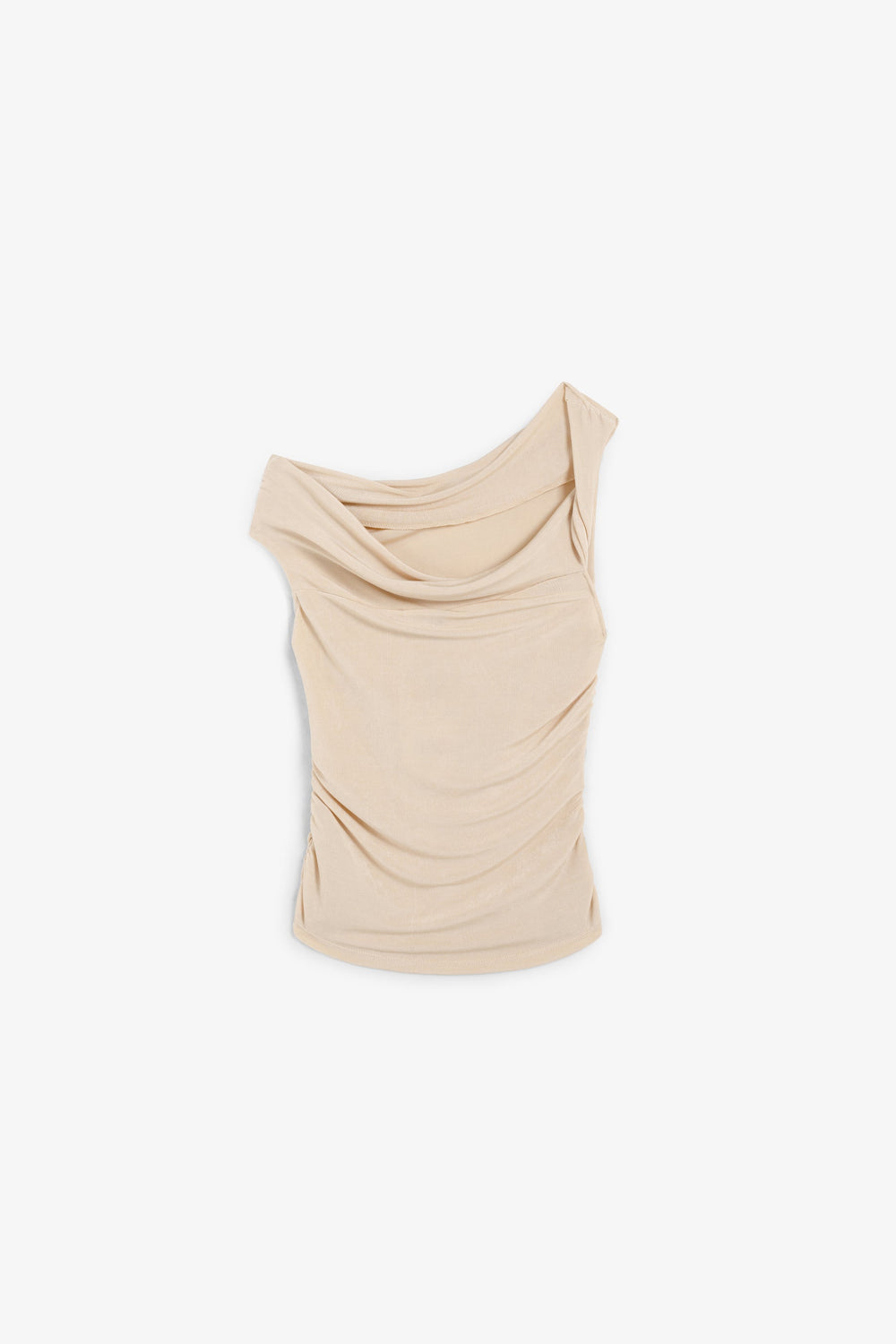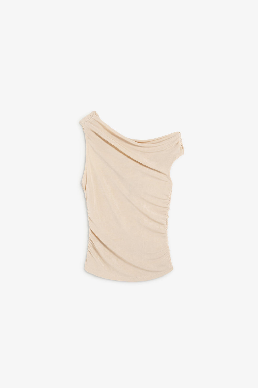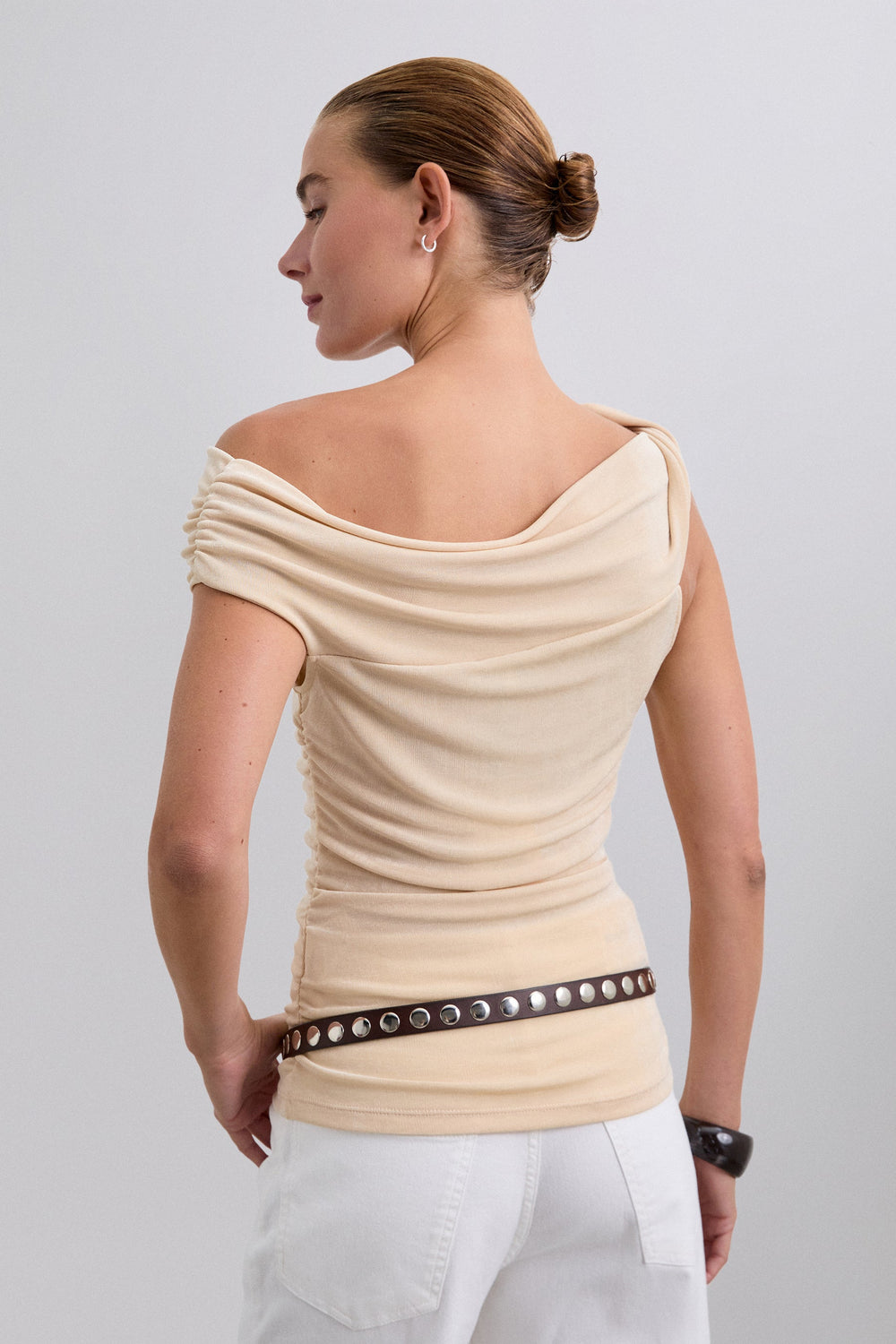 Top confeccionado en tejido ligeramente elástico. Corte slim fit, Off The Shoulder, escote asimétrico con frunces en laterales.