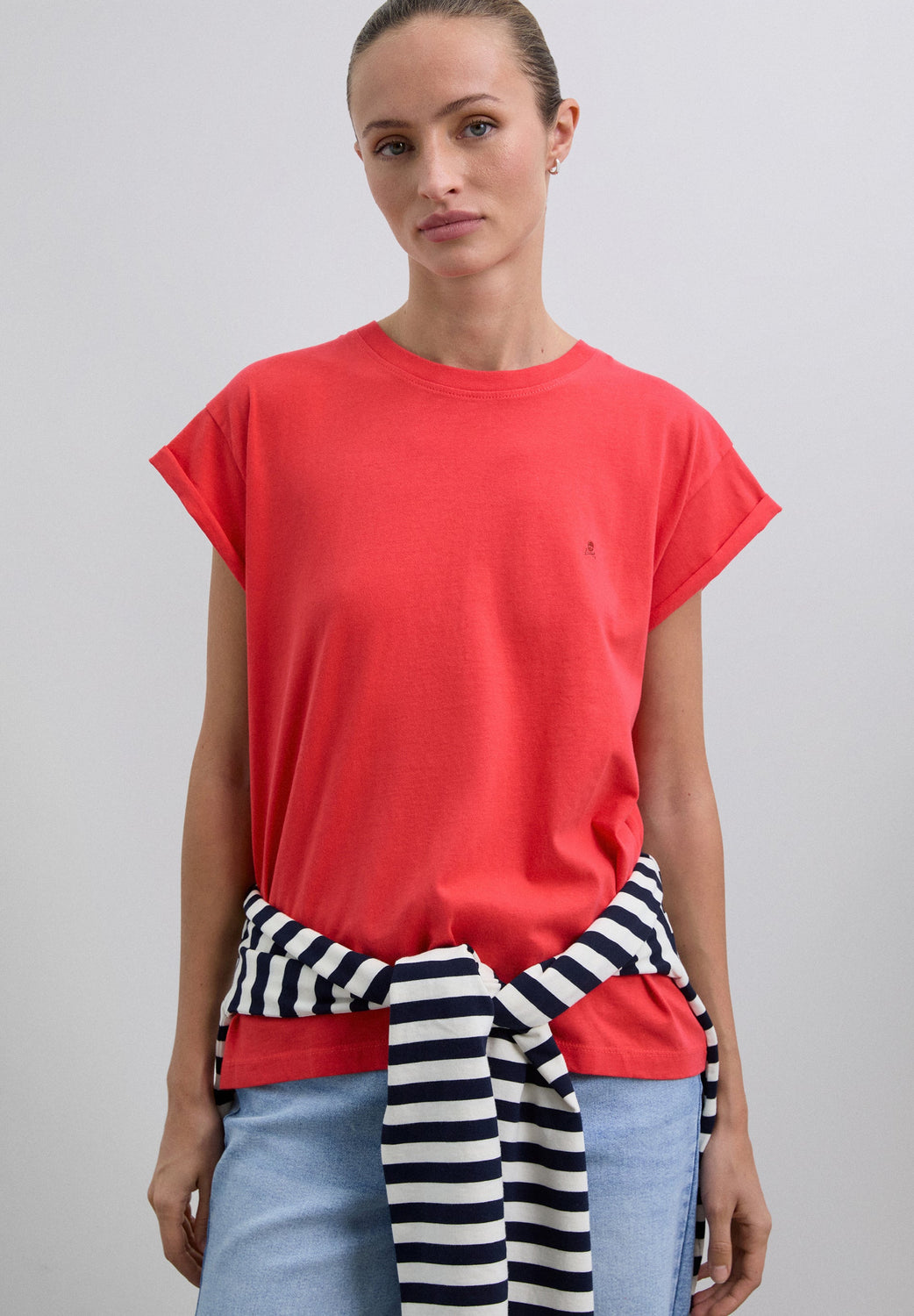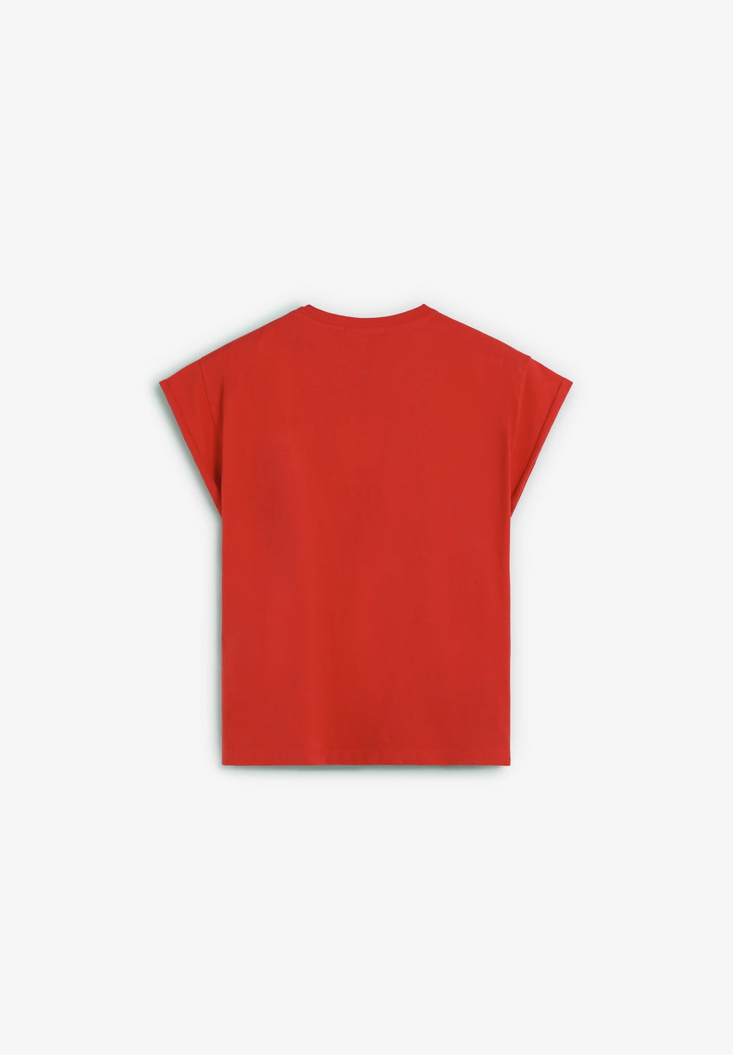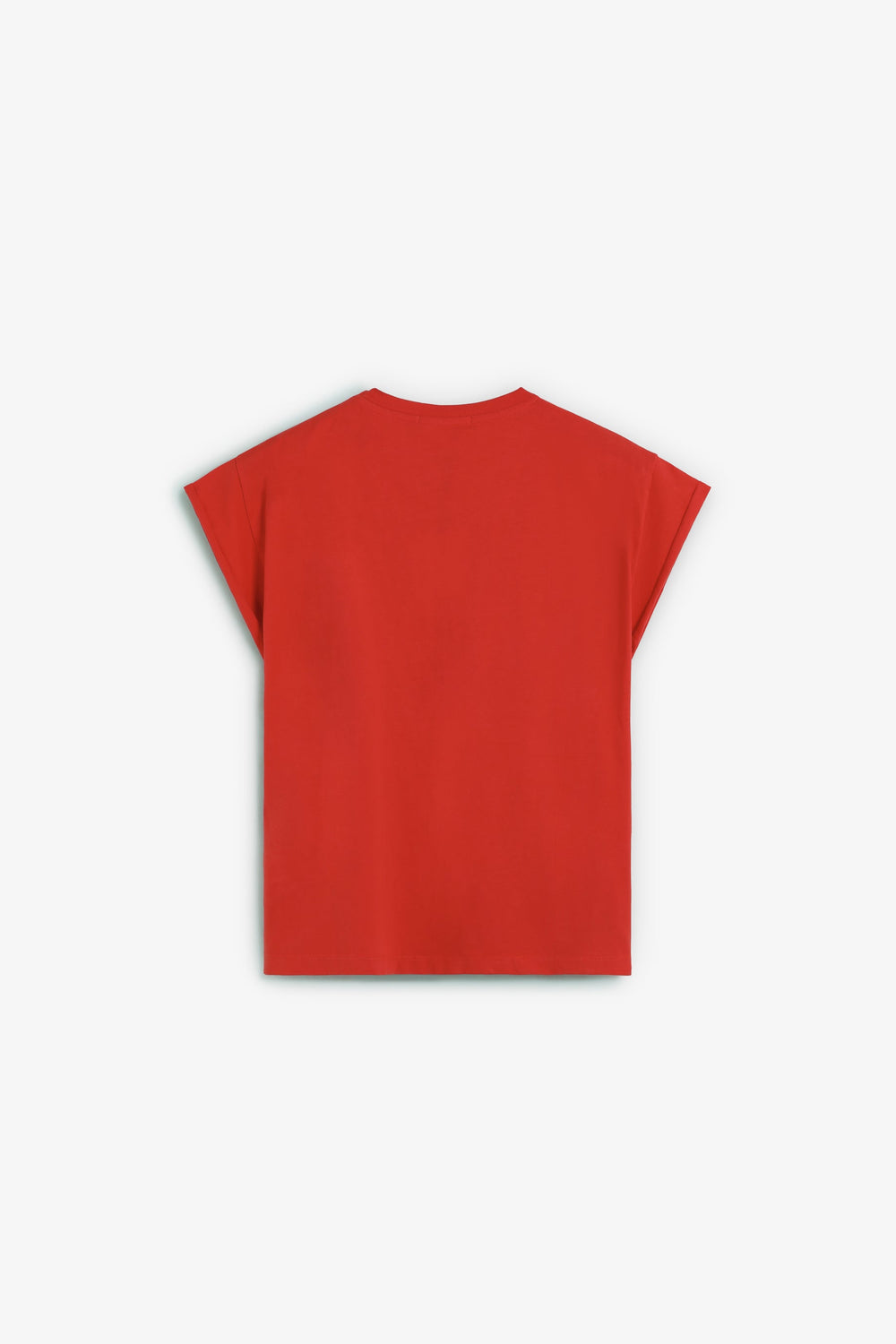 Camiseta confeccionada en 100% algodón orgánico. Corte regular fit, cuello redondo y manga sisa. Detalle de logo bordado a tono en pecho.